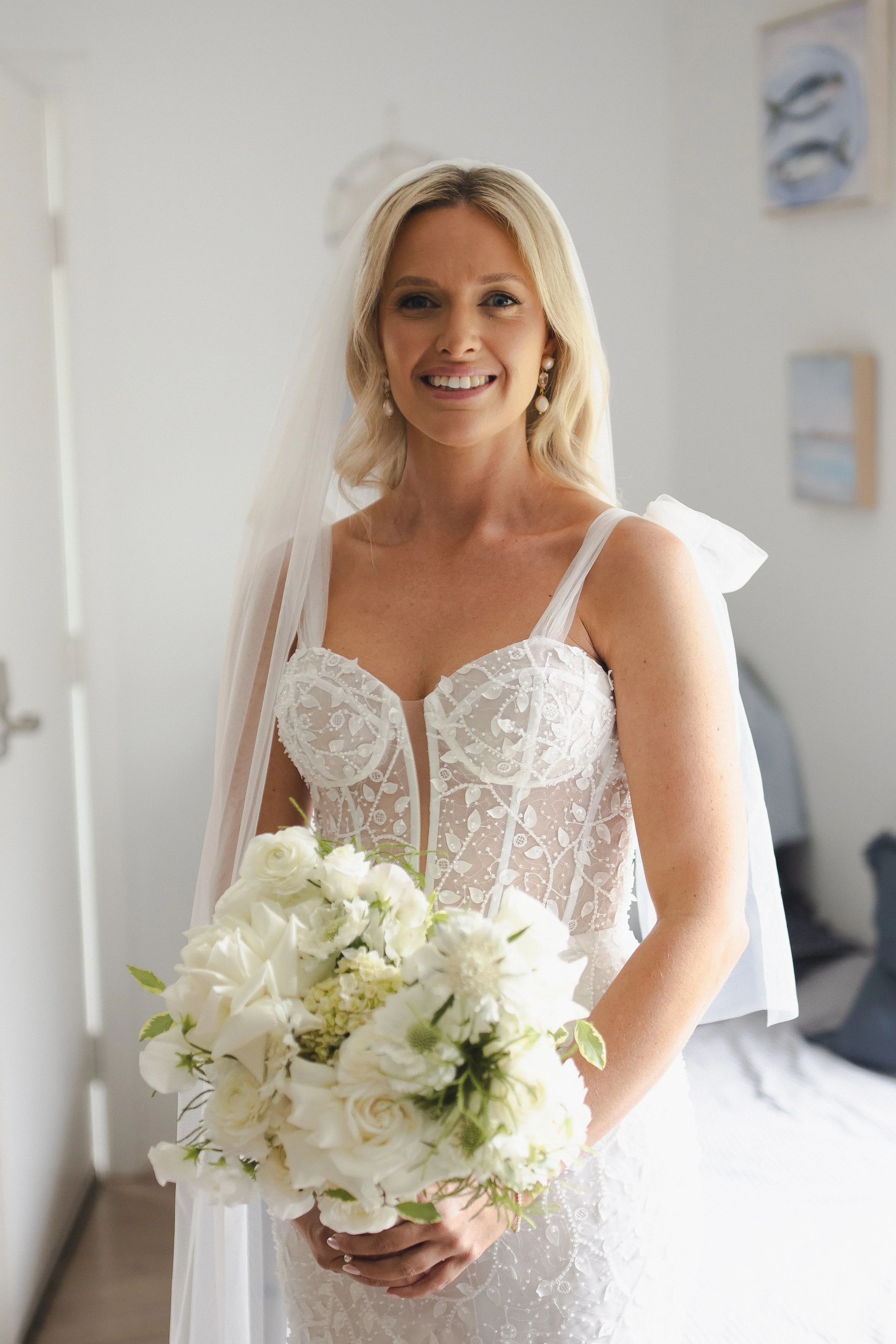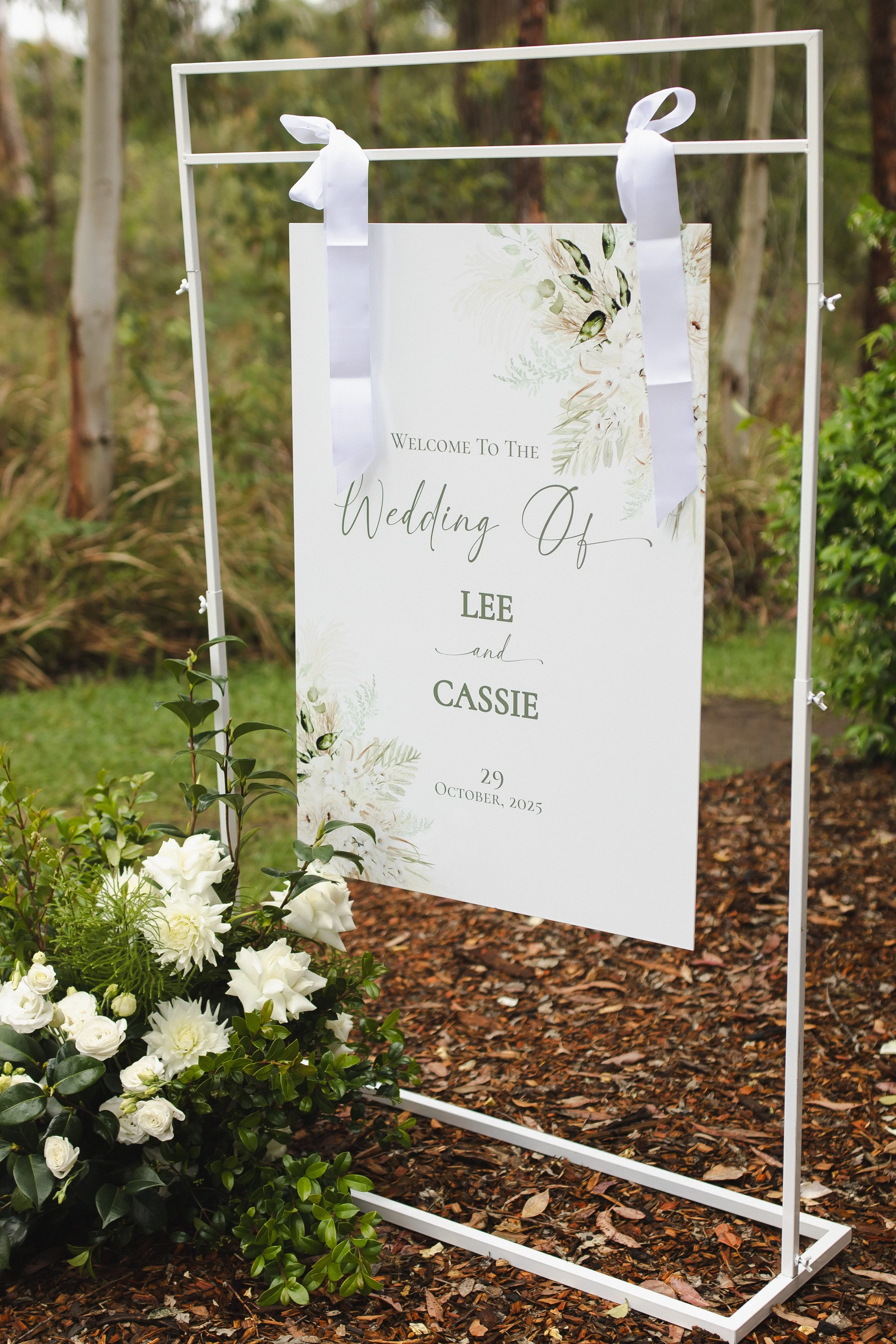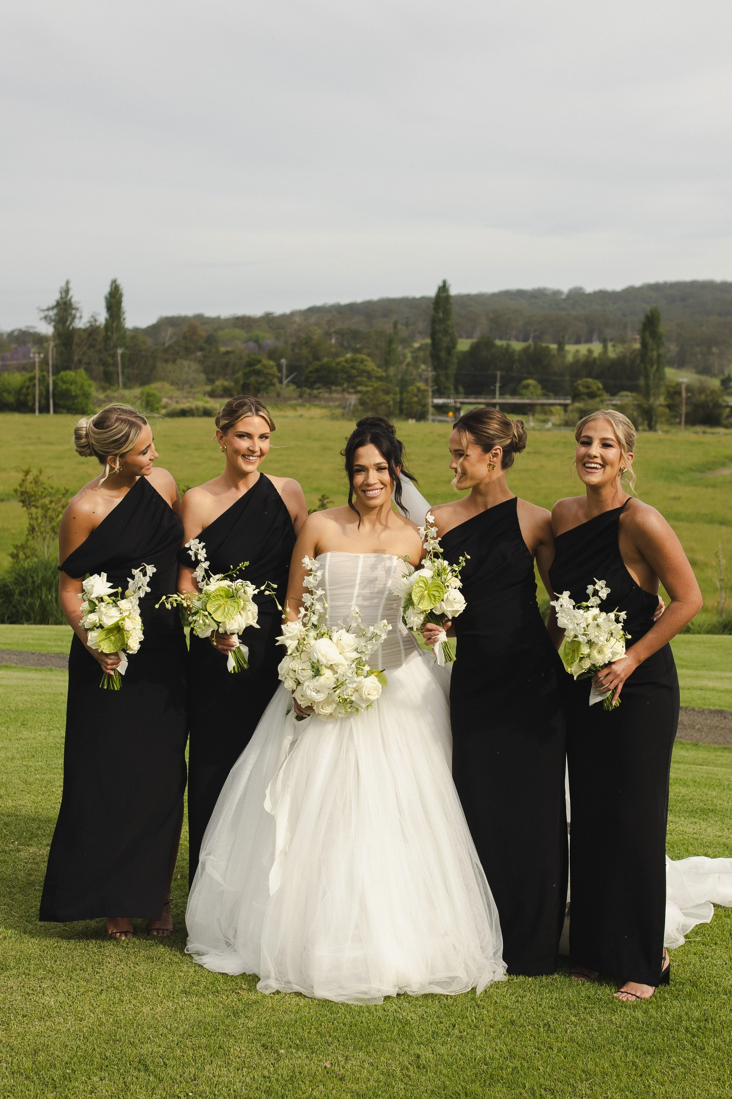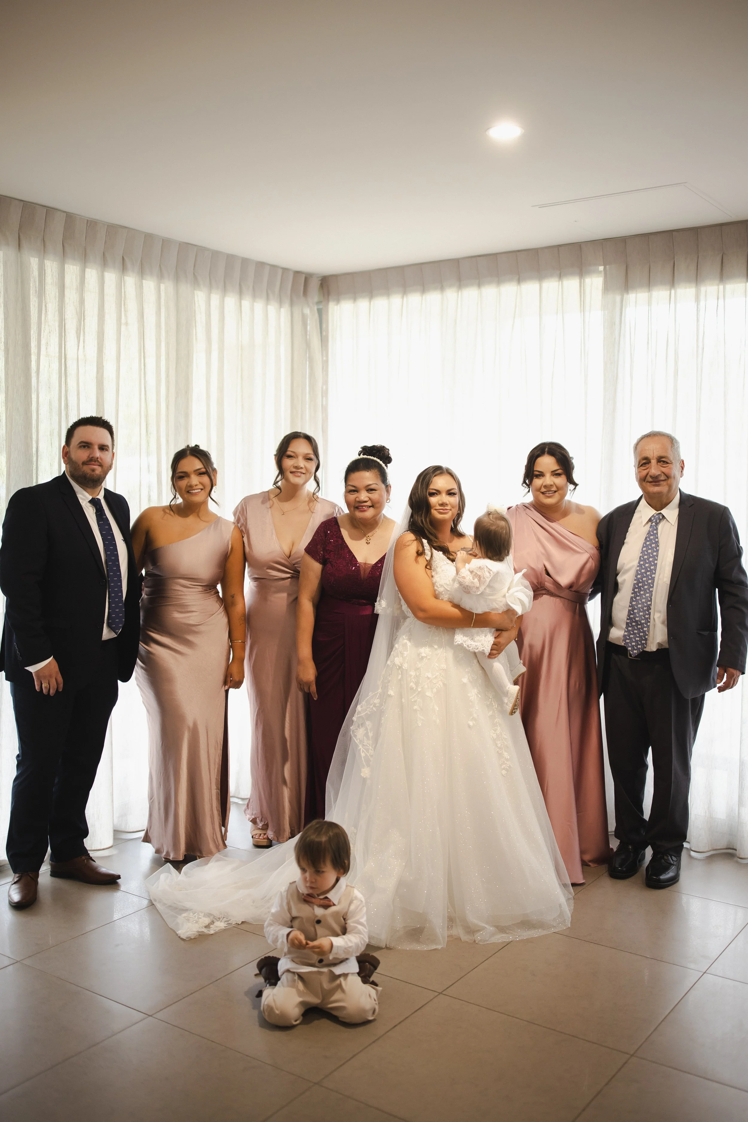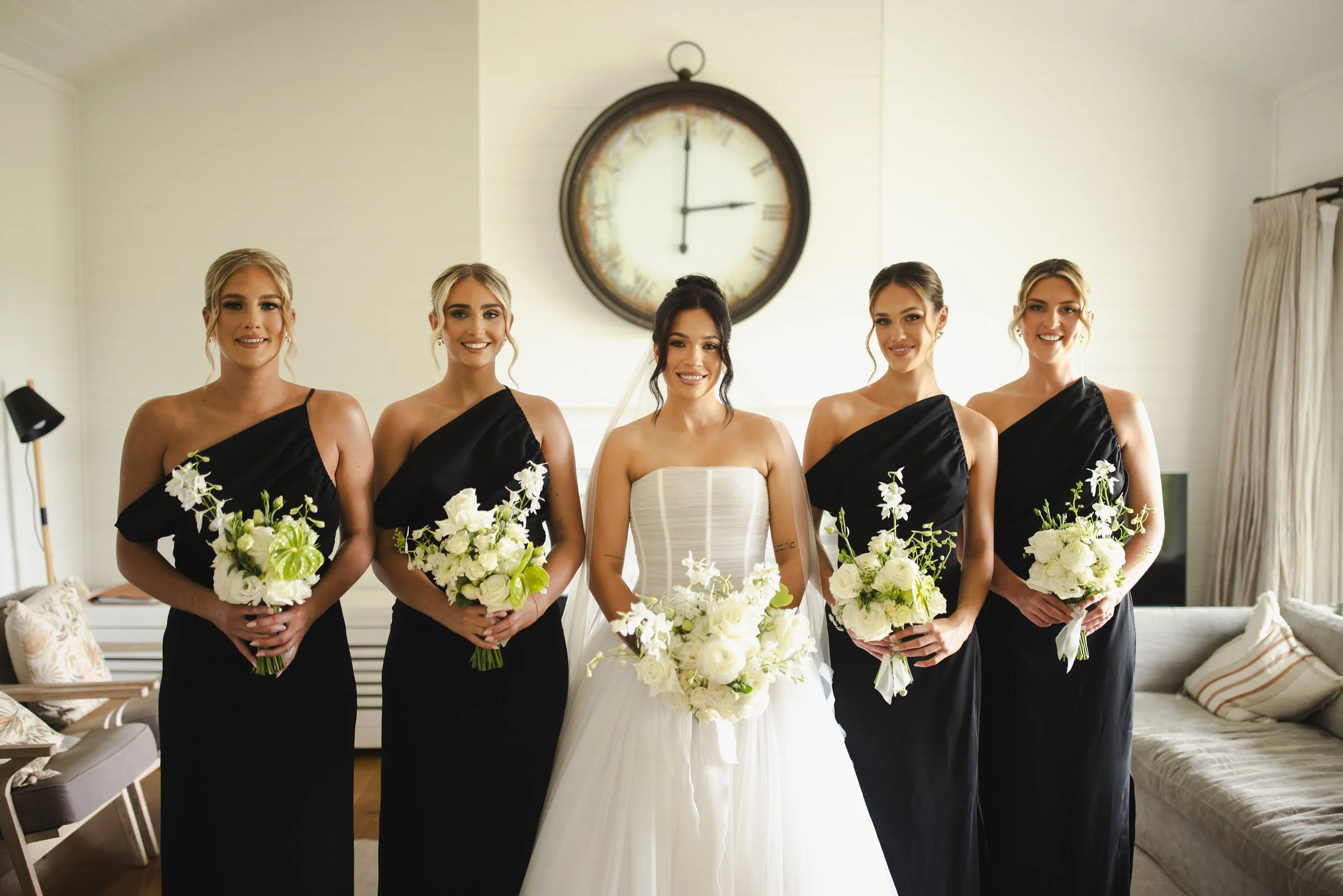 Their ceremony took place in the breathtaking Bush Chapel, a rustic, storybook space draped in ivy, glittering chandeliers hanging from above, and floor-to-ceiling mirrors that reflected the magic back at every angle. Despite the rain, or perhaps because of it, the chapel felt even more romantic. The showers meant that photos were taken inside the chapel, creating beautifully intimate portraits surrounded by lush bushland just outside.