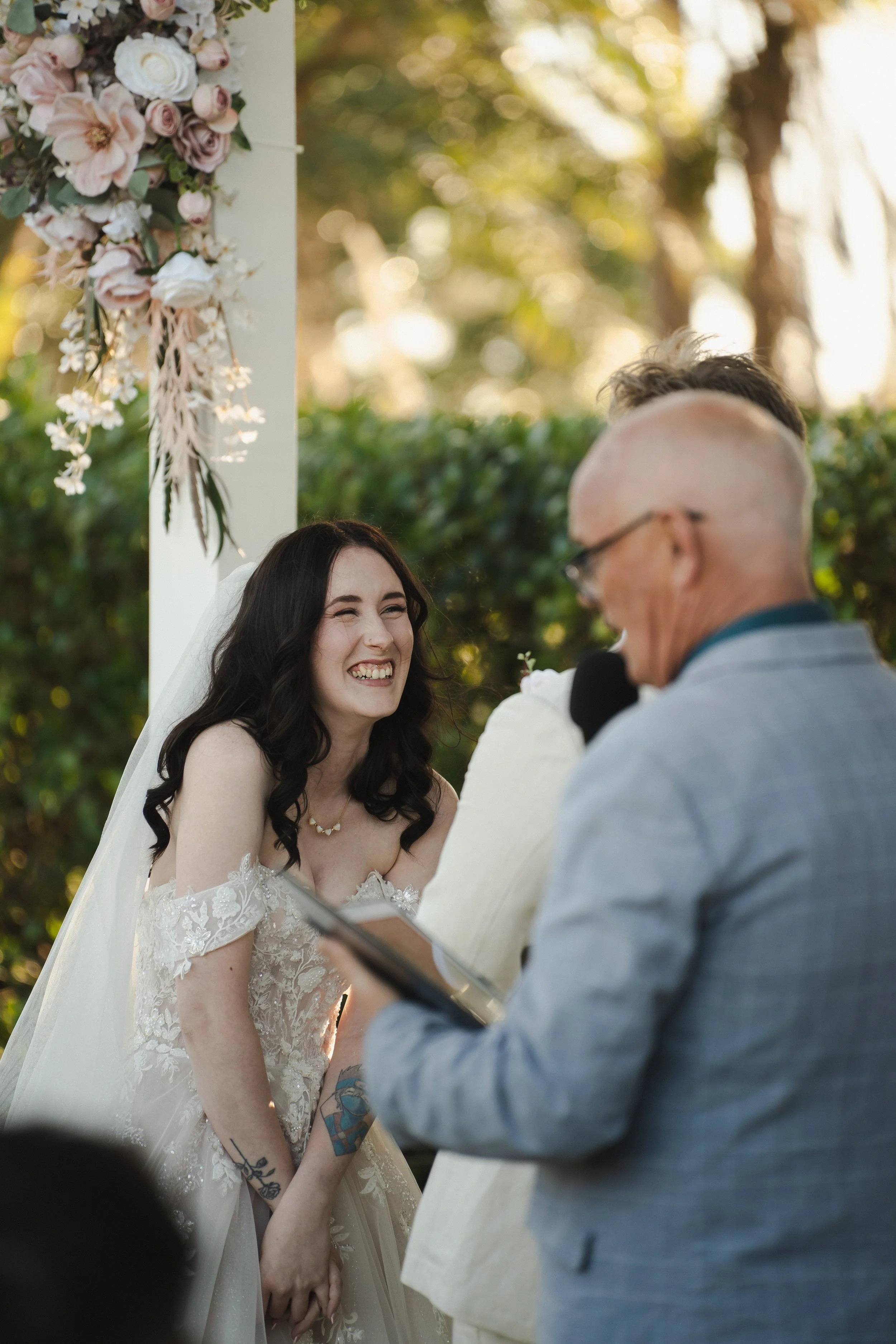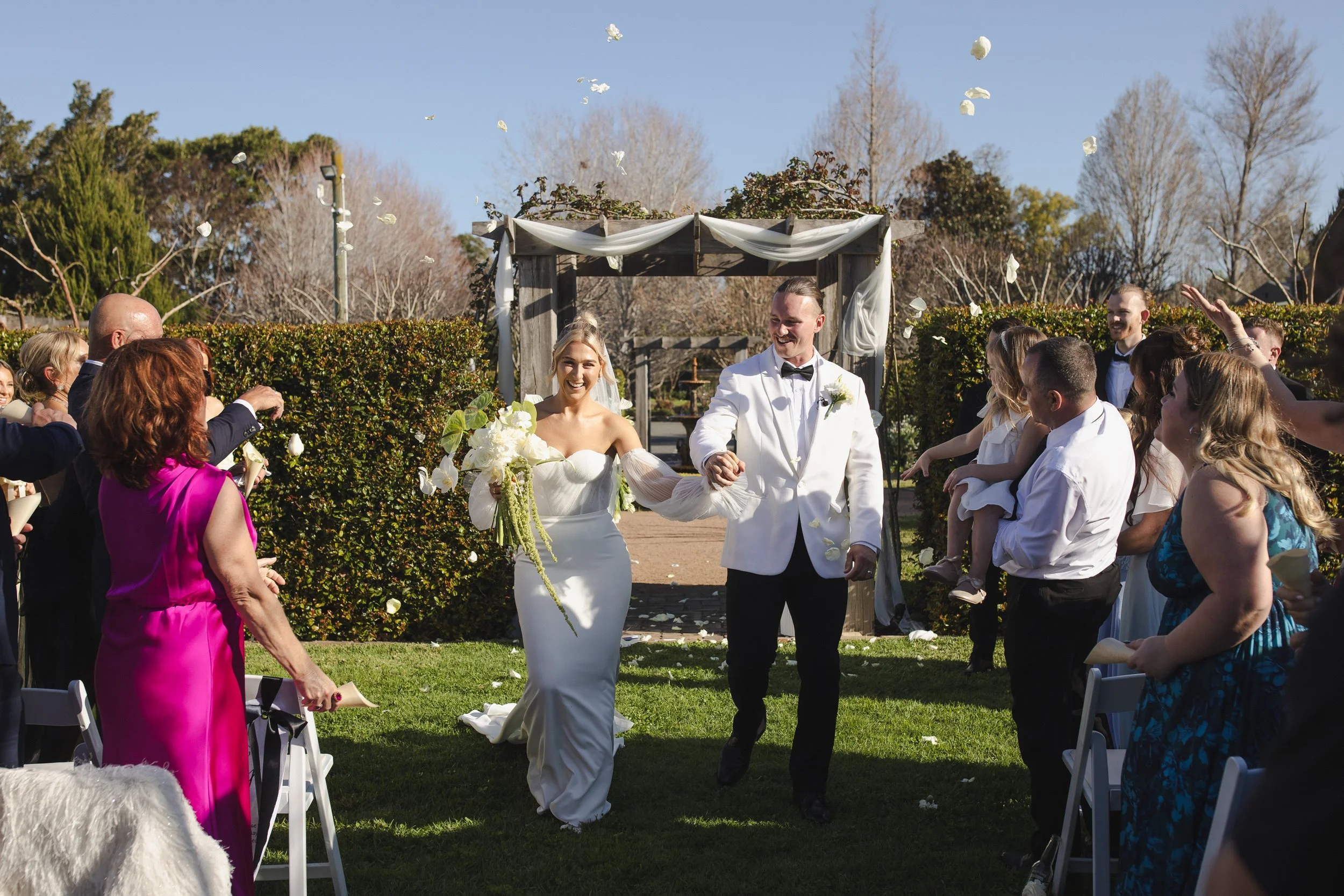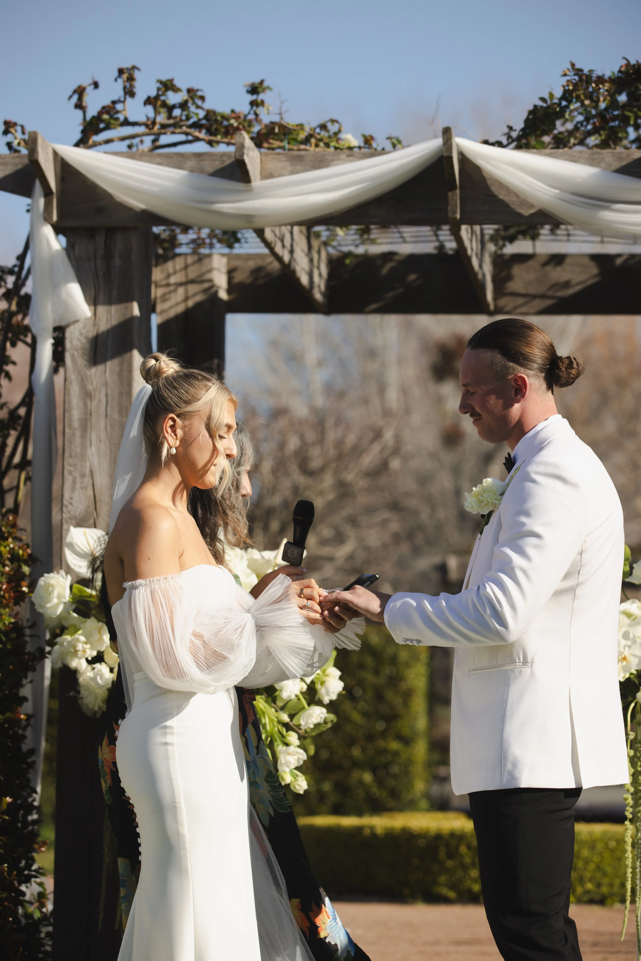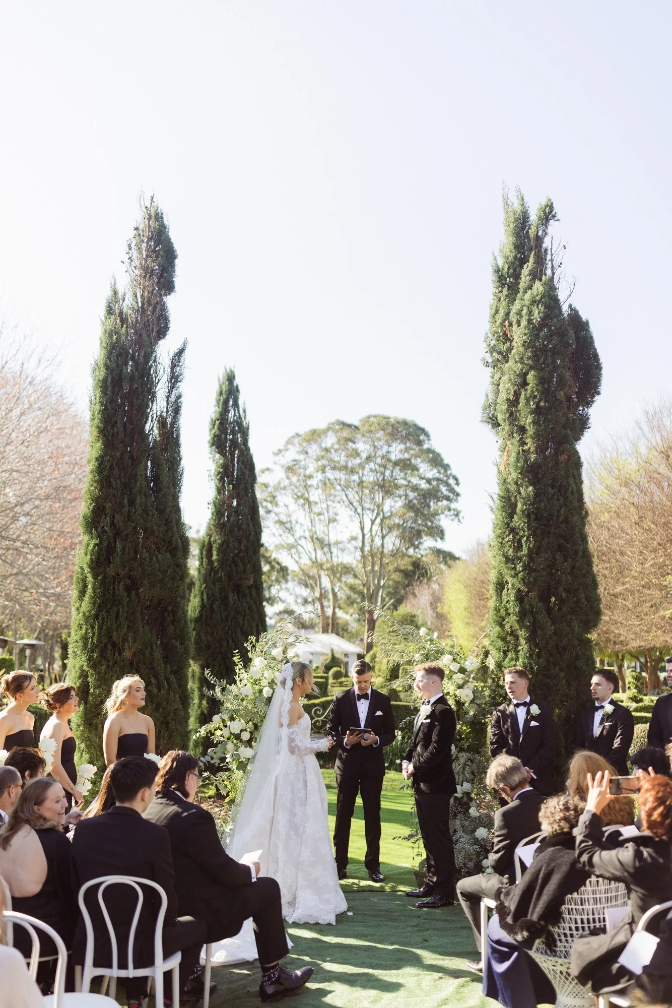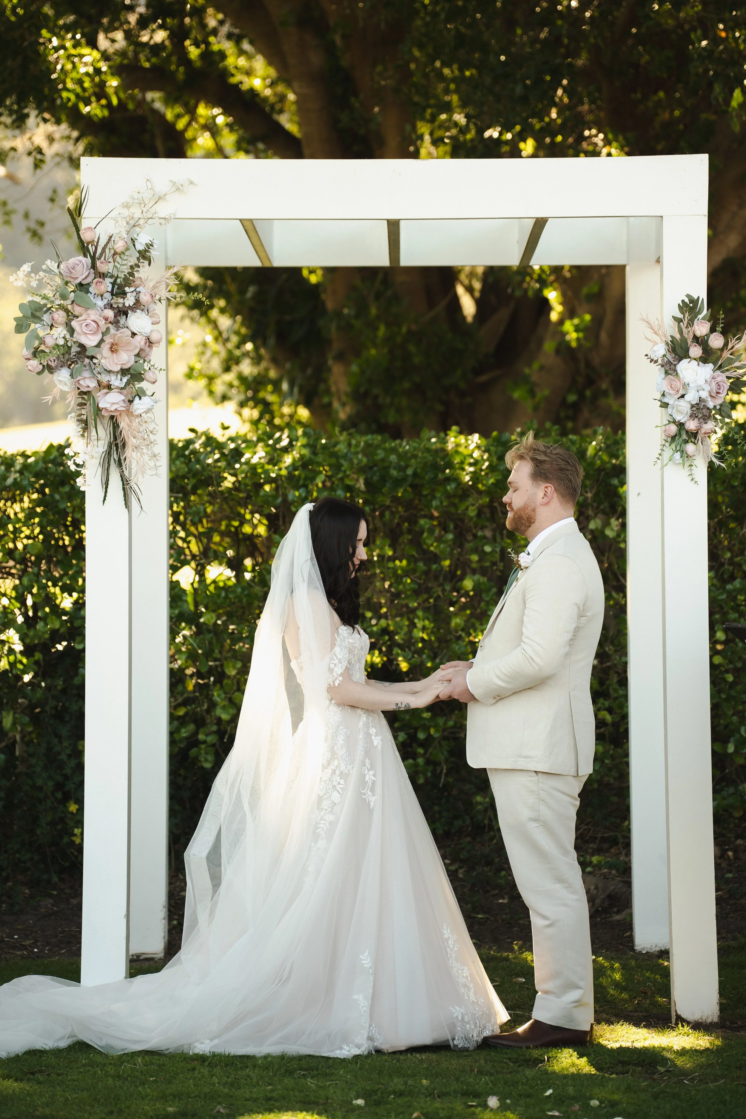 Their garden ceremony was a true reflection of the couple, intimate, heartfelt and full of joy. Beneath a floral covered arbour, Lachlan and Ebony exchanged personal vows, with love radiating from every corner of the lush green space.