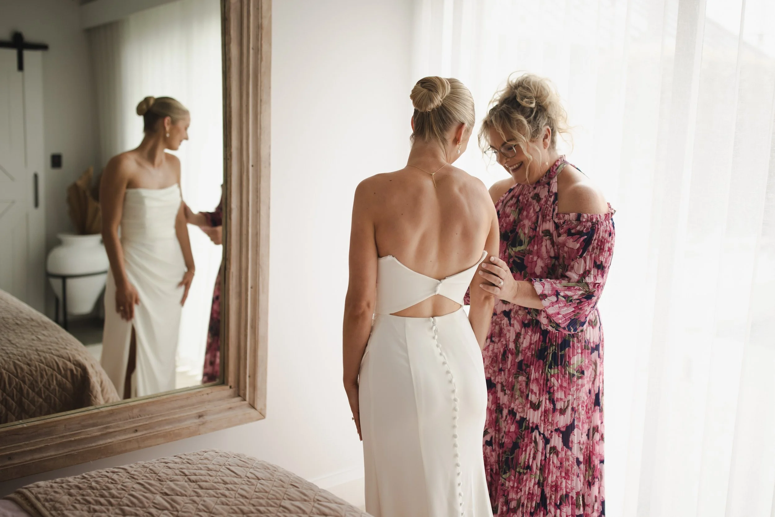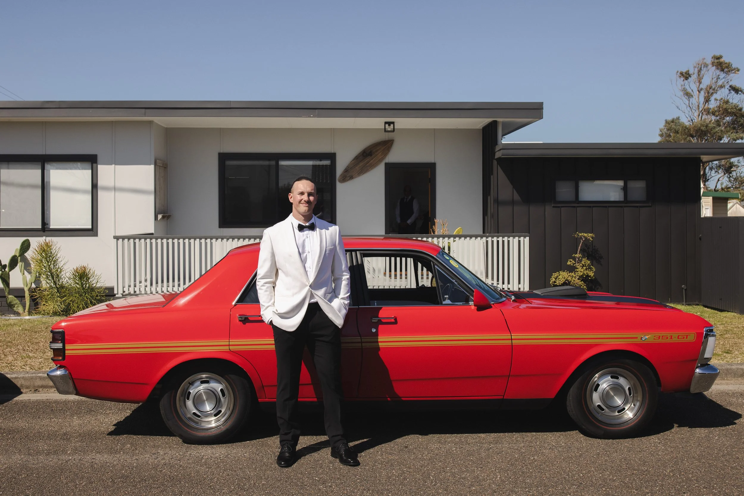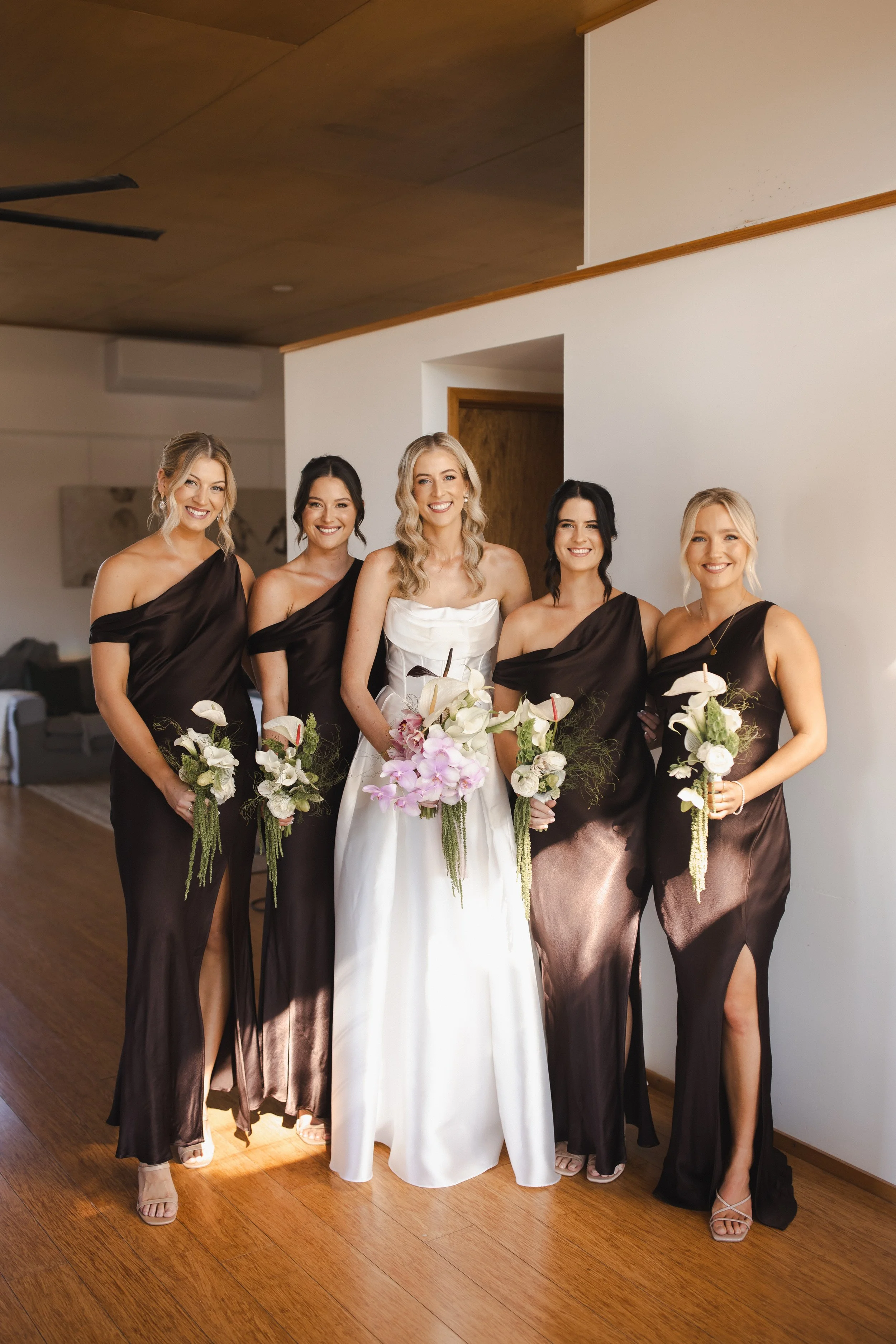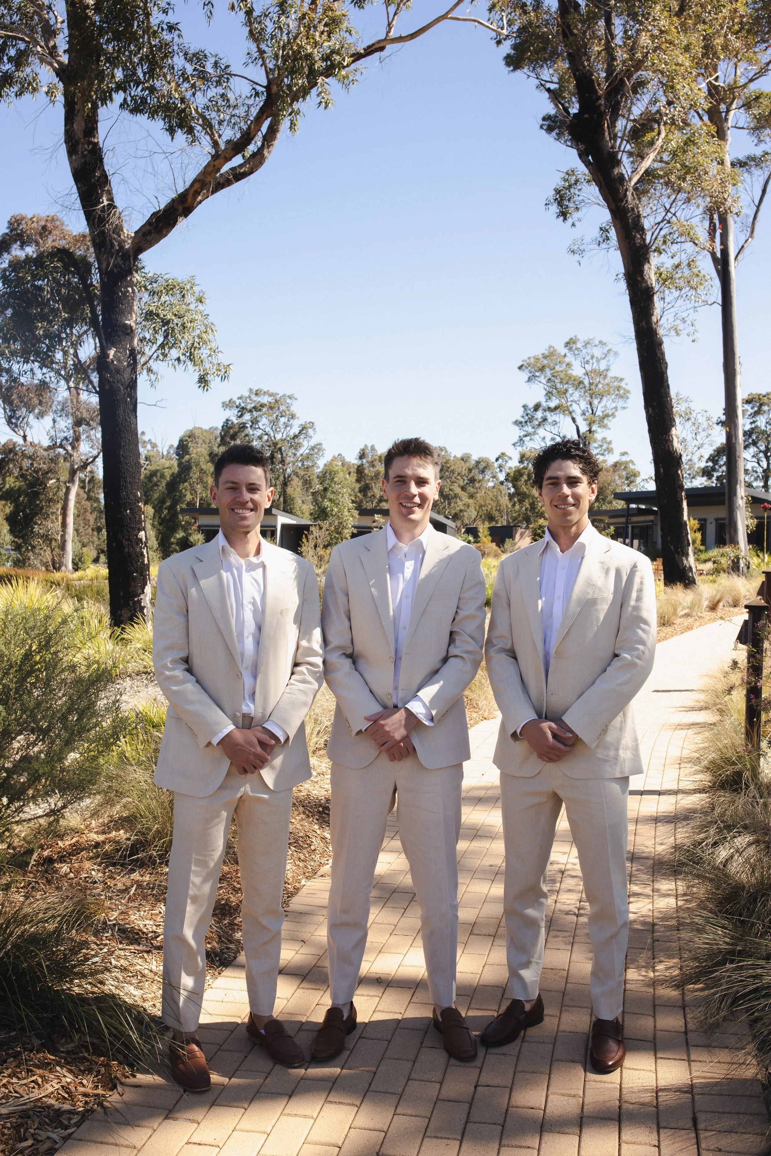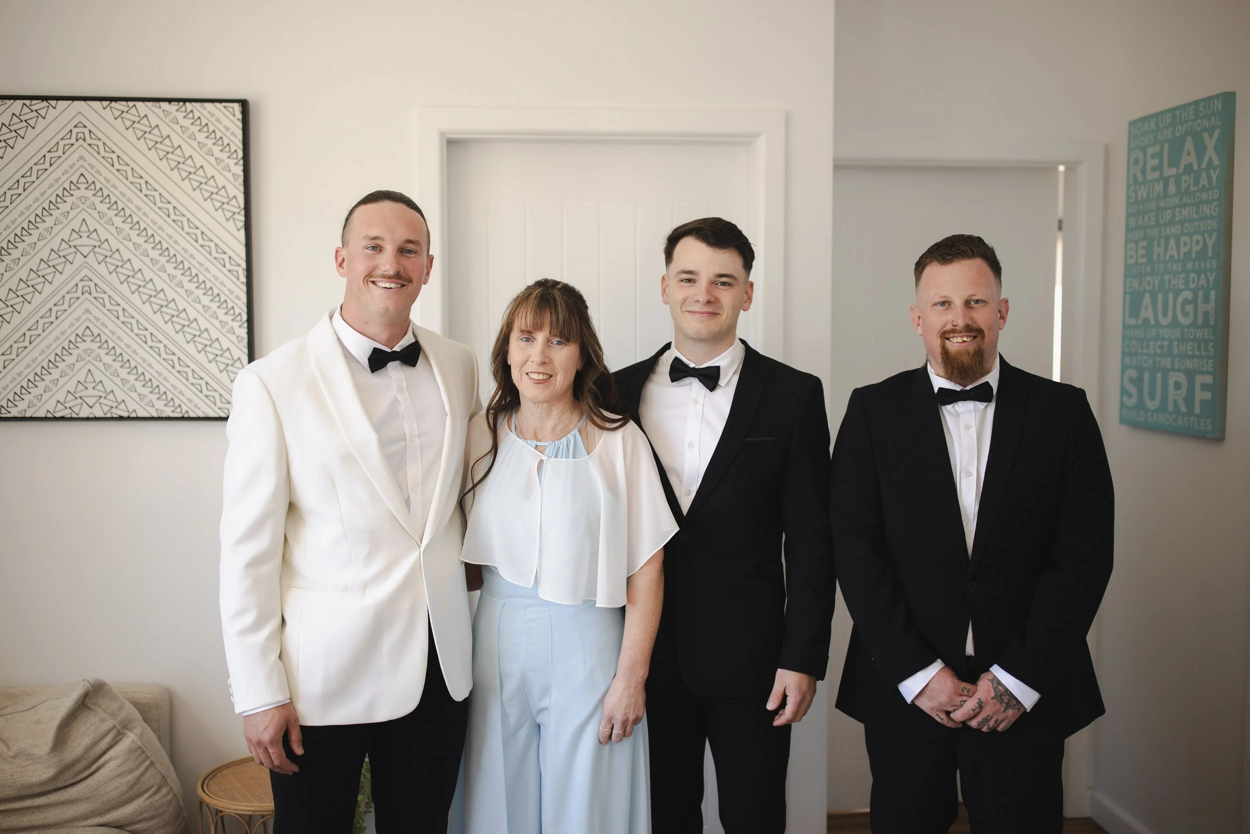 The morning began with the boys getting ready in Culburra, sharing a relaxed start to the day before heading to the venue. Meanwhile, in the bridal suite, Phoebe shared a quiet first look with her bridesmaids — a joyful, emotional moment that set the tone for what was to come. A few minutes later, she had another with her dad. It was one of those still, meaningful pauses that said more than words could.