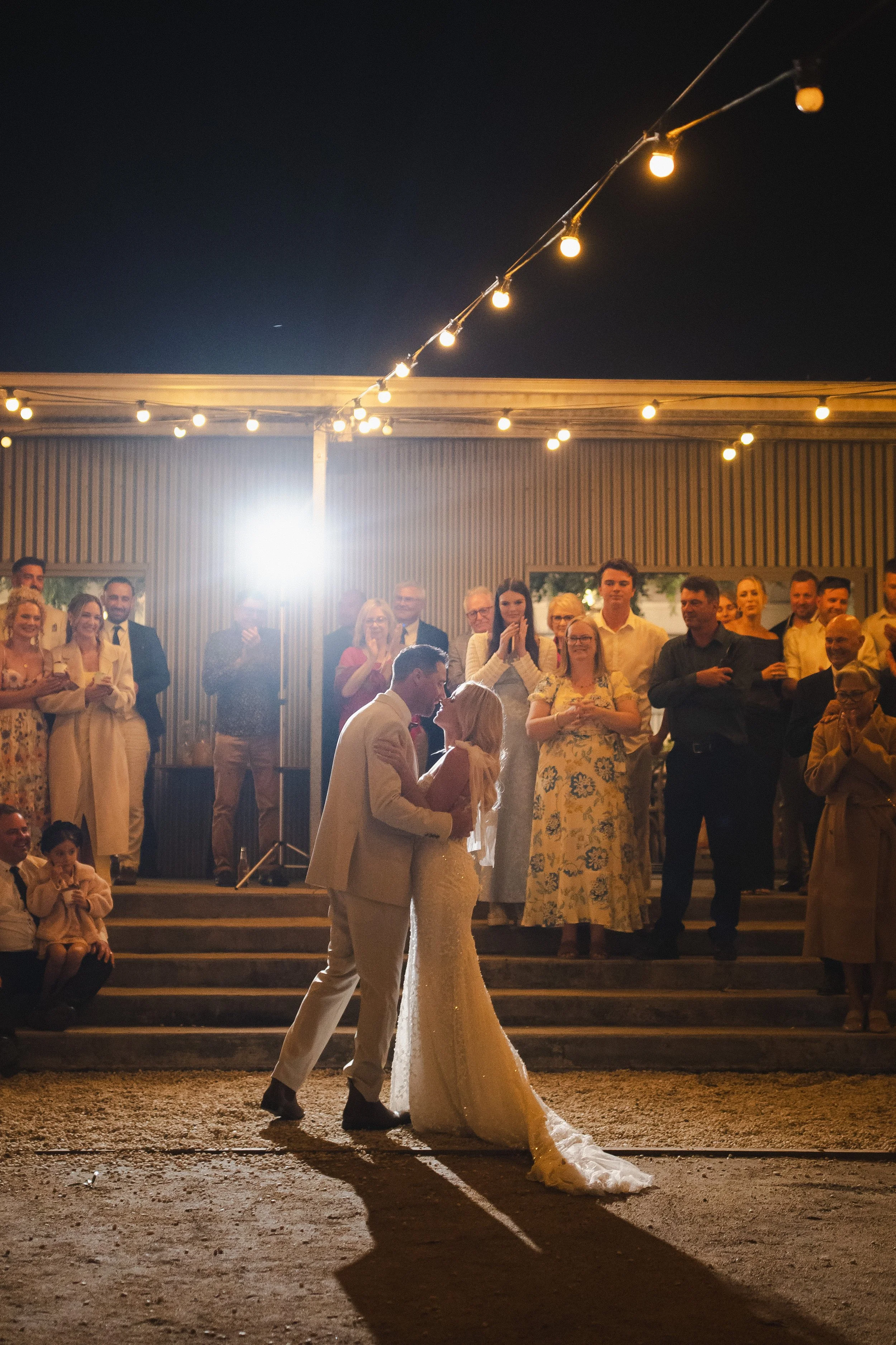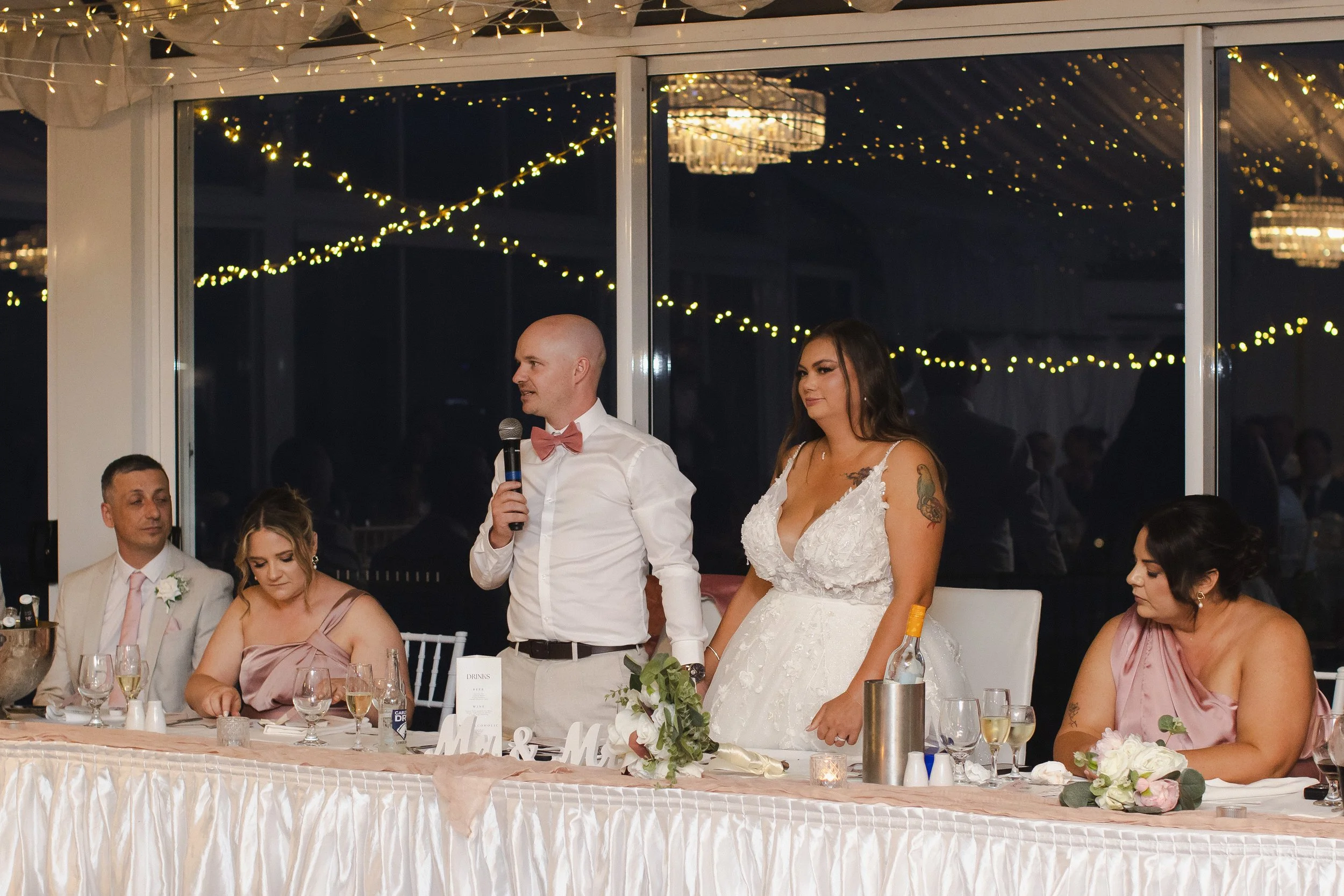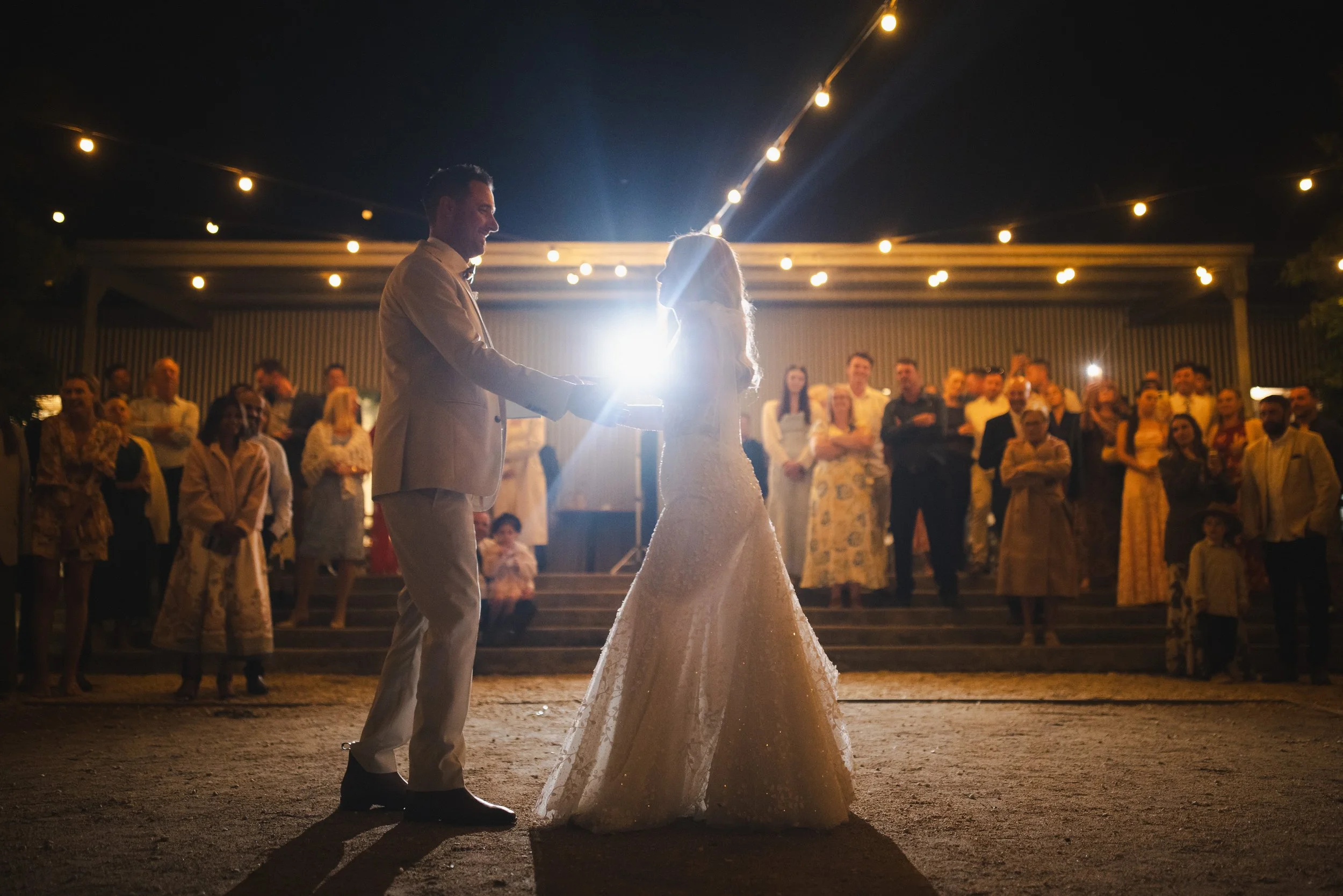 As evening fell, guests gathered for a warm and joyful sit-down reception. The night flowed with music, delicious food, clinking glasses, heartfelt speeches, sweet slices of cake, and a dance floor that never seemed to rest. Laughter echoed, shoes were kicked off, and memories were made well into the night.