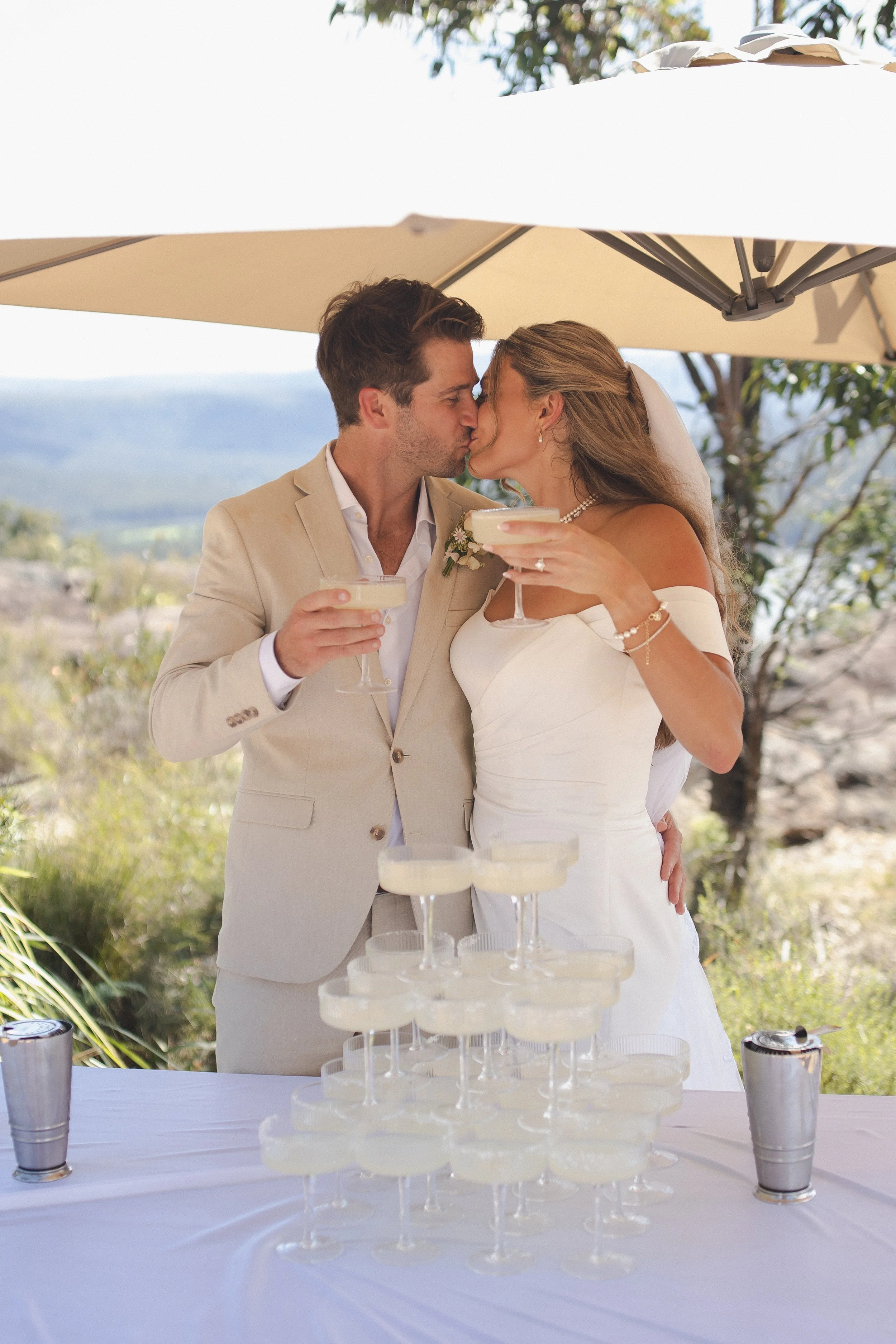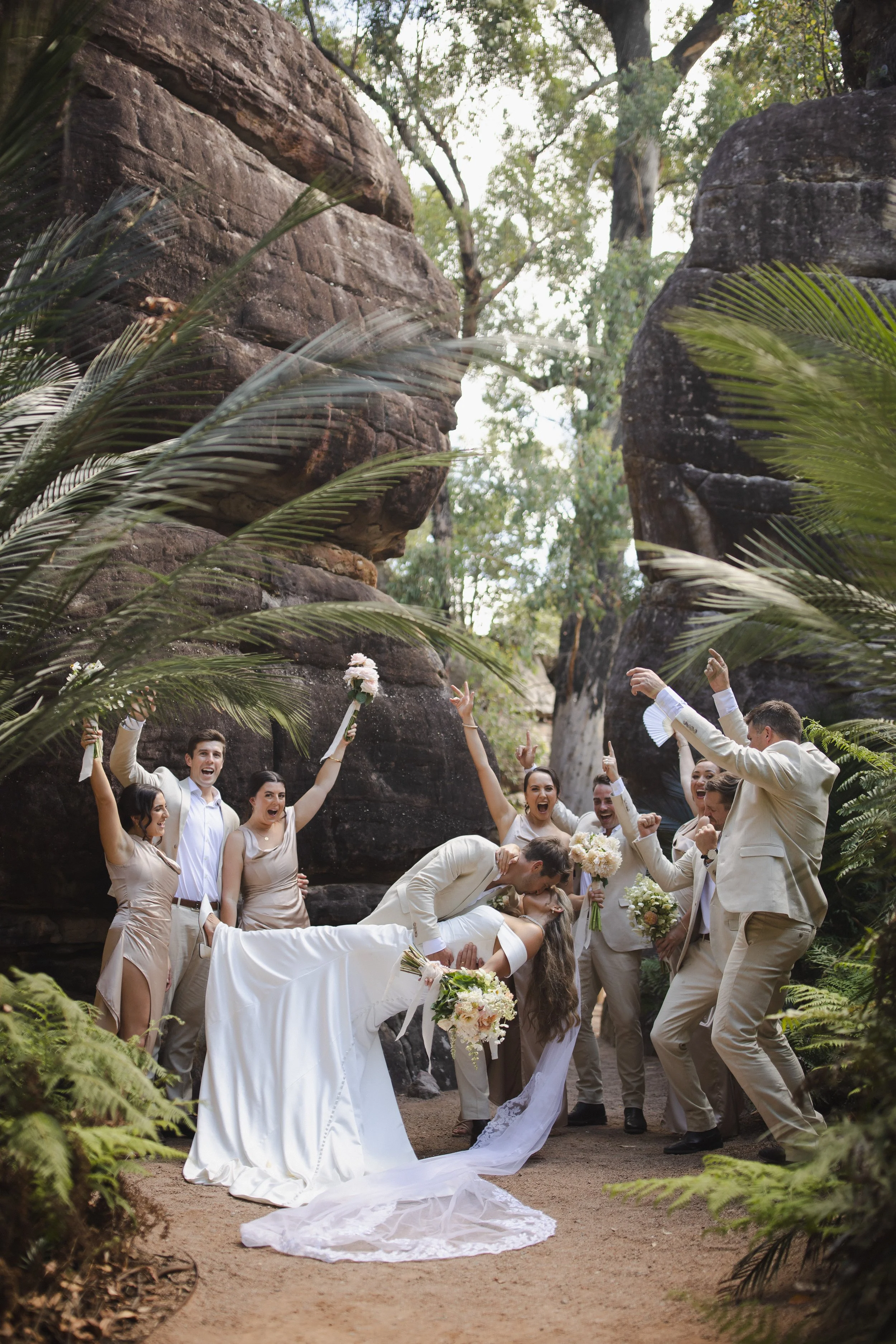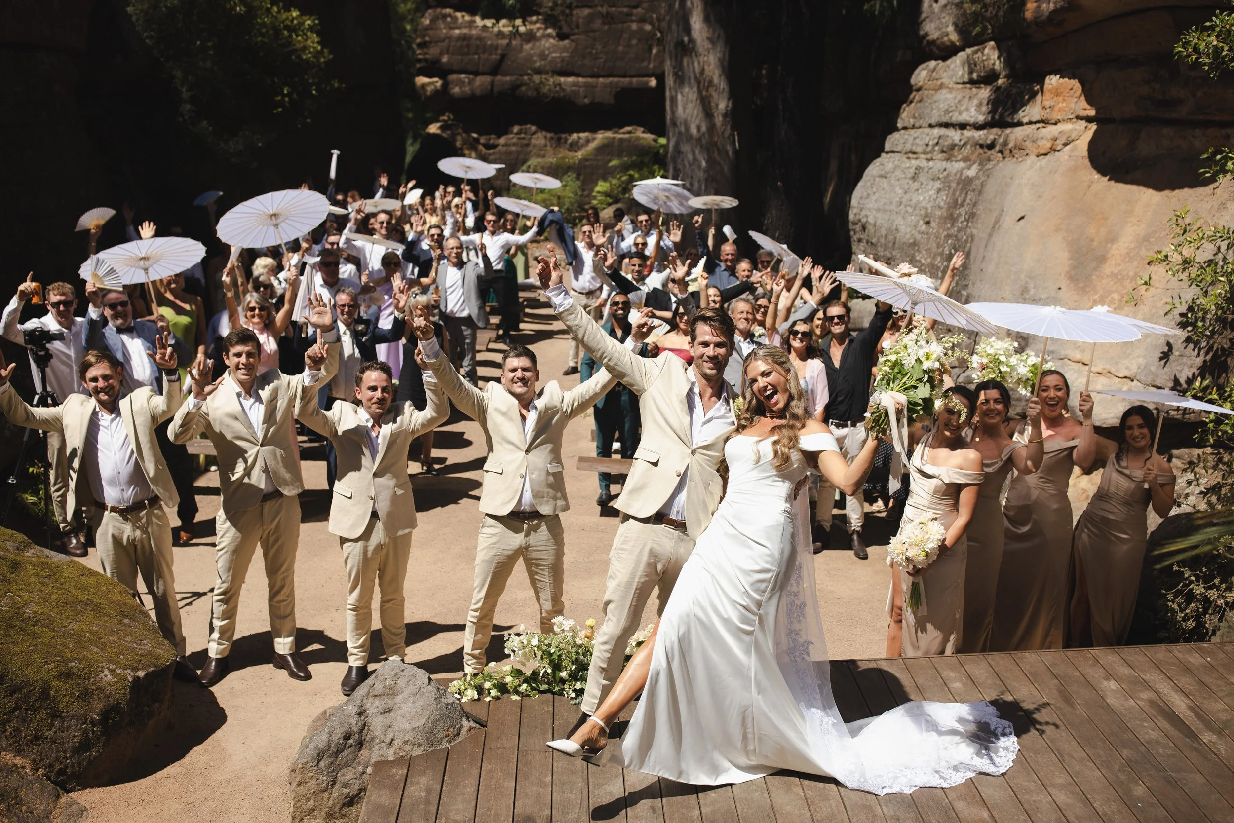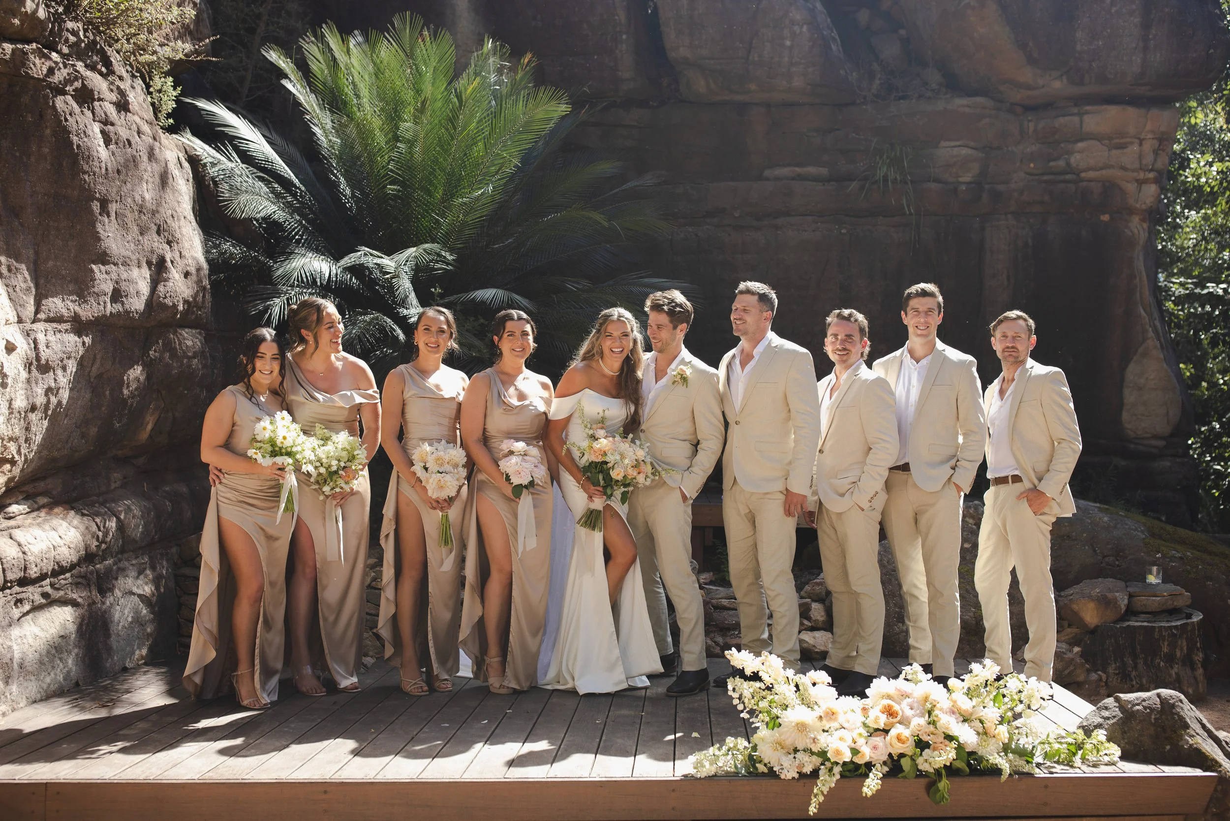 Matt and Alyssa’s wedding on the 2nd of March was nothing short of magical, set against the stunning coastal backdrop of The Cove in Jervis Bay. The day began with a sense of excitement as both the bride and groom prepared in separate cabins, each surrounded by their large and lively bridal party. Laughter, music, and a few happy tears filled the air as everyone got ready for the big moment.