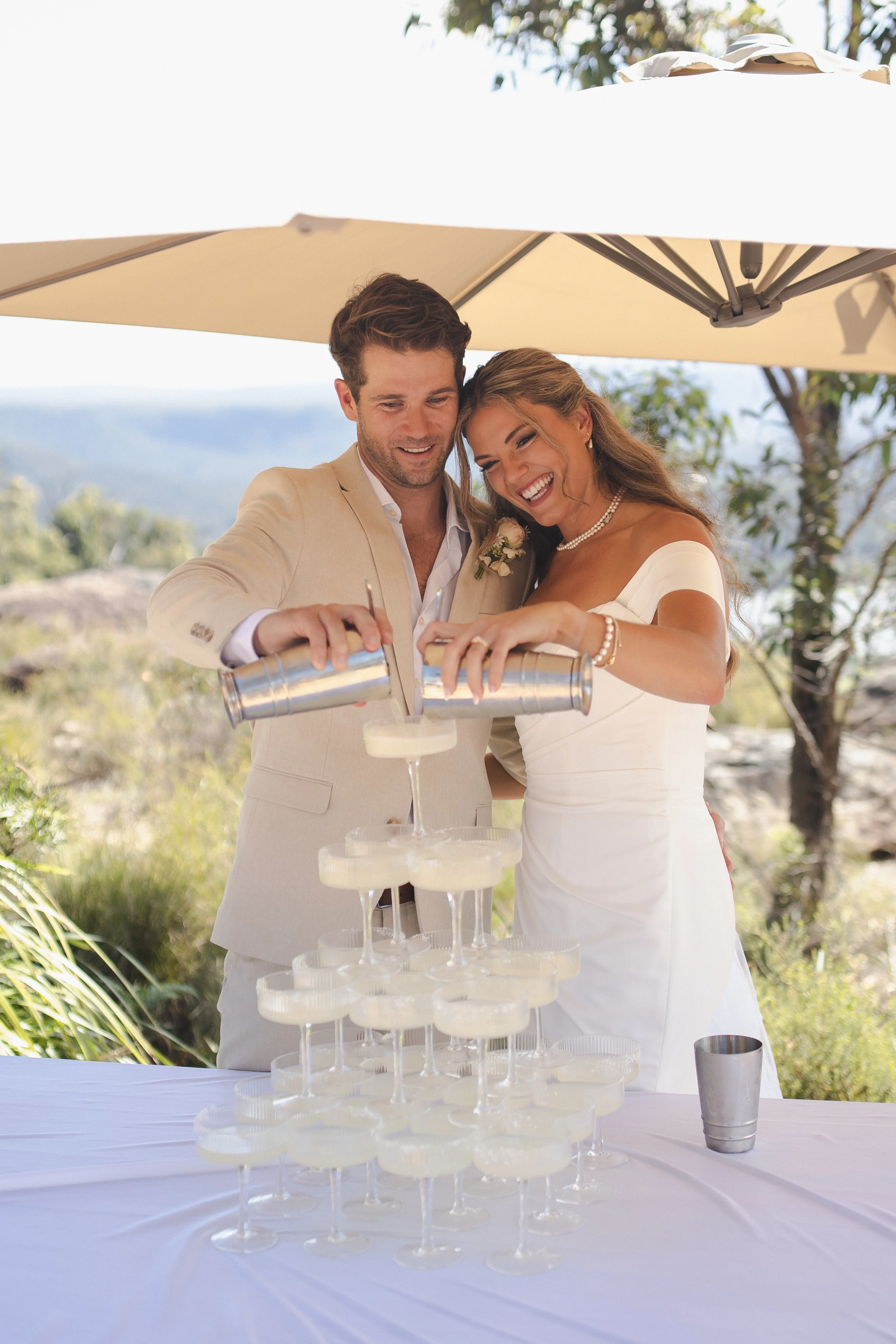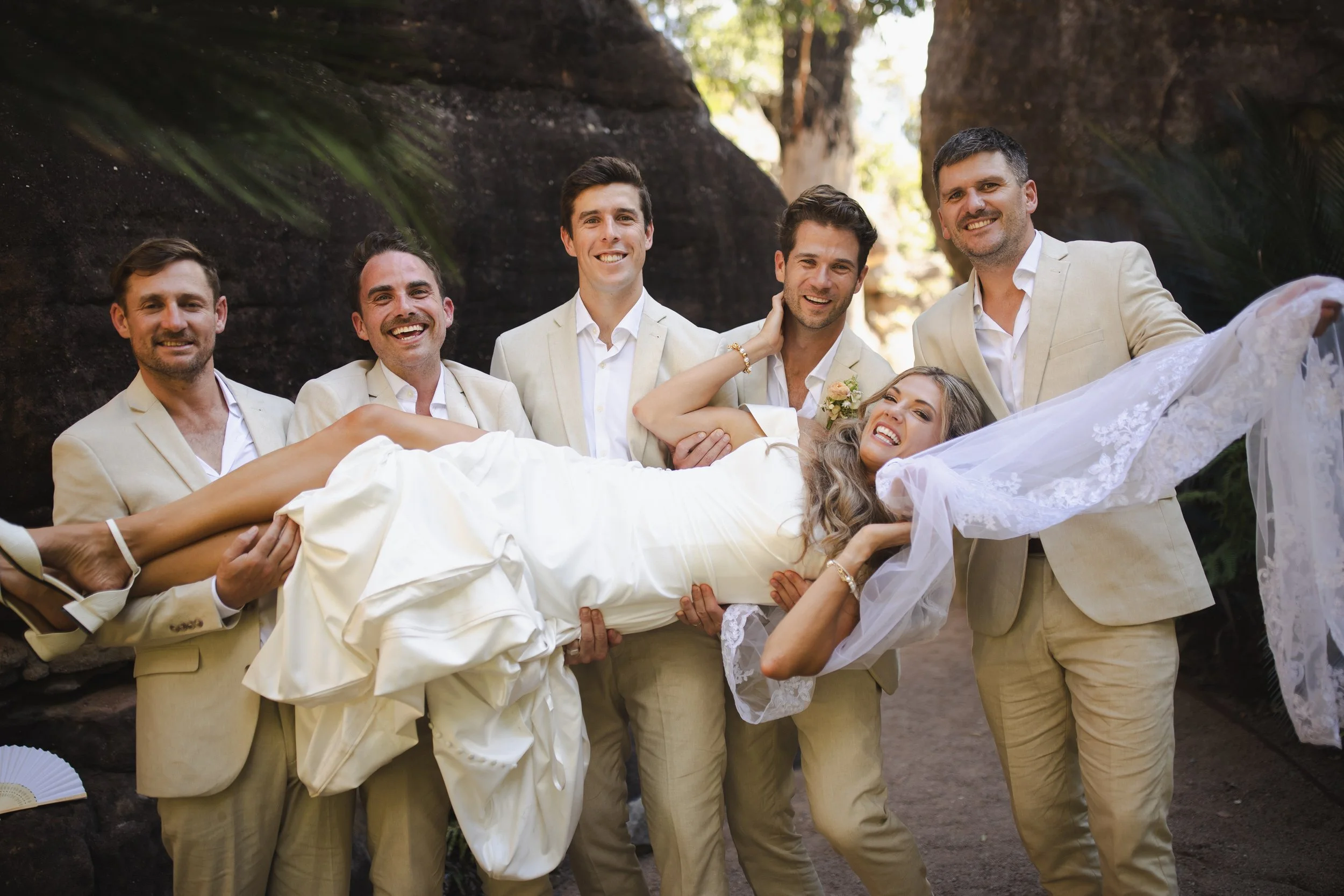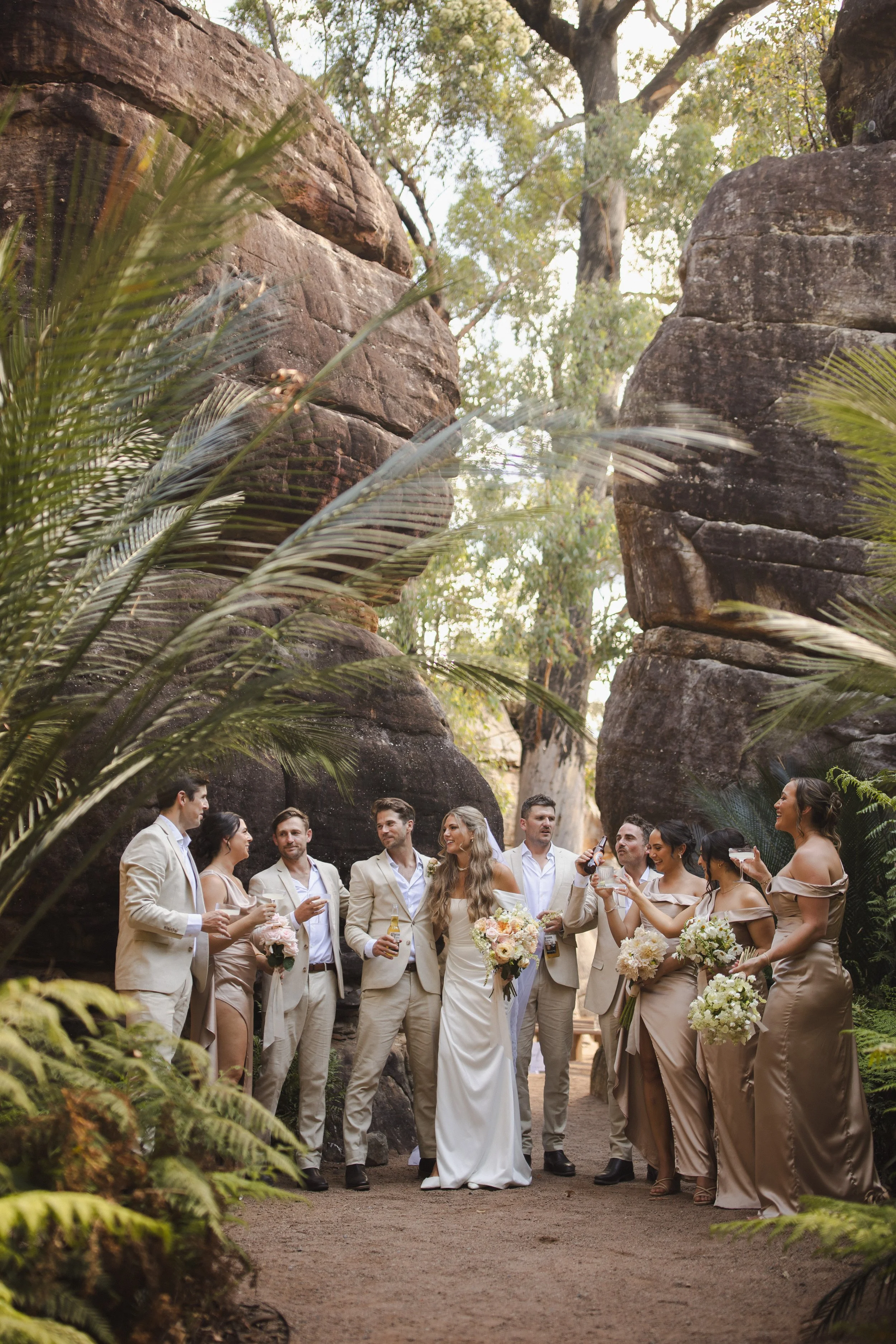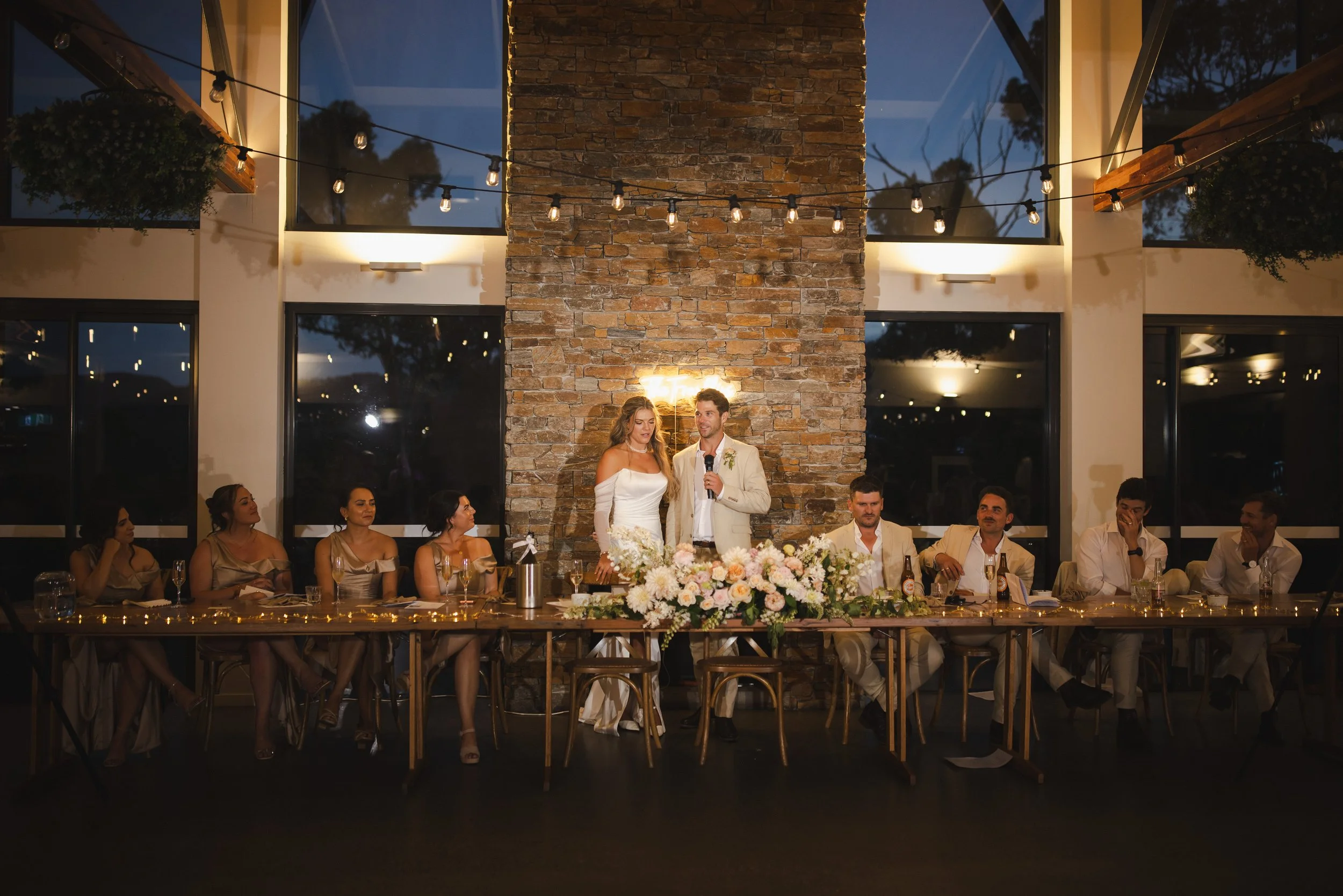 Matt and Alyssa’s wedding on the 2nd of March was nothing short of magical, set against the stunning coastal backdrop of The Cove in Jervis Bay. The day began with a sense of excitement as both the bride and groom prepared in separate cabins, each surrounded by their large and lively bridal party. Laughter, music, and a few happy tears filled the air as everyone got ready for the big moment.