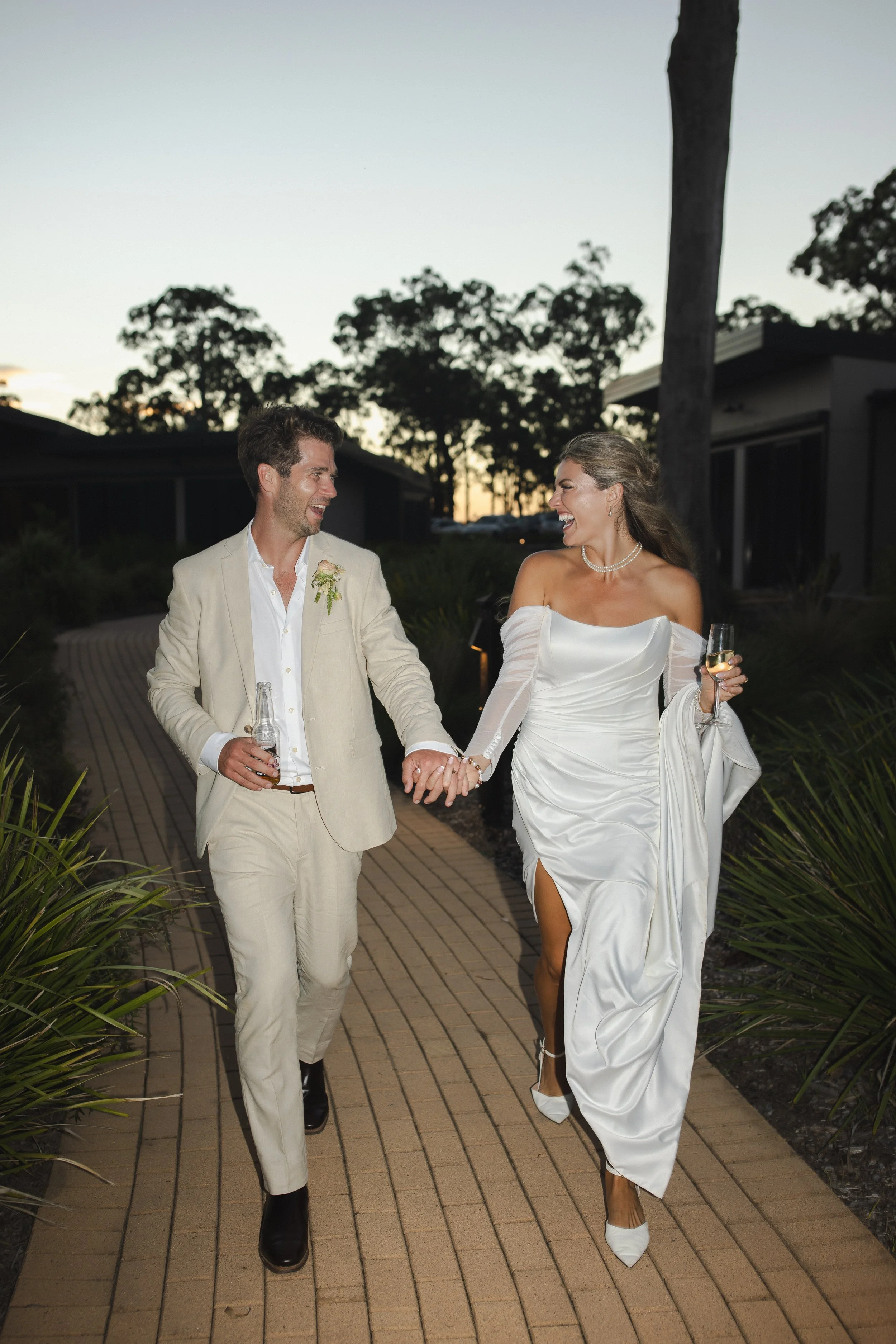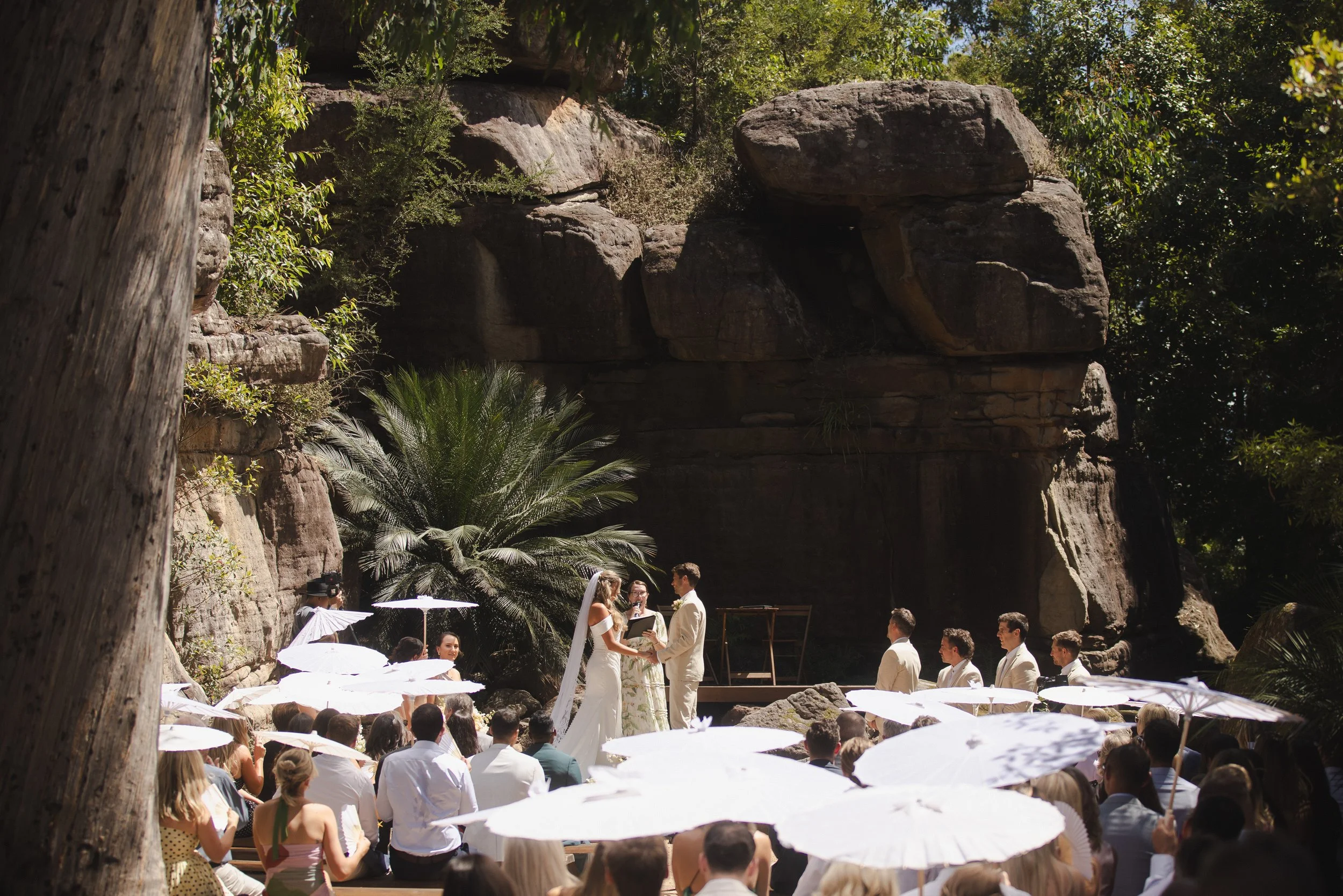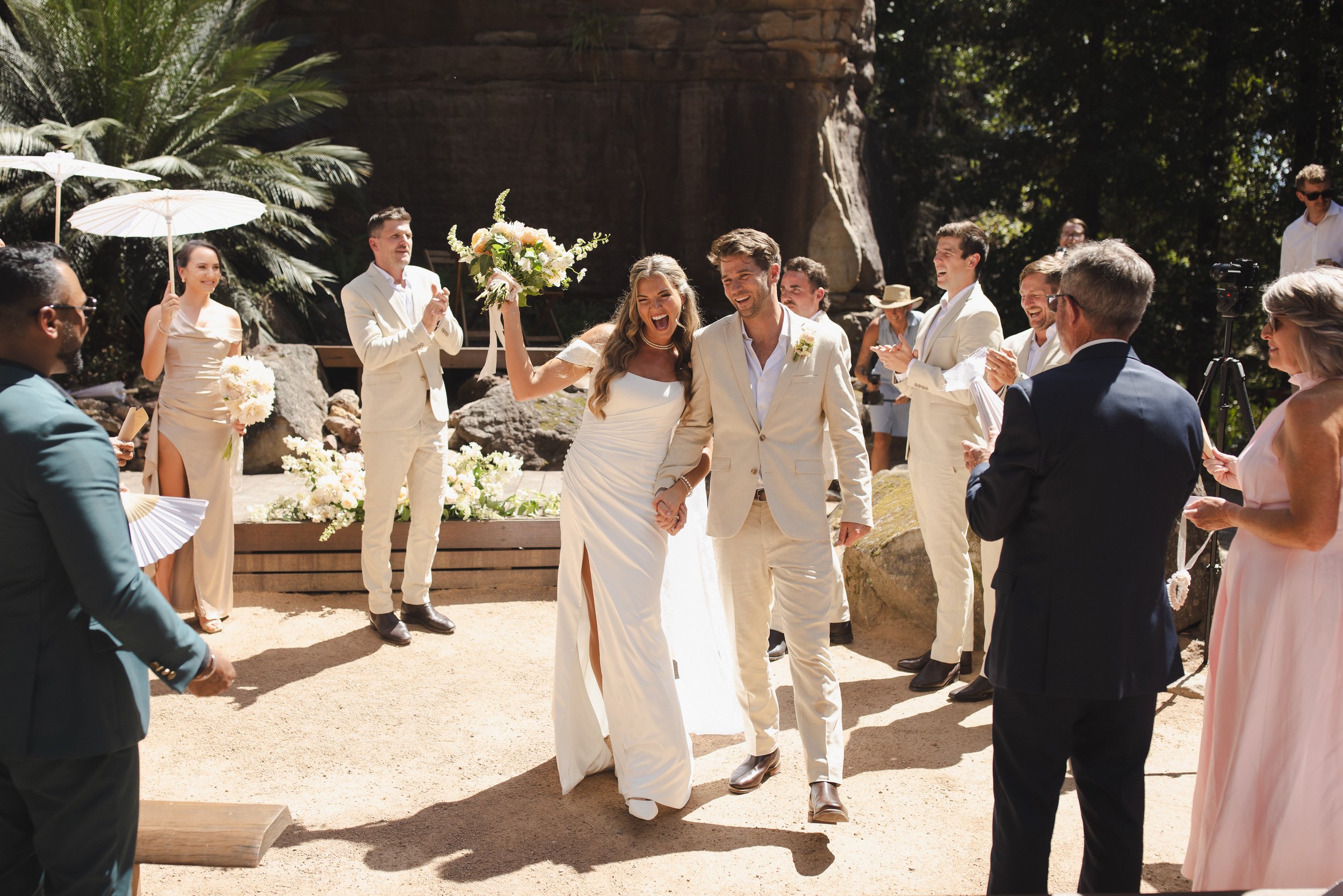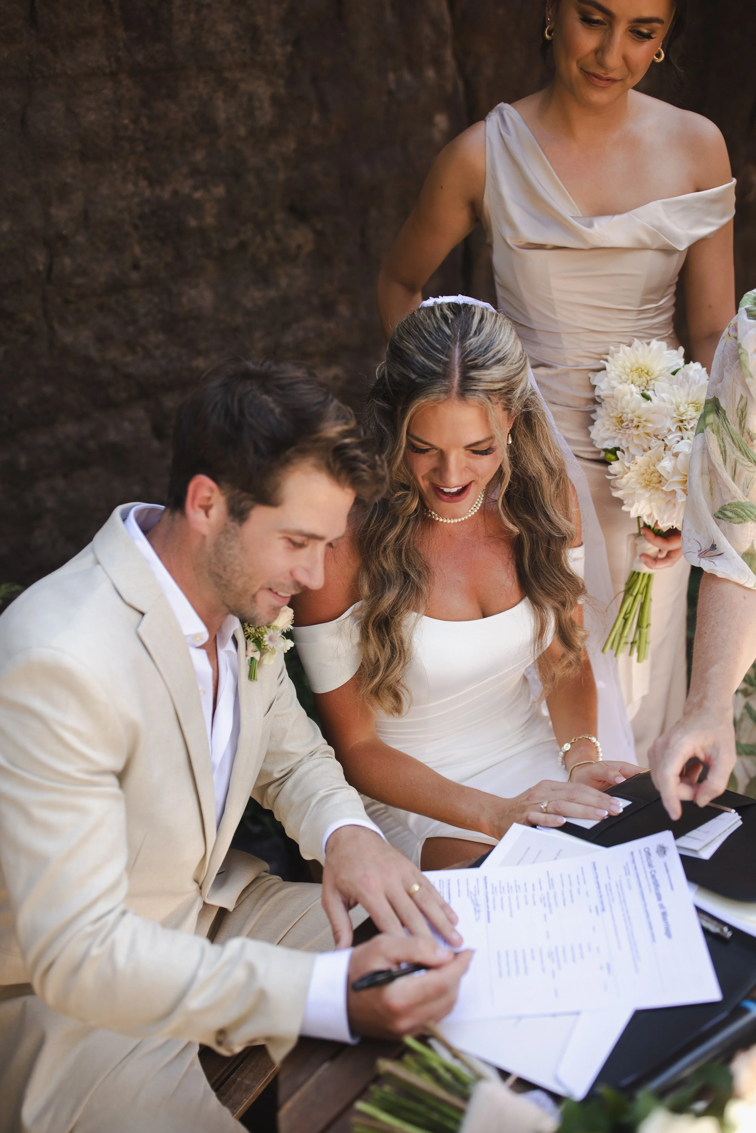 Matt and Alyssa’s wedding on the 2nd of March was nothing short of magical, set against the stunning coastal backdrop of The Cove in Jervis Bay. The day began with a sense of excitement as both the bride and groom prepared in separate cabins, each surrounded by their large and lively bridal party. Laughter, music, and a few happy tears filled the air as everyone got ready for the big moment.