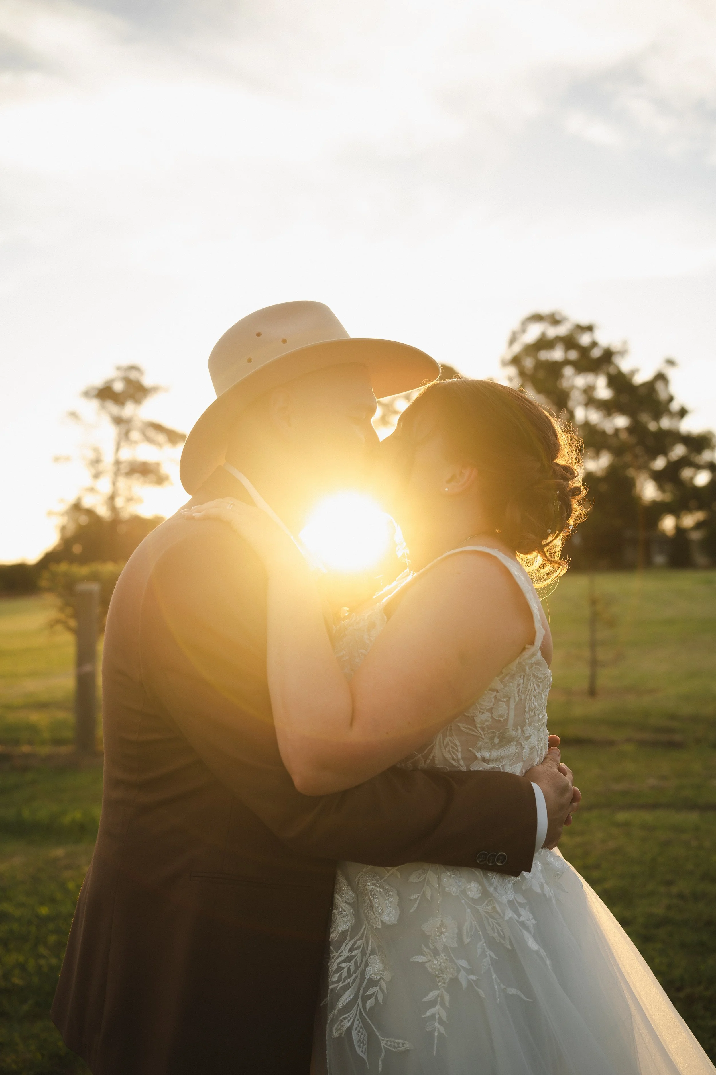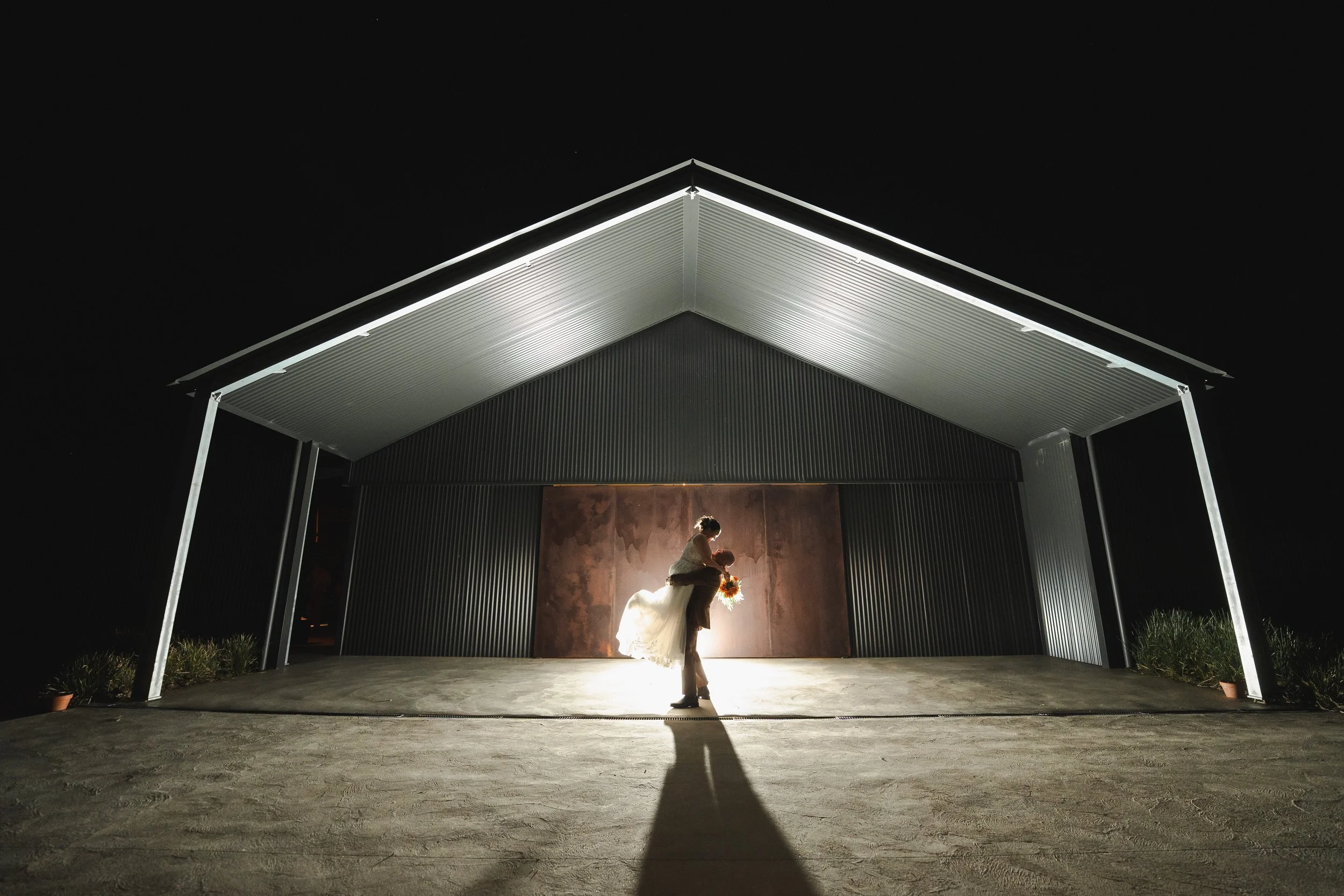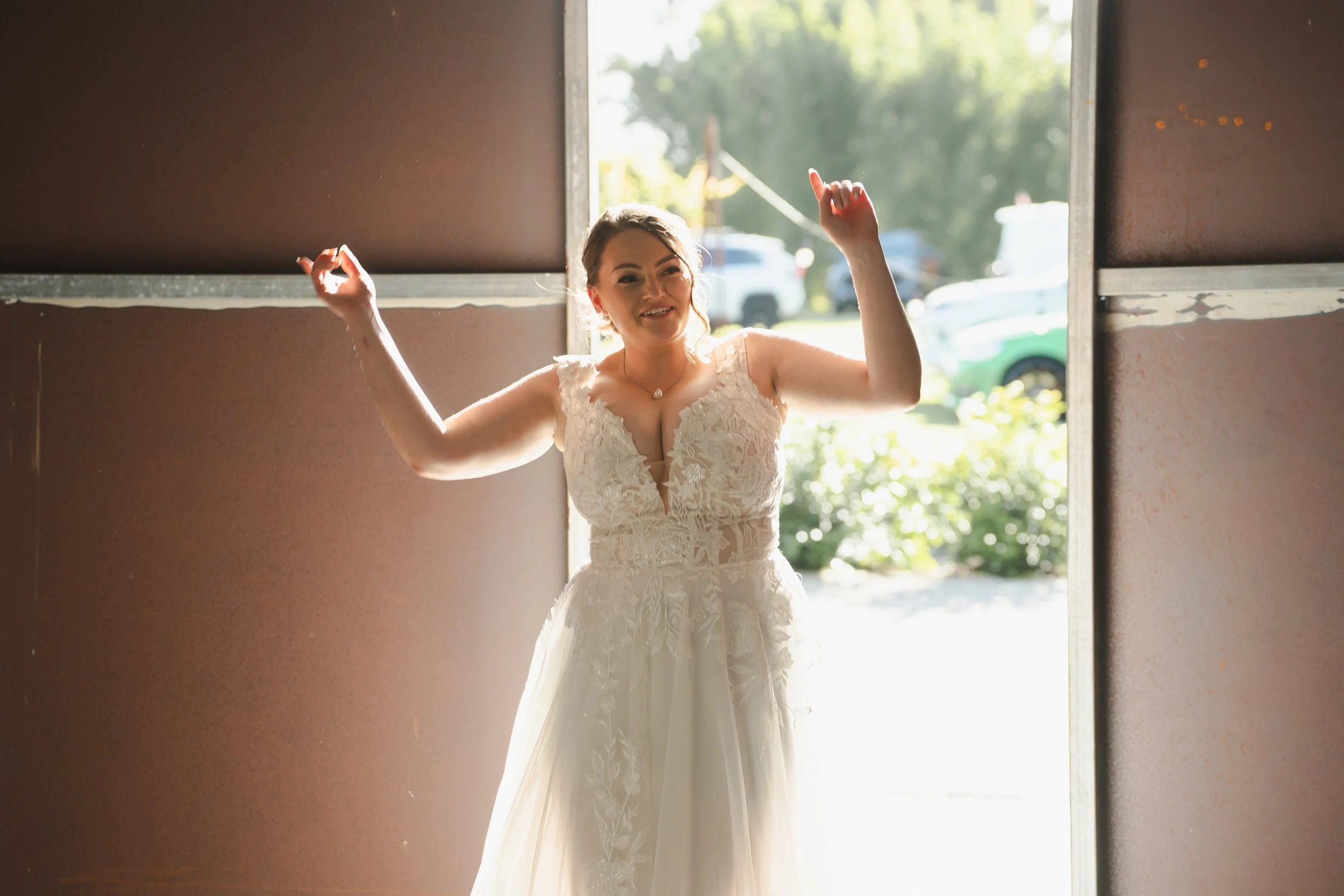 Following their “I do’s,” guests enjoyed the relaxed atmosphere with live music drifting through the winery grounds. The newlyweds wandered through the vineyard rows and around the cellar for their portraits, soaking in golden light and the natural beauty of the venue. It was the perfect blend of elegance and countryside charm, with every moment feeling effortlessly romantic.
