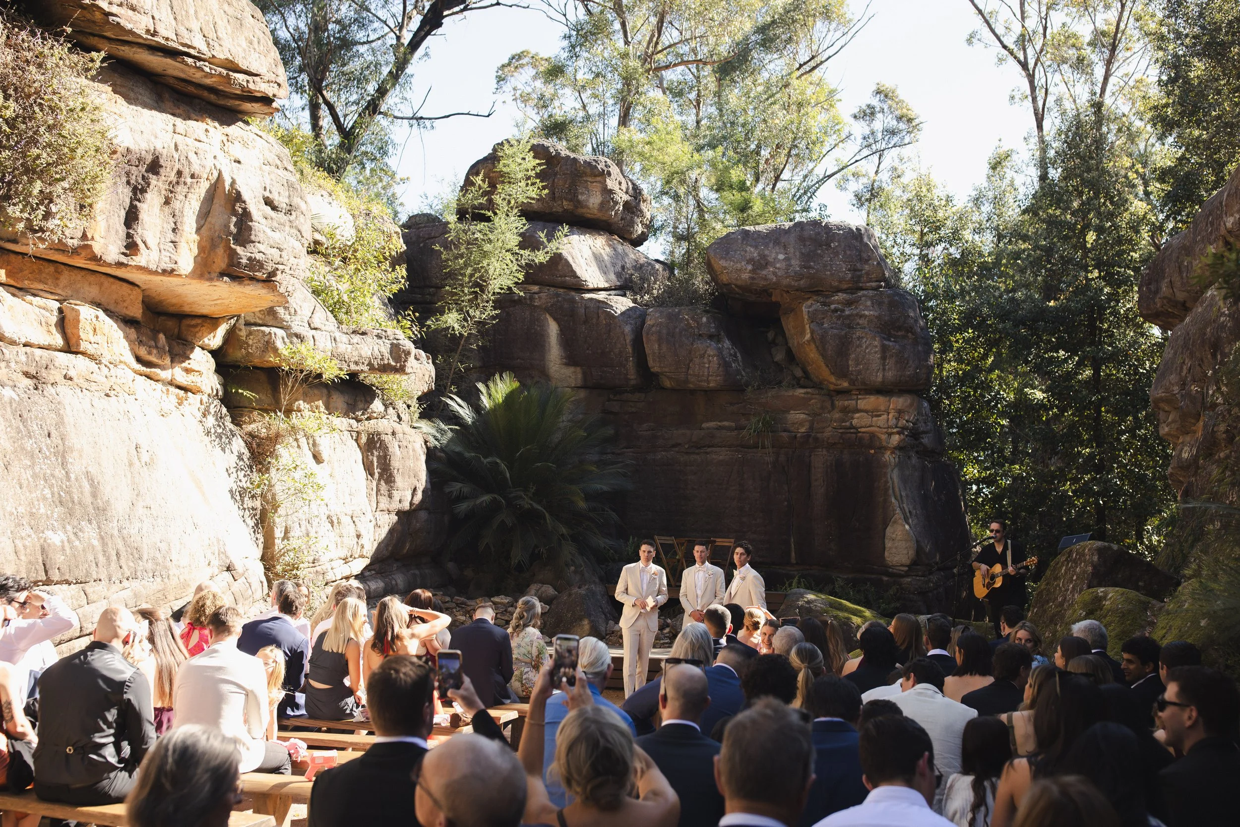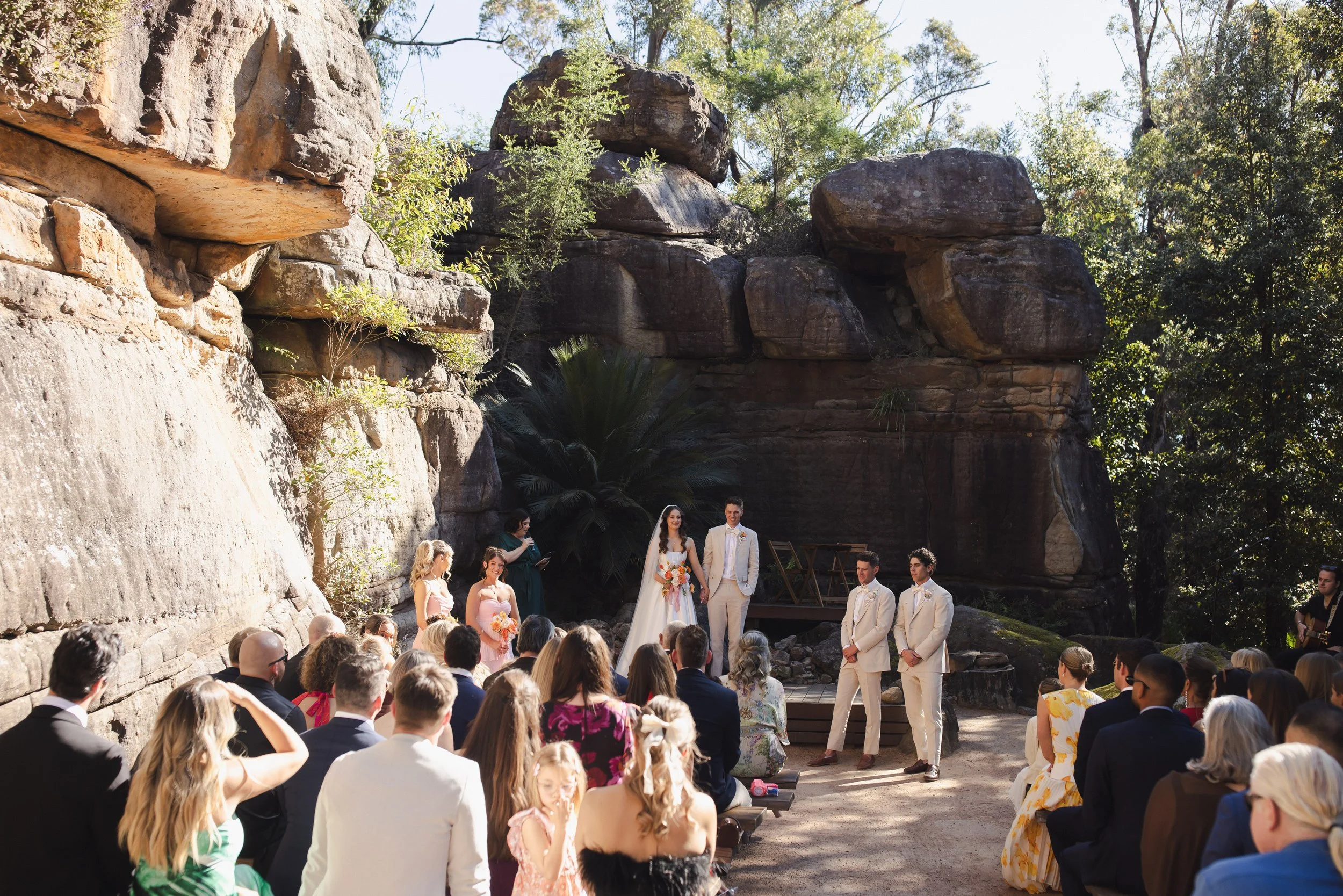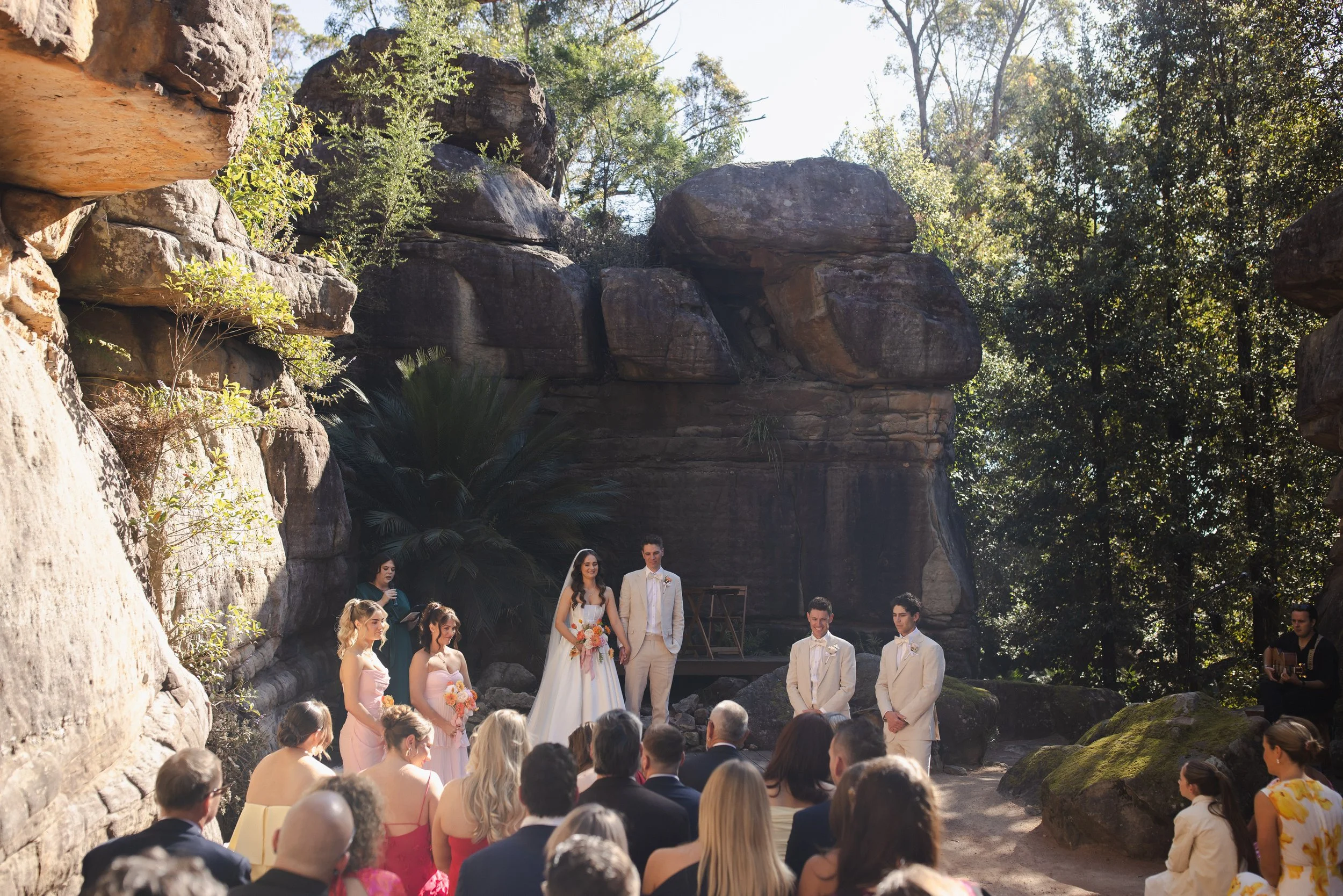 The ceremony took place at the Rock Cathedral, a natural amphitheatre surrounded by towering sandstone cliffs. It was dramatic, grounded, and deeply personal, exactly the kind of setting that doesn’t need much dressing up.