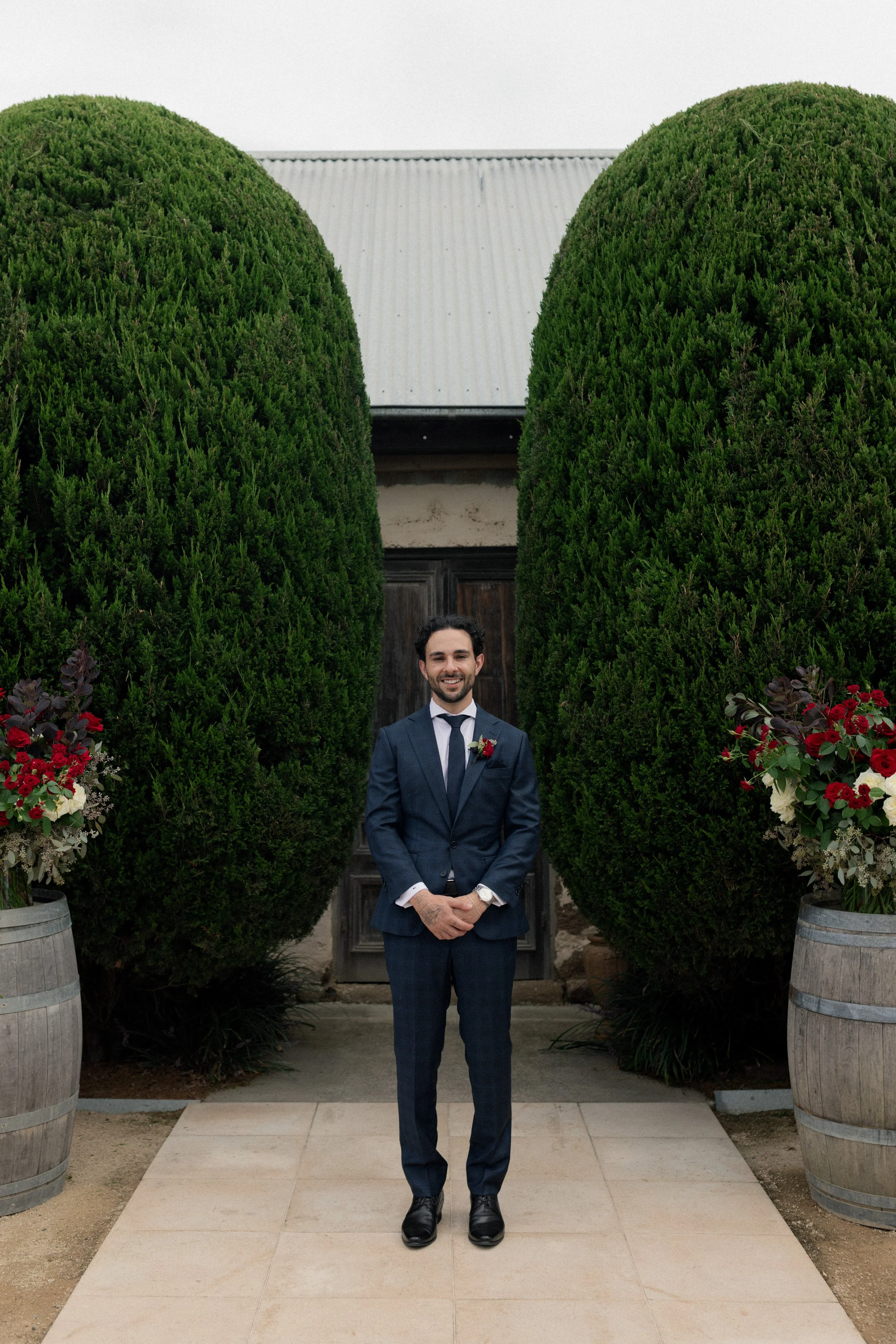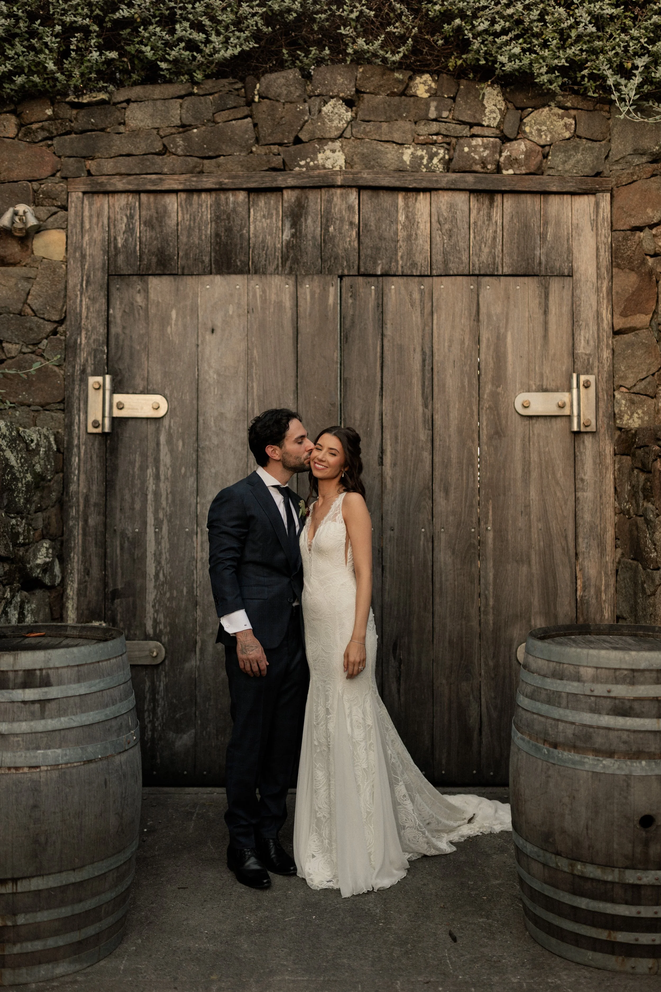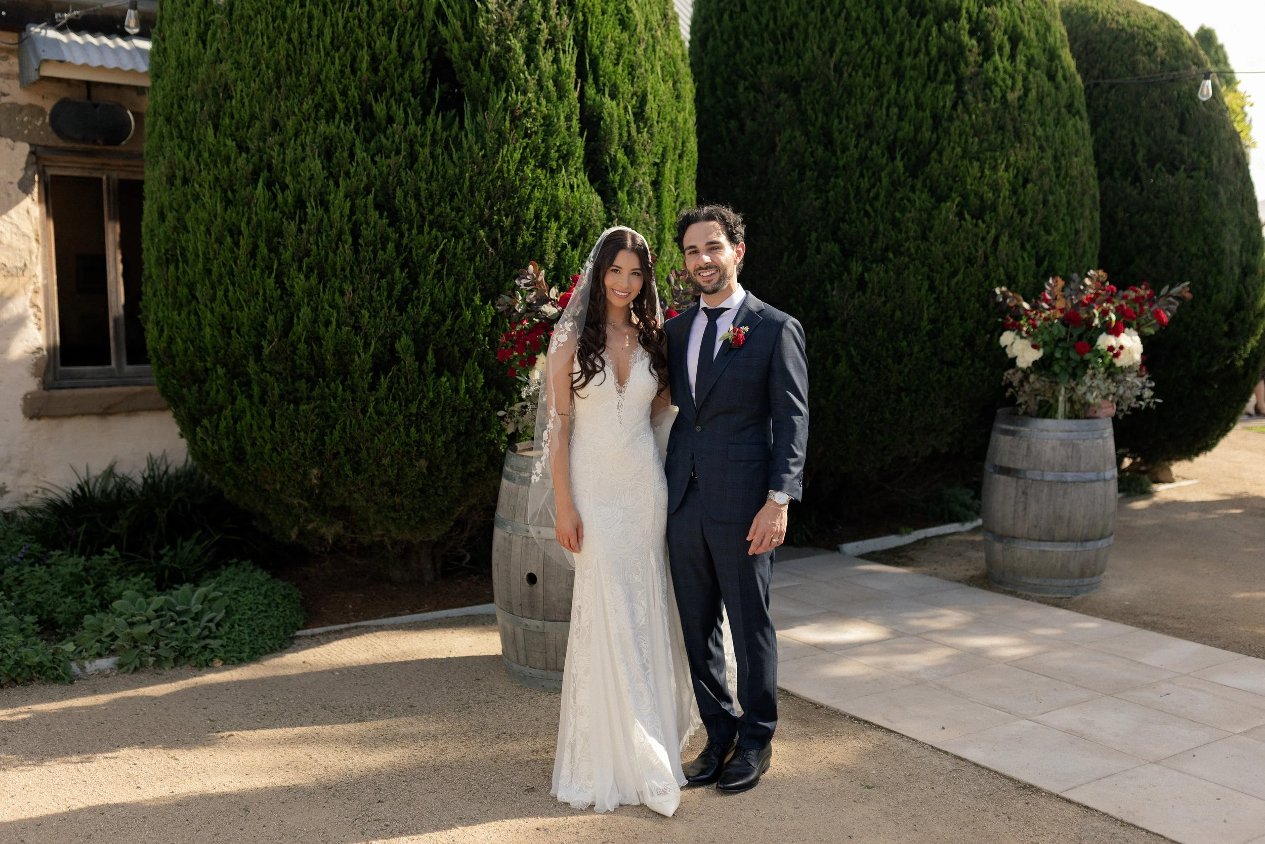 Matteo and Rosemary tied the knot on the 20th of March at the stunning Cupitt’s Winery, surrounded by rolling vineyards and warm coastal air. The day began with a heartfelt first look between Rosemary and her family, an emotional and intimate moment before the celebrations unfolded. Meanwhile, Matteo waited patiently outside the charming cobblestone building, where the couple would soon exchange vows with that beautiful rustic backdrop setting the scene for their ceremony.