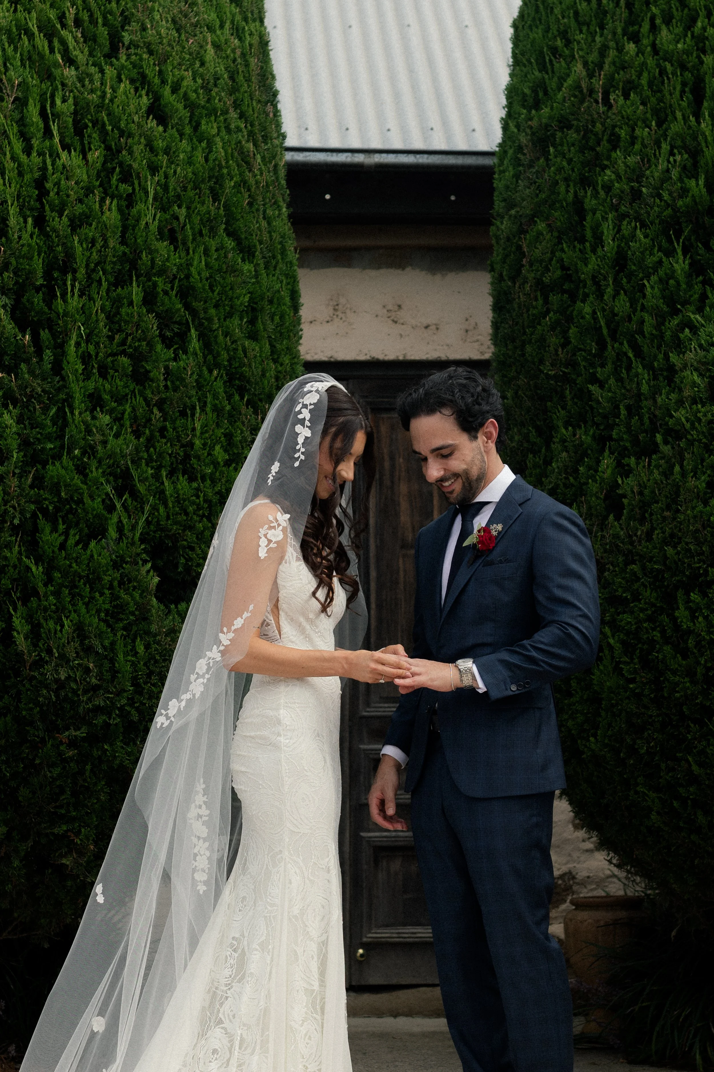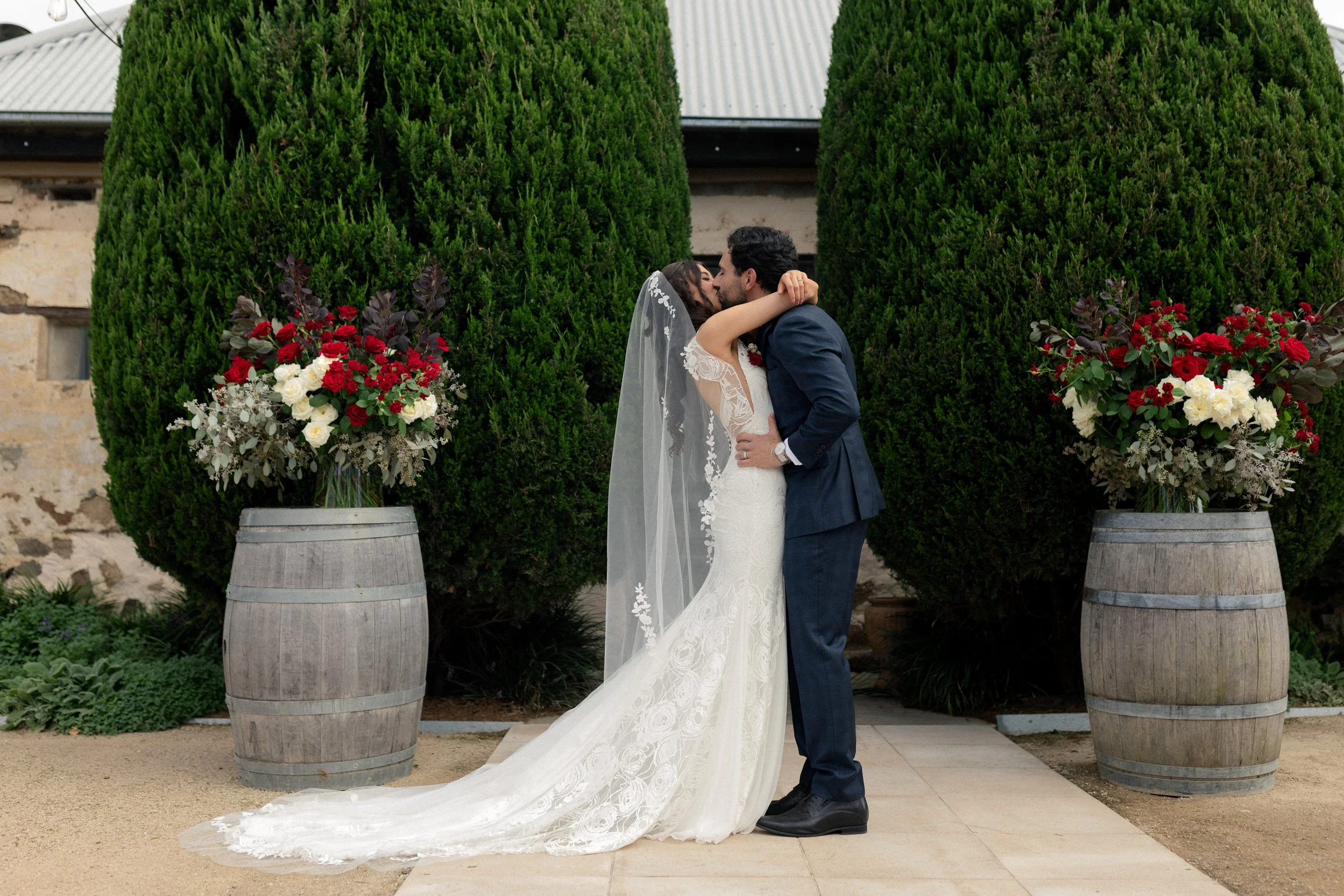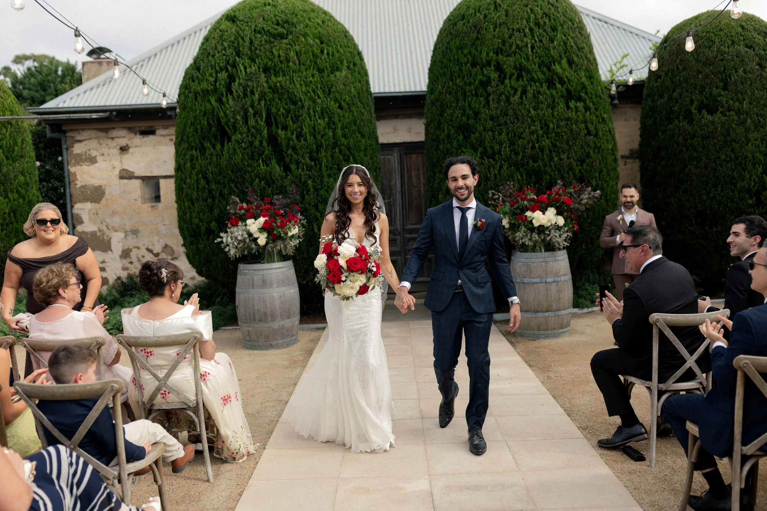 Matteo and Rosemary tied the knot on the 20th of March at the stunning Cupitt’s Winery, surrounded by rolling vineyards and warm coastal air. The day began with a heartfelt first look between Rosemary and her family, an emotional and intimate moment before the celebrations unfolded. Meanwhile, Matteo waited patiently outside the charming cobblestone building, where the couple would soon exchange vows with that beautiful rustic backdrop setting the scene for their ceremony.