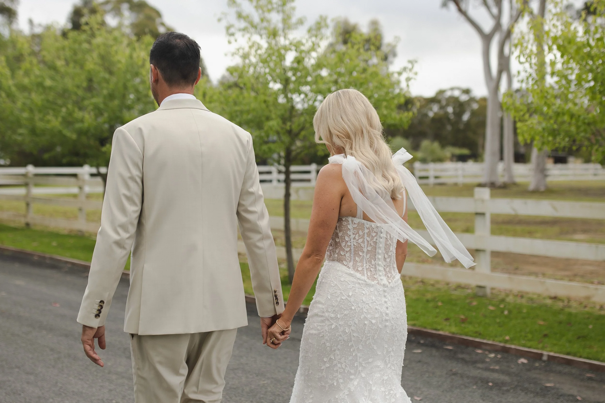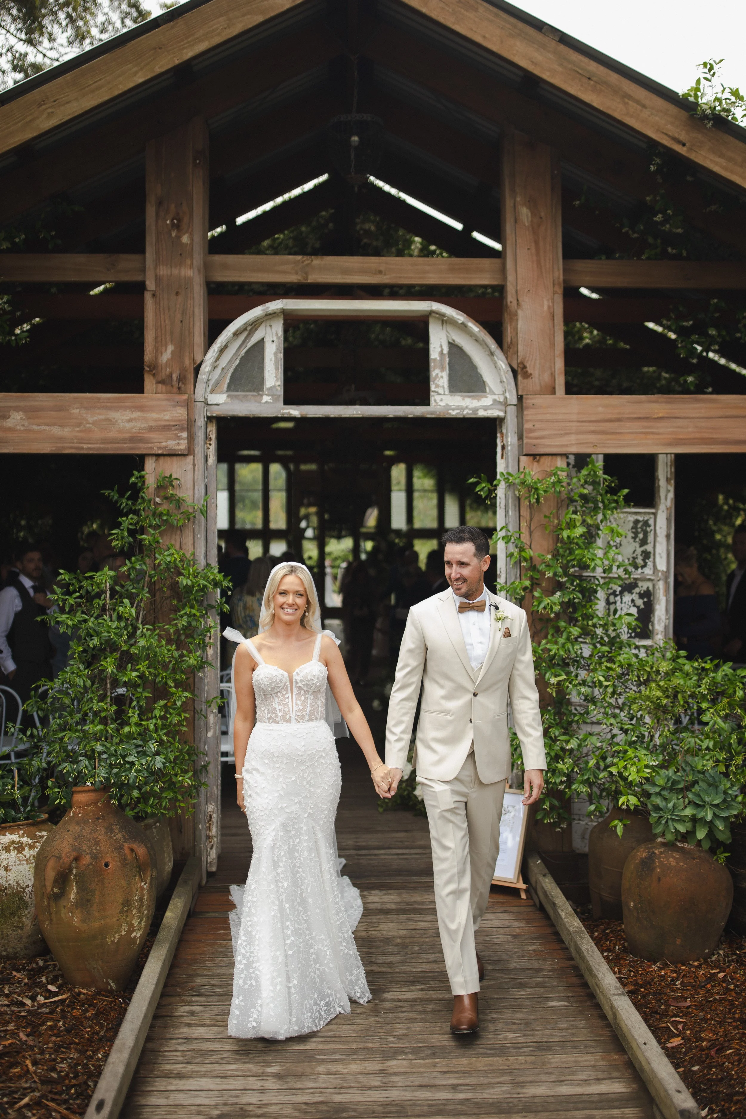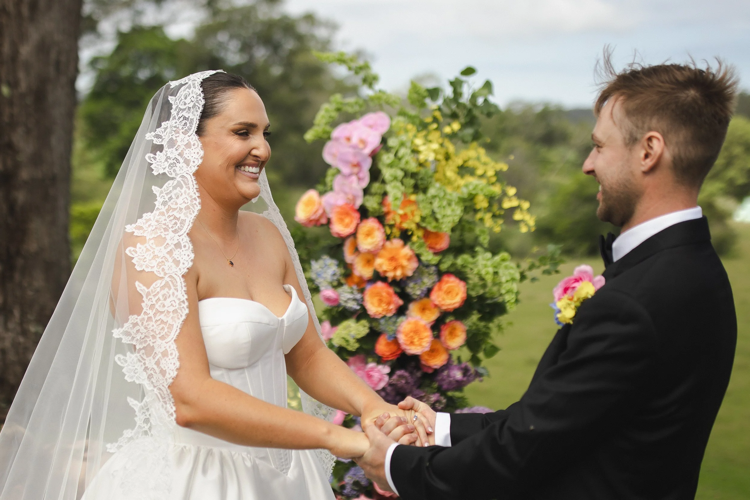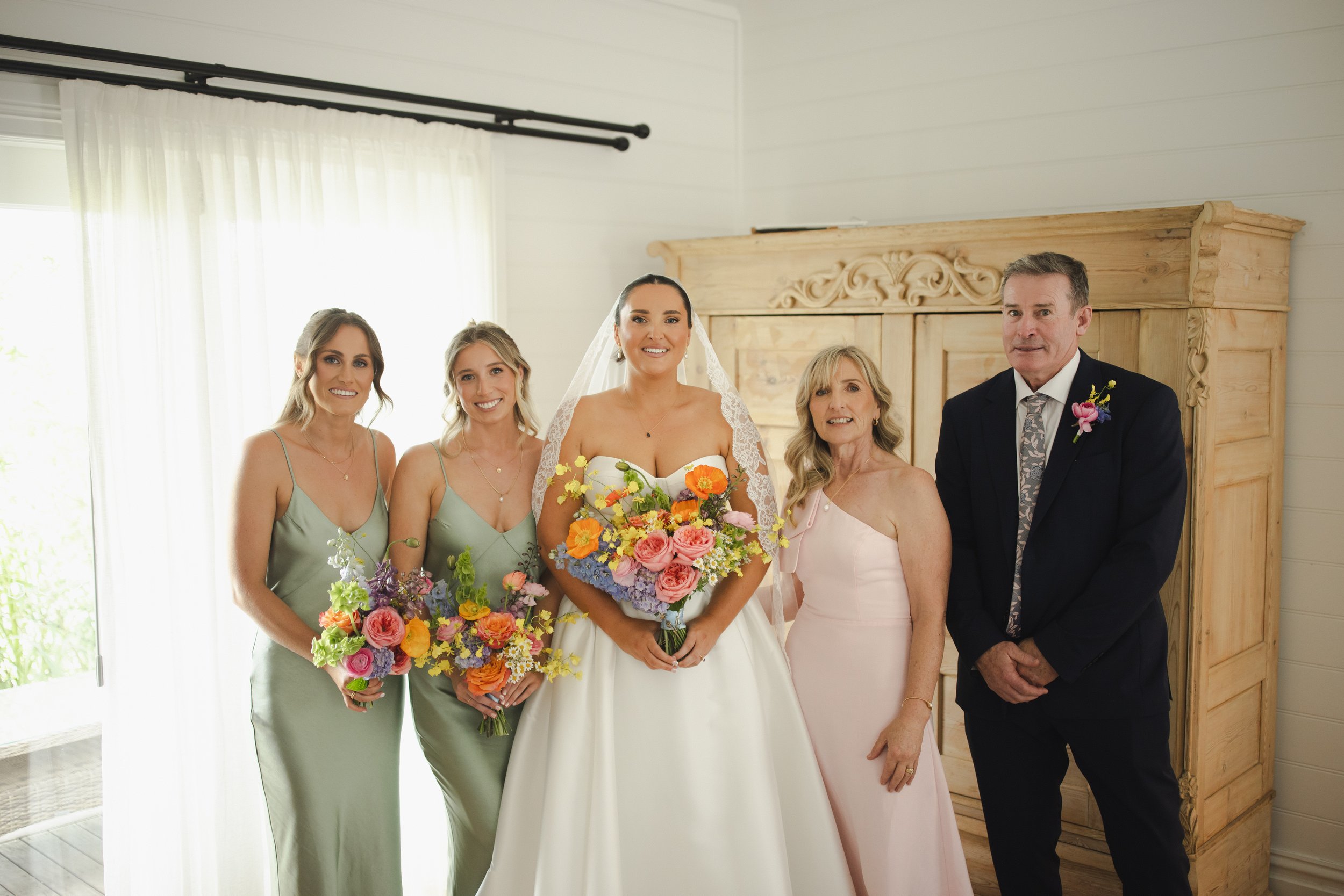 On the 1st of October, Jarod and Maddy tied the knot at the beautiful Homestead Berry, a venue that felt made for their relaxed, vibrant celebration. They spent the morning in the charming cottages, tucked away from each other, adding to the anticipation of their first look. That moment finally came as Maddy walked down the aisle, an emotional, joy filled reveal framed by two bright, colourful floral plinths. With rolling farmland stretching out behind them, they exchanged heartfelt vows under perfect countryside skies.