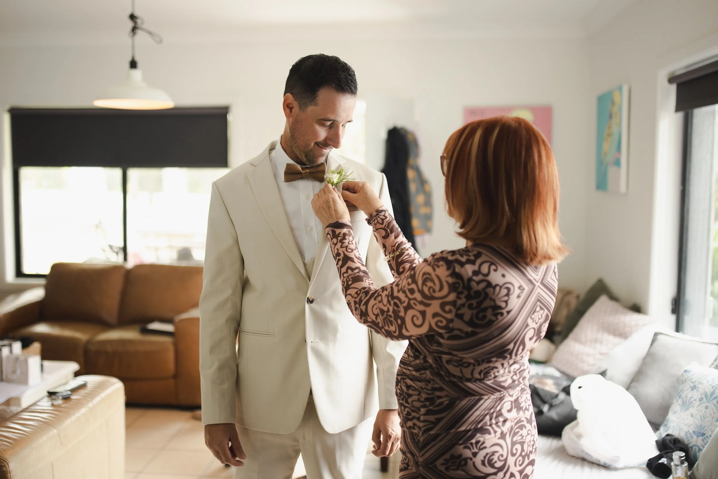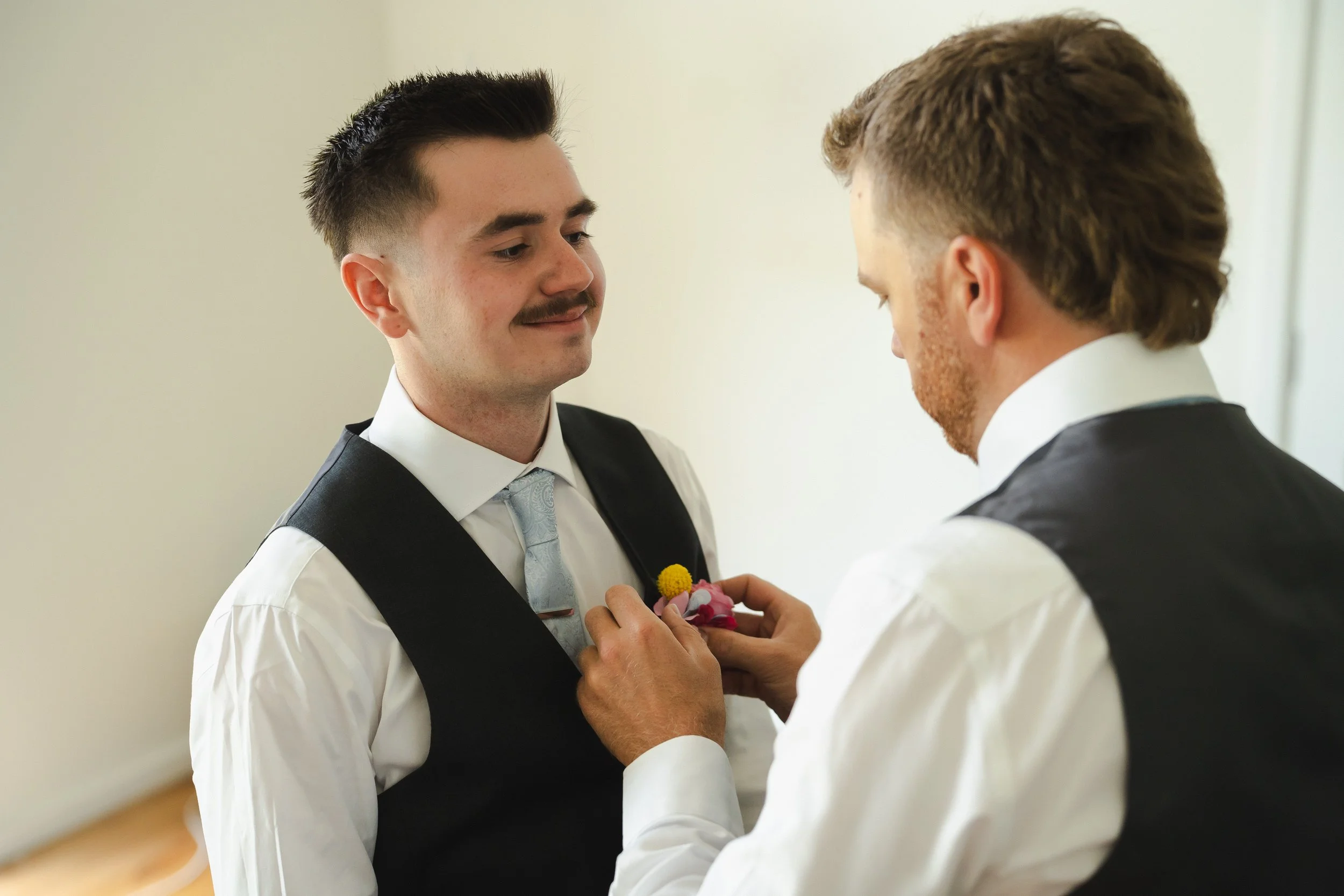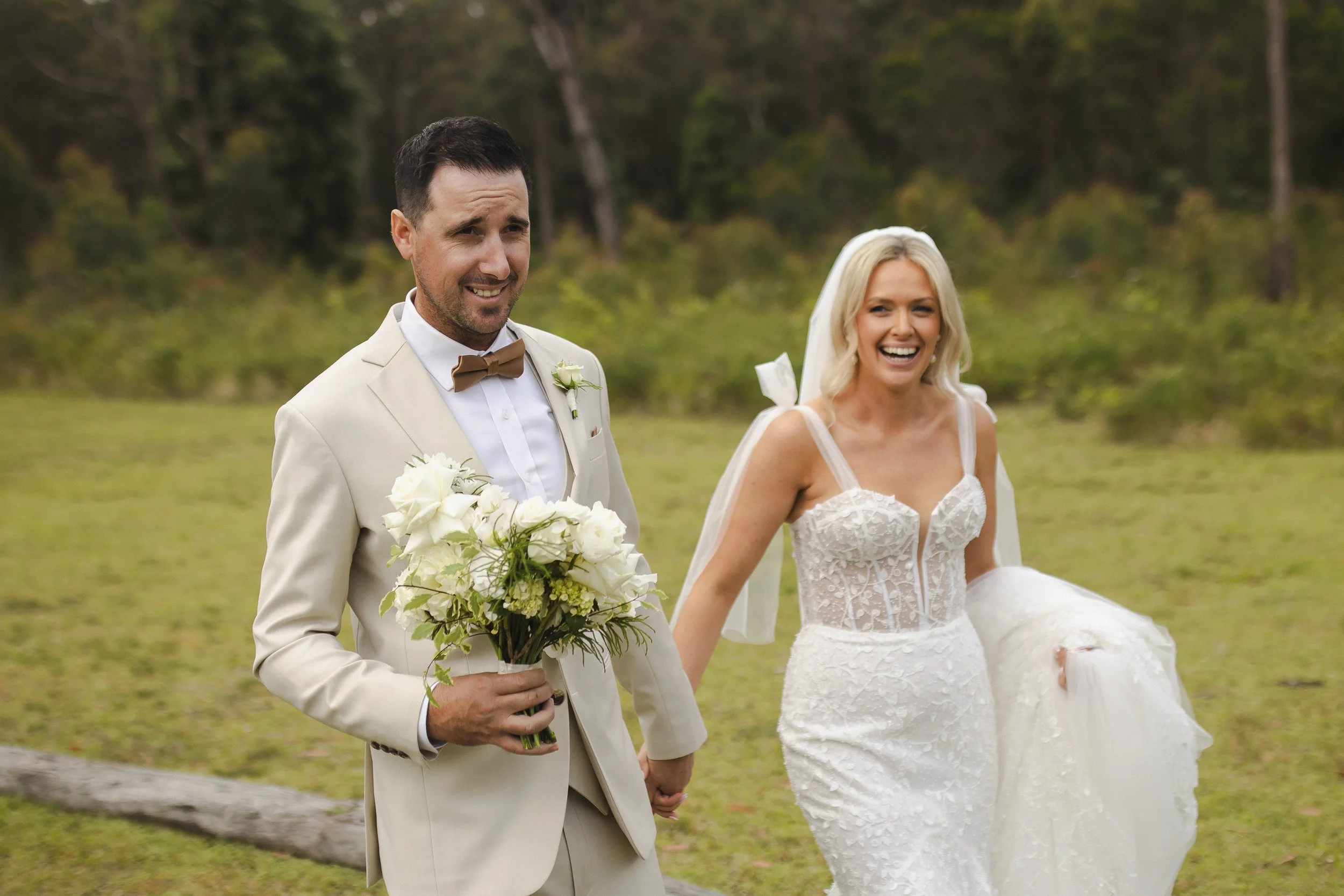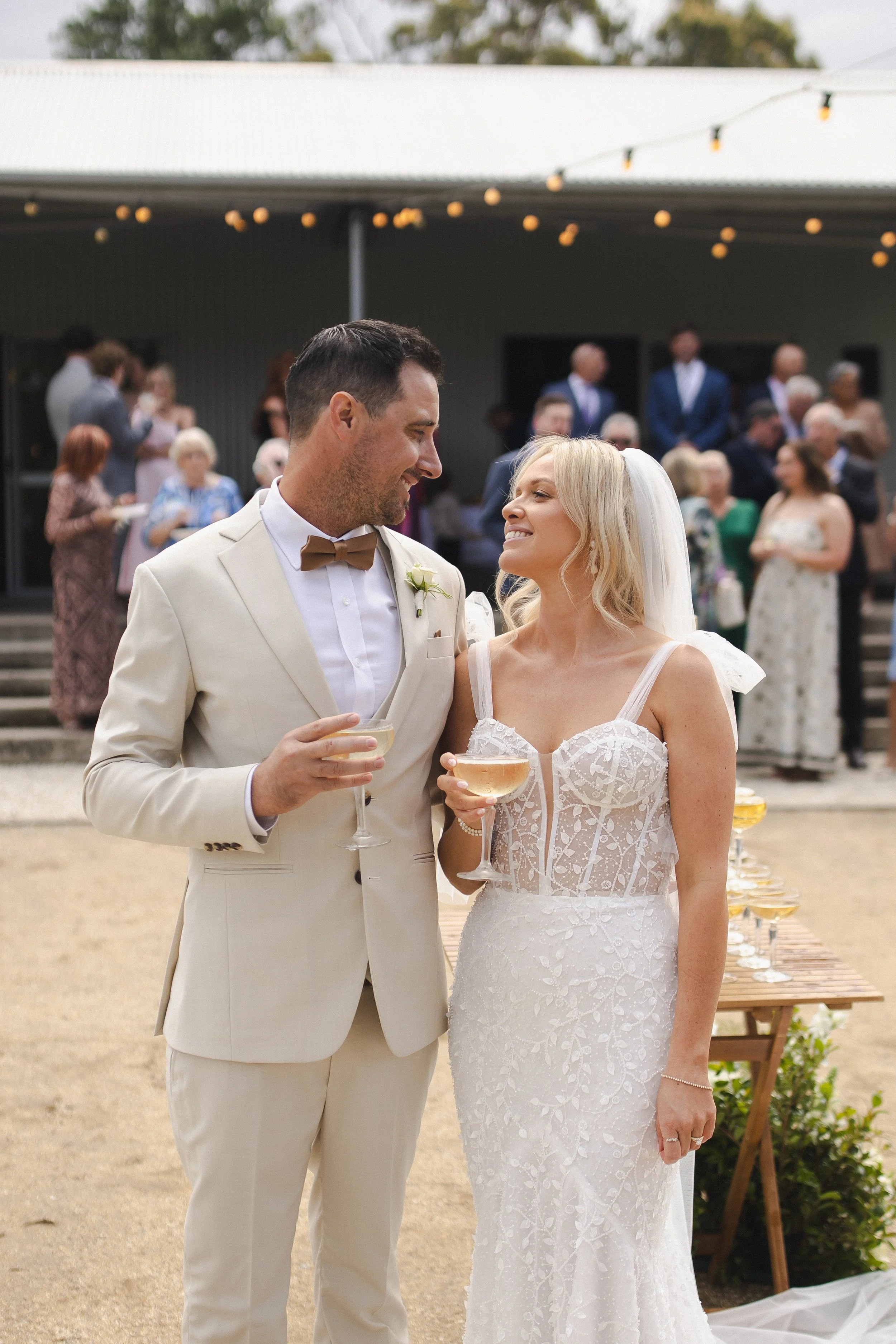 Ben and Kate were married on the 27th of October in the enchanting surrounds of The Woods Farm, a venue that seemed made just for them. The day began in the charming country cottages, where the bride and groom got ready with their closest family and friends. Soft morning light, the peaceful country setting, and a flurry of happy anticipation set the perfect tone.