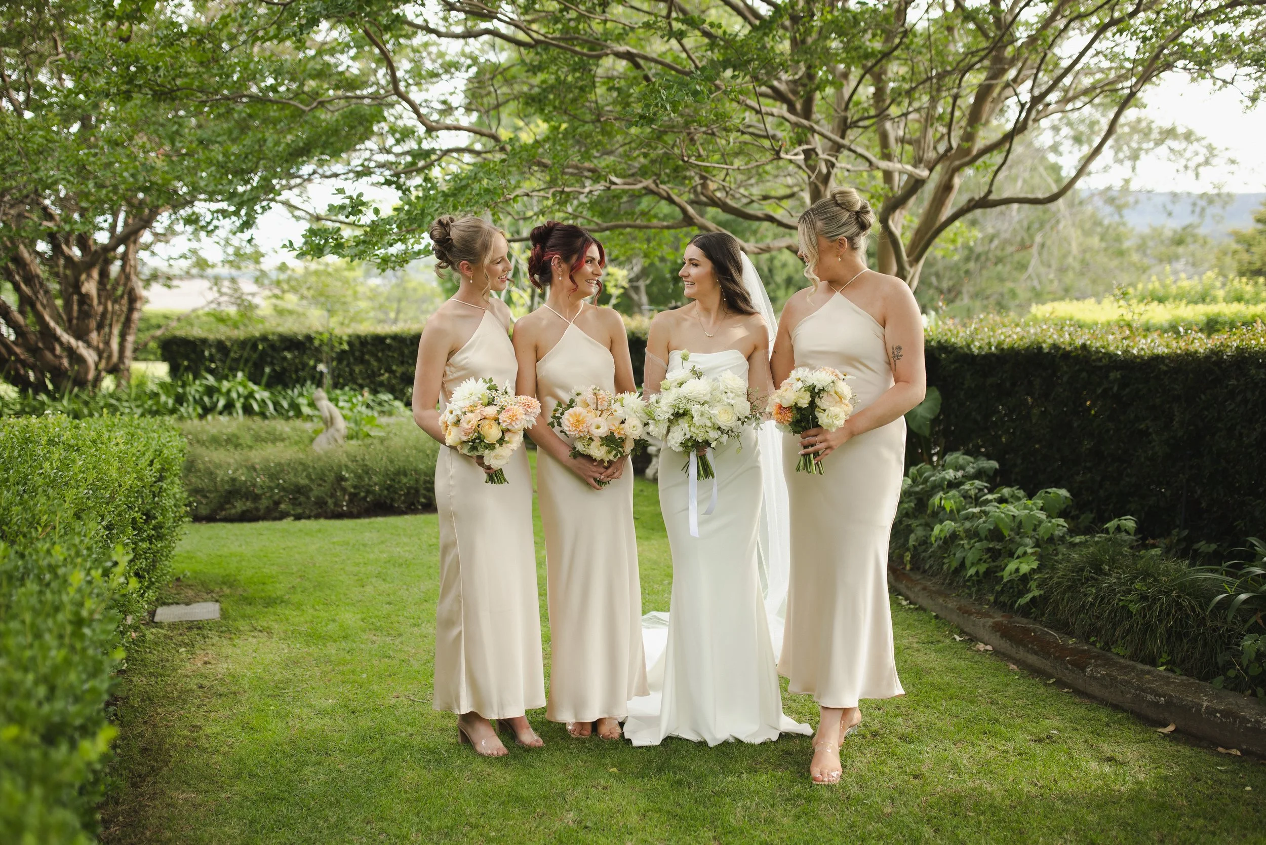 On the 1st of November, Josh and Emma tied the knot in the picturesque surrounds of Figbird Cottage in Terara, and the day couldn’t have been more magical. The celebrations began with the girls getting ready in matching pyjamas, sharing laughs while their hair and makeup were styled to perfection. Meanwhile, the boys suited up in style, drinks in hand, easing into the excitement of the day ahead.