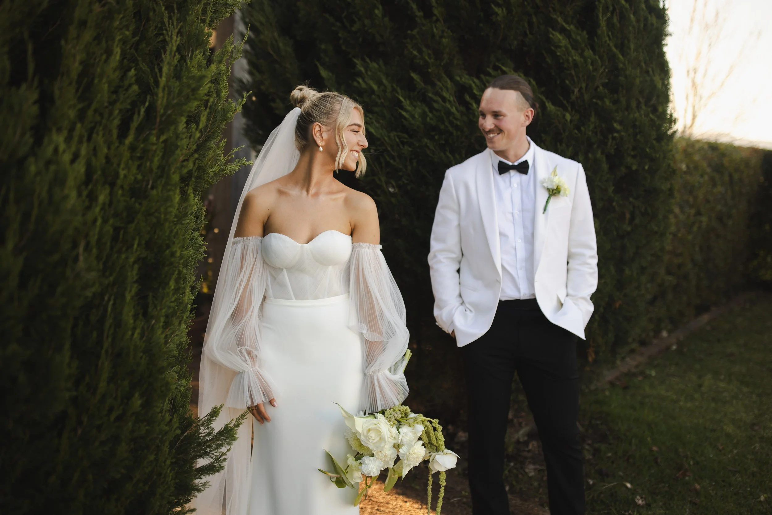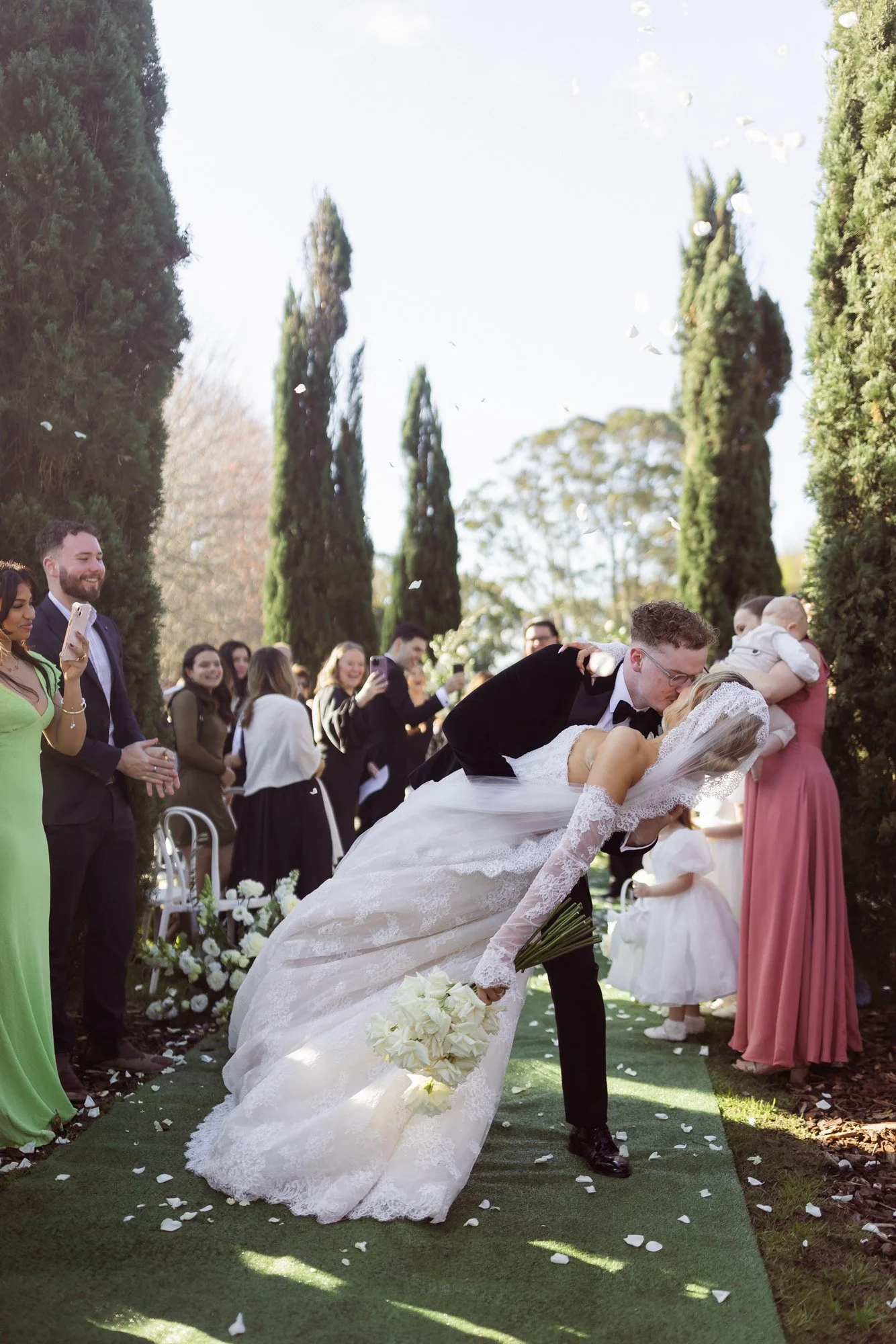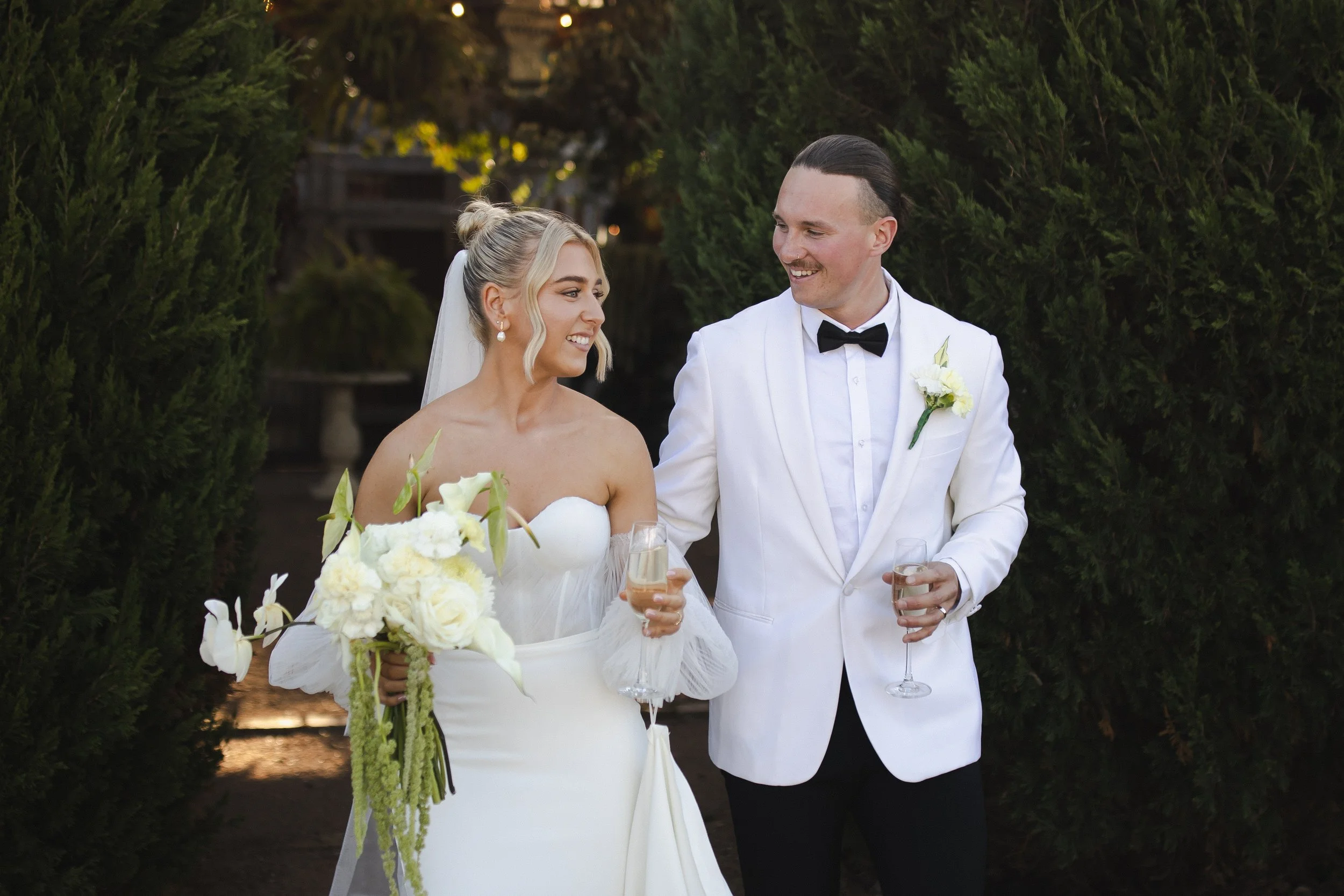 On a picture-perfect day in late August, Harry and Brittany tied the knot in the breathtaking gardens of Merribee. Surrounded by blooming flowers and the warm glow of afternoon light, their outdoor ceremony felt like something from a modern fairytale. It was elegant, intimate, and beautifully personal.