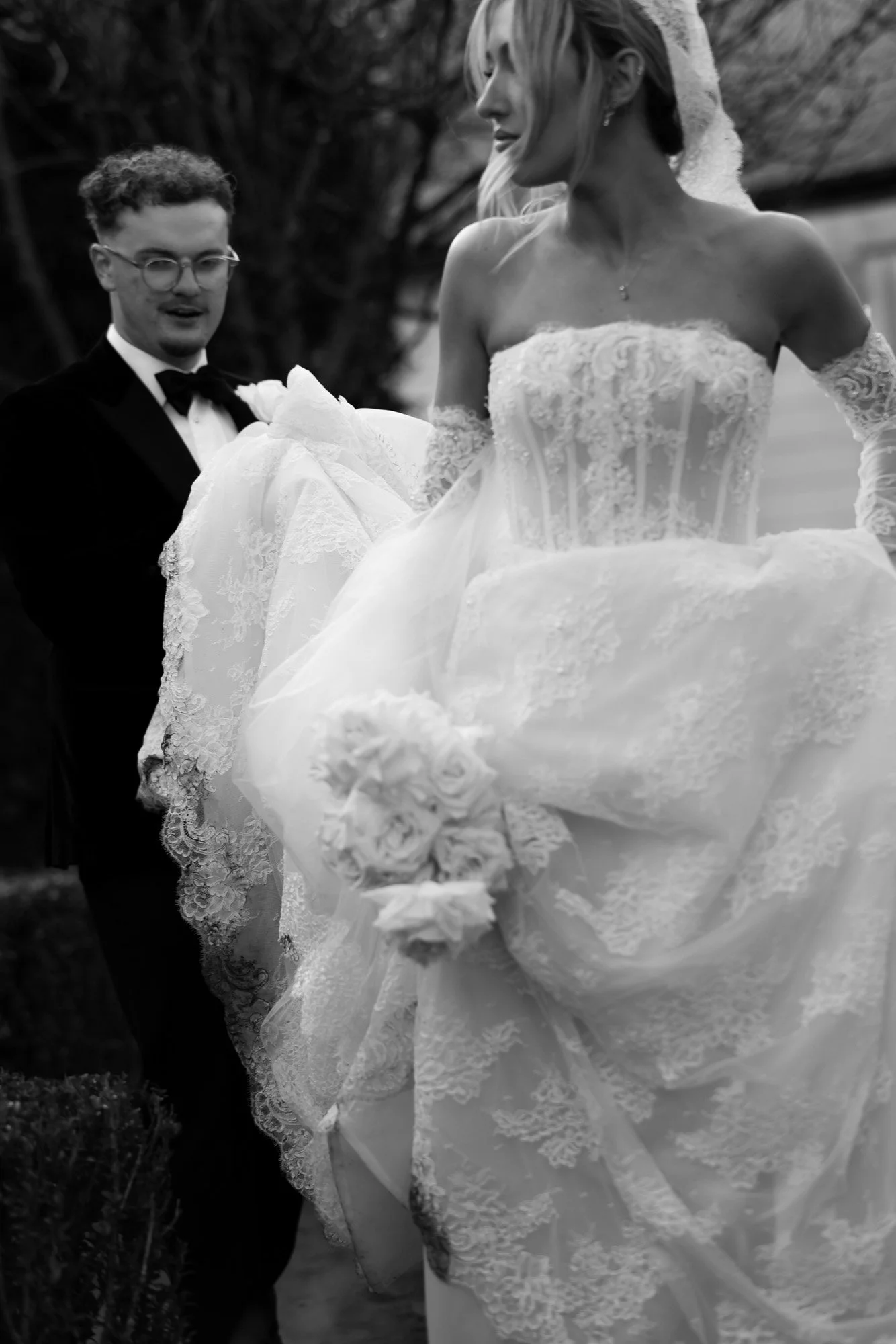 The Woods Farm isn’t your typical wedding venue; it’s a quirky, idyllic farm stay where guests enjoyed the outdoor pool, a charming pool house, a French-style herb and flower garden, a bike shed, and a kids’ playground. Plus, the friendly farm animals—horses, goats, alpacas, chickens, cows, peacocks, and ponies—added a playful, heartwarming touch to the day.