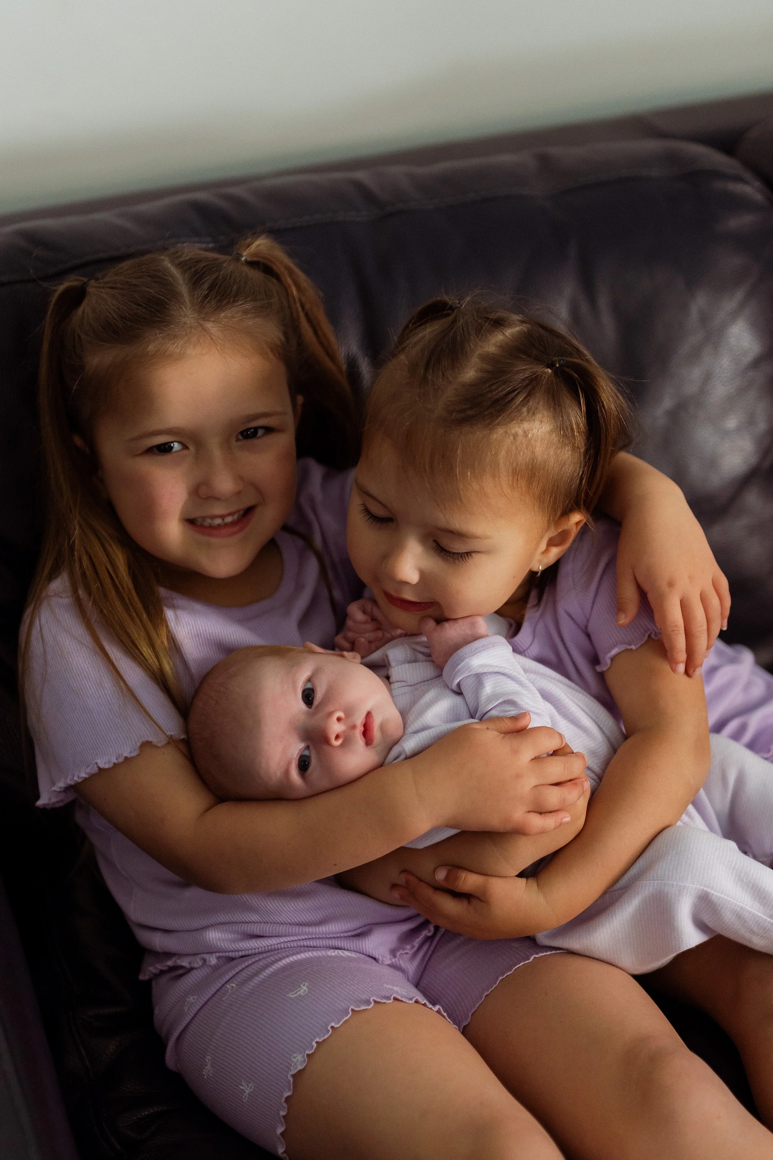 I recently had the joy of capturing an intimate in-home newborn photoshoot for Madison and Hayden, welcoming their newest little blessing into their proud, happy family. It was so special to see the love between them and their two older daughters, who were absolutely smitten with their tiny new sibling. Having had the honor of photographing Madison and Hayden’s wedding years ago, it felt like coming full circle to now document this beautiful new chapter in their lives. The warmth and genuine connection in their home made for truly heartfelt and timeless photos I’m so grateful to have captured.
