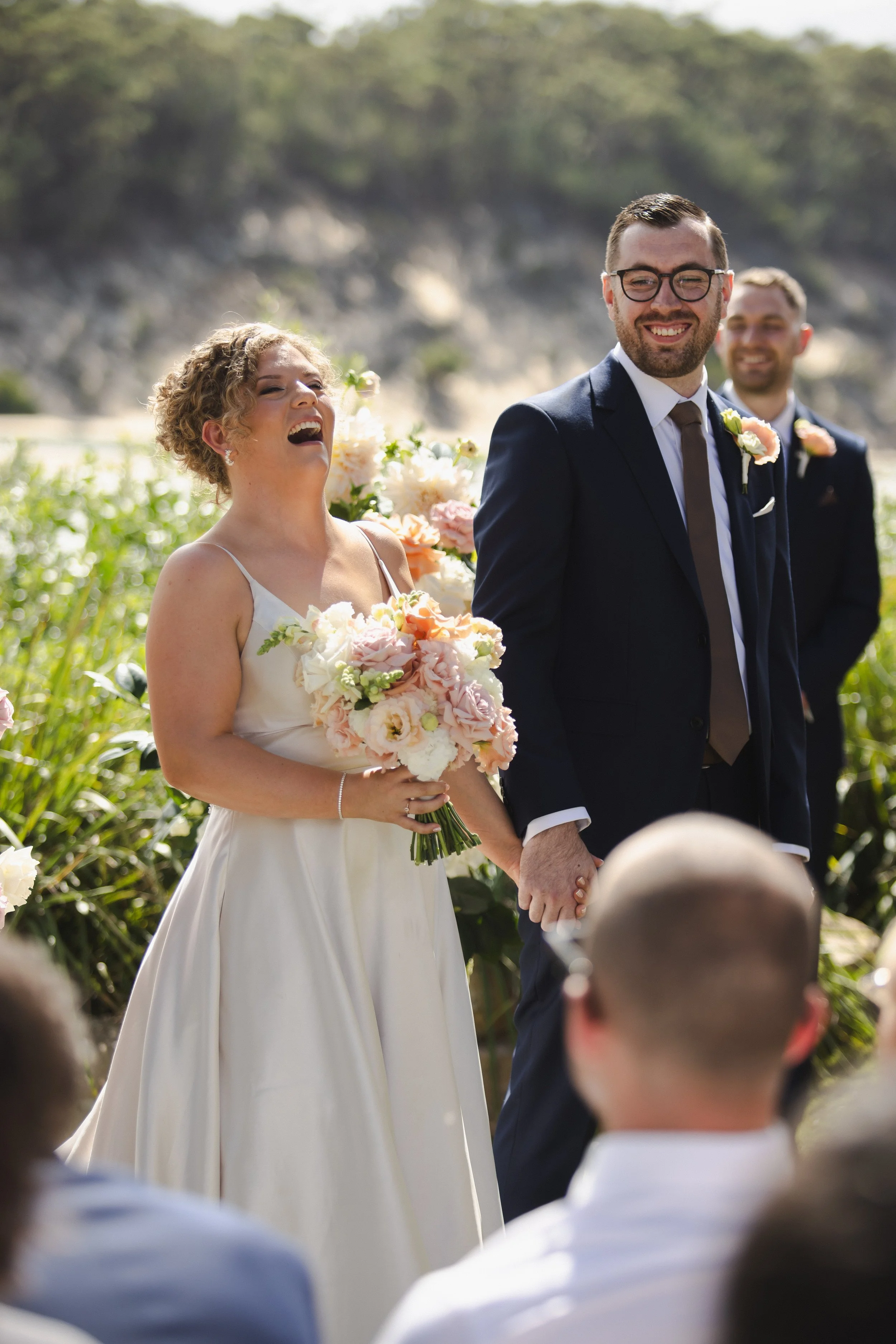 Their ceremony overlooked the ocean, with the water stretching endlessly behind them as they exchanged vows. It was heartfelt and intimate, the sea breeze and sound of the waves adding to the magic of the moment.