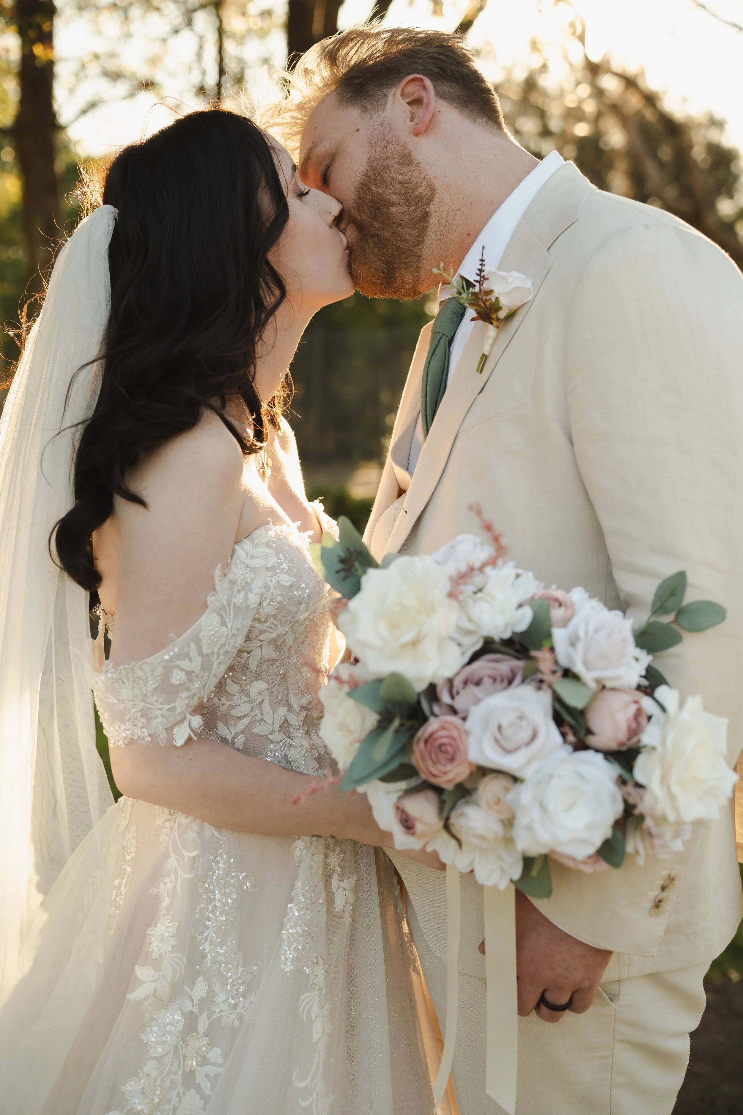 As the sun dropped toward the riverbank, the couple wandered the grounds for portraits. The light hit just right, golden, soft, and fleeting, perfect for the kind of photos that tell a story years down the line.