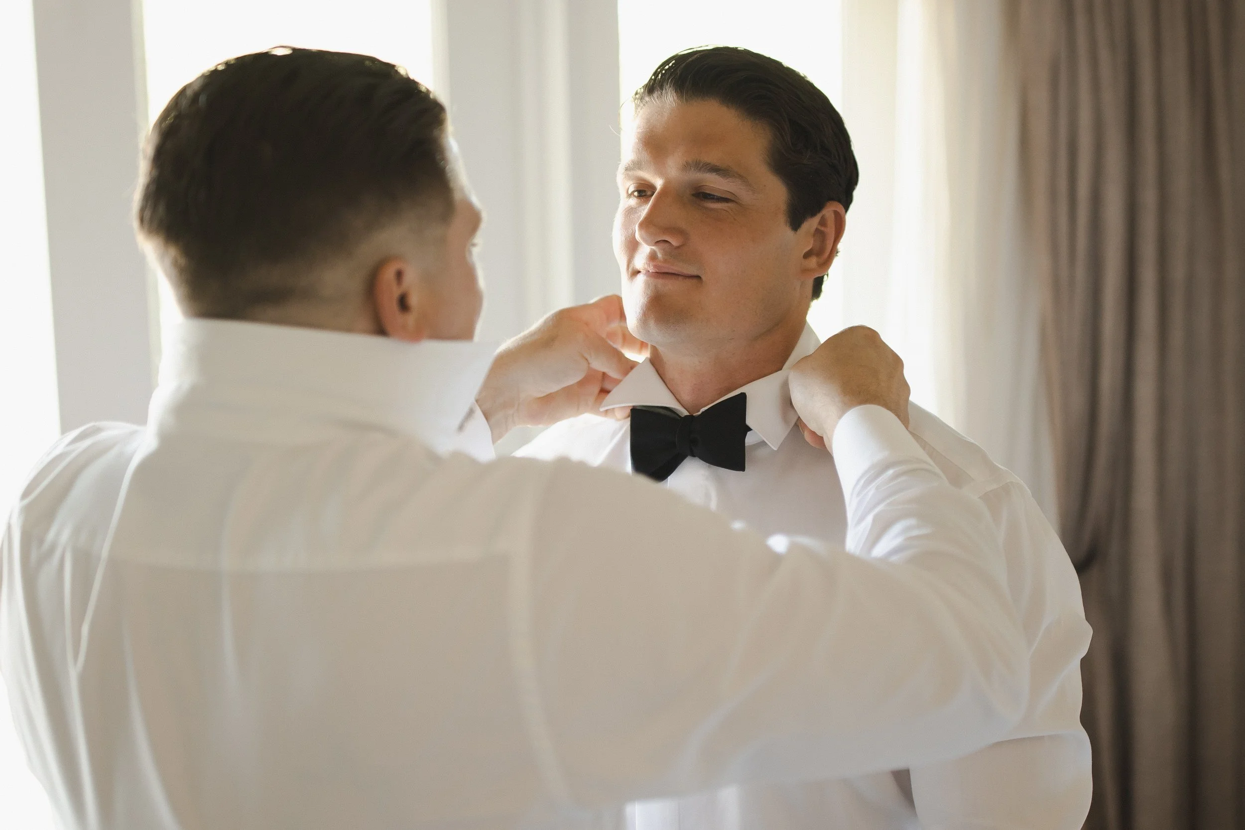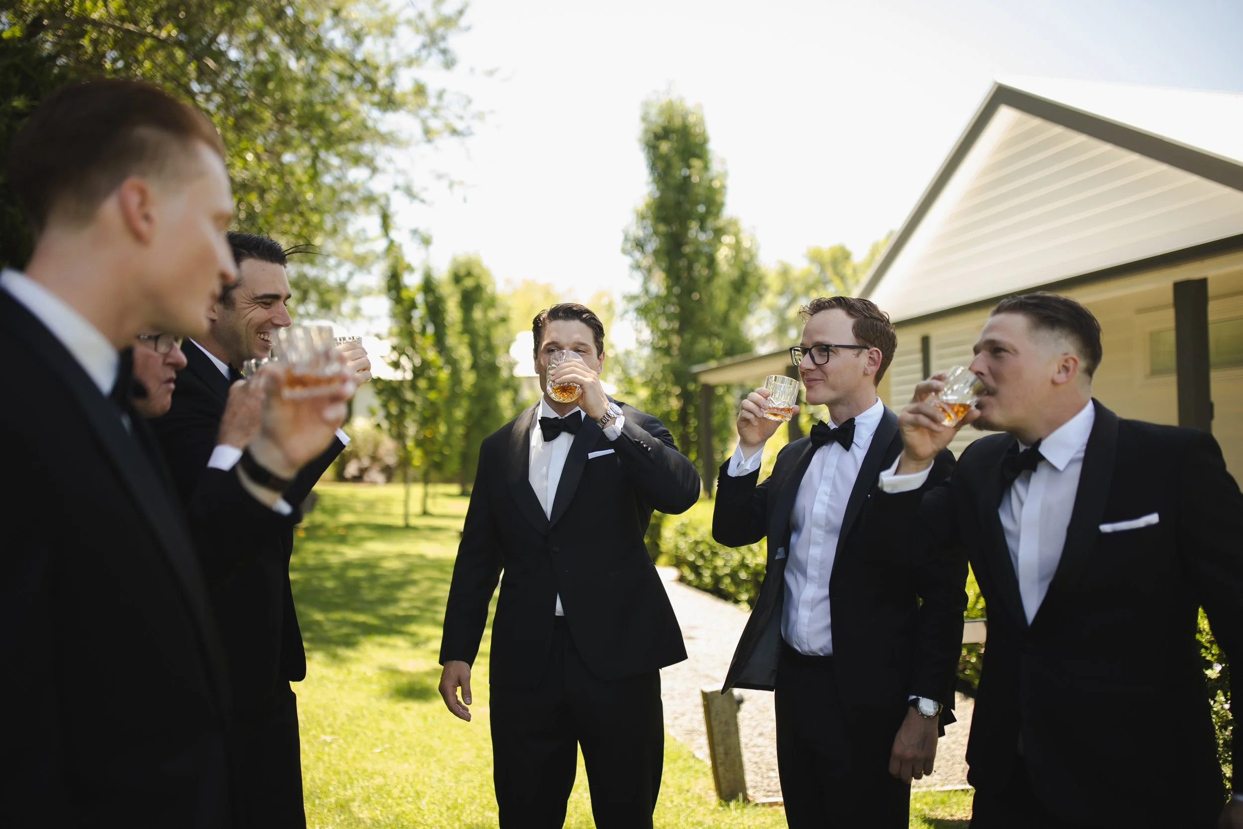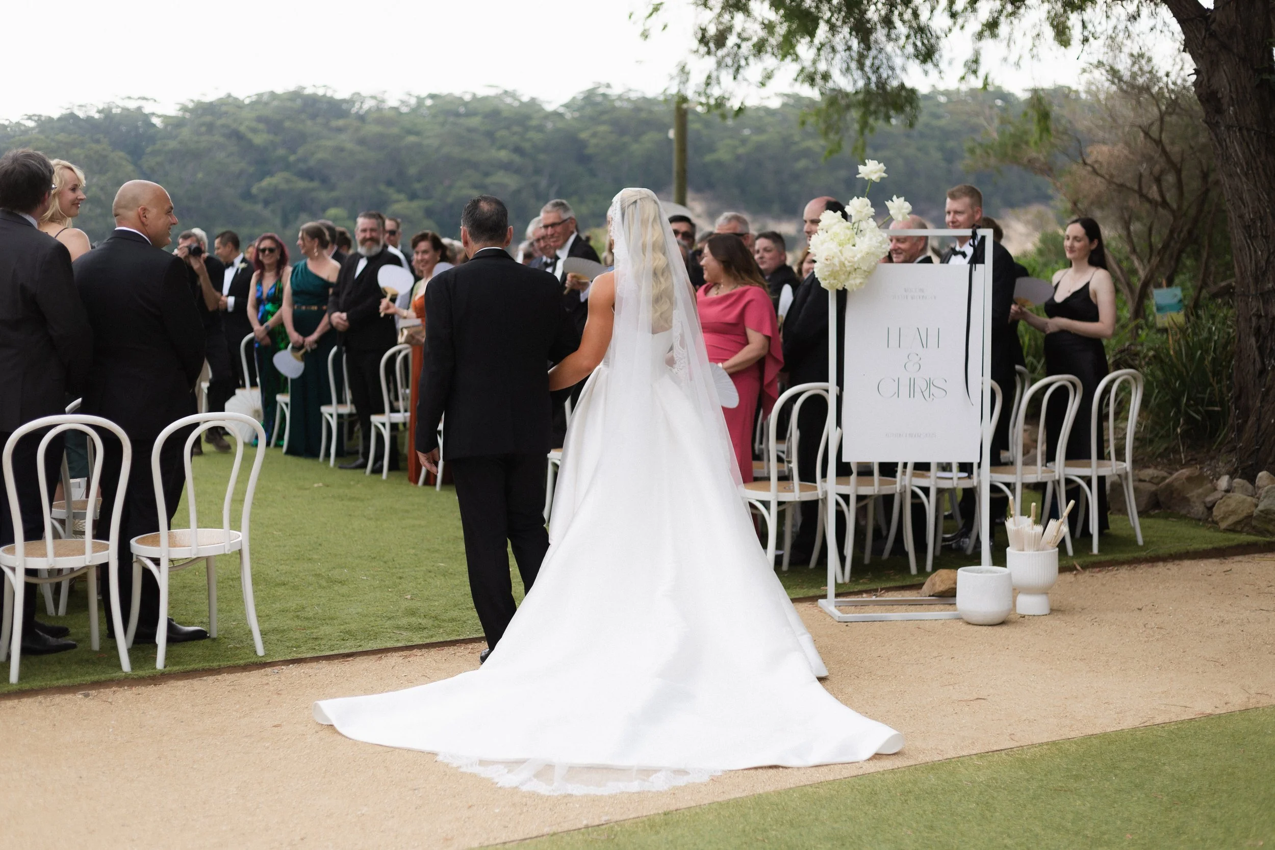 Rachel got ready in the Dairy on the property, sharing a special first look with her dad before heading to the ceremony. They were married outside the Homestead, surrounded by the gardens and all their favourite people.