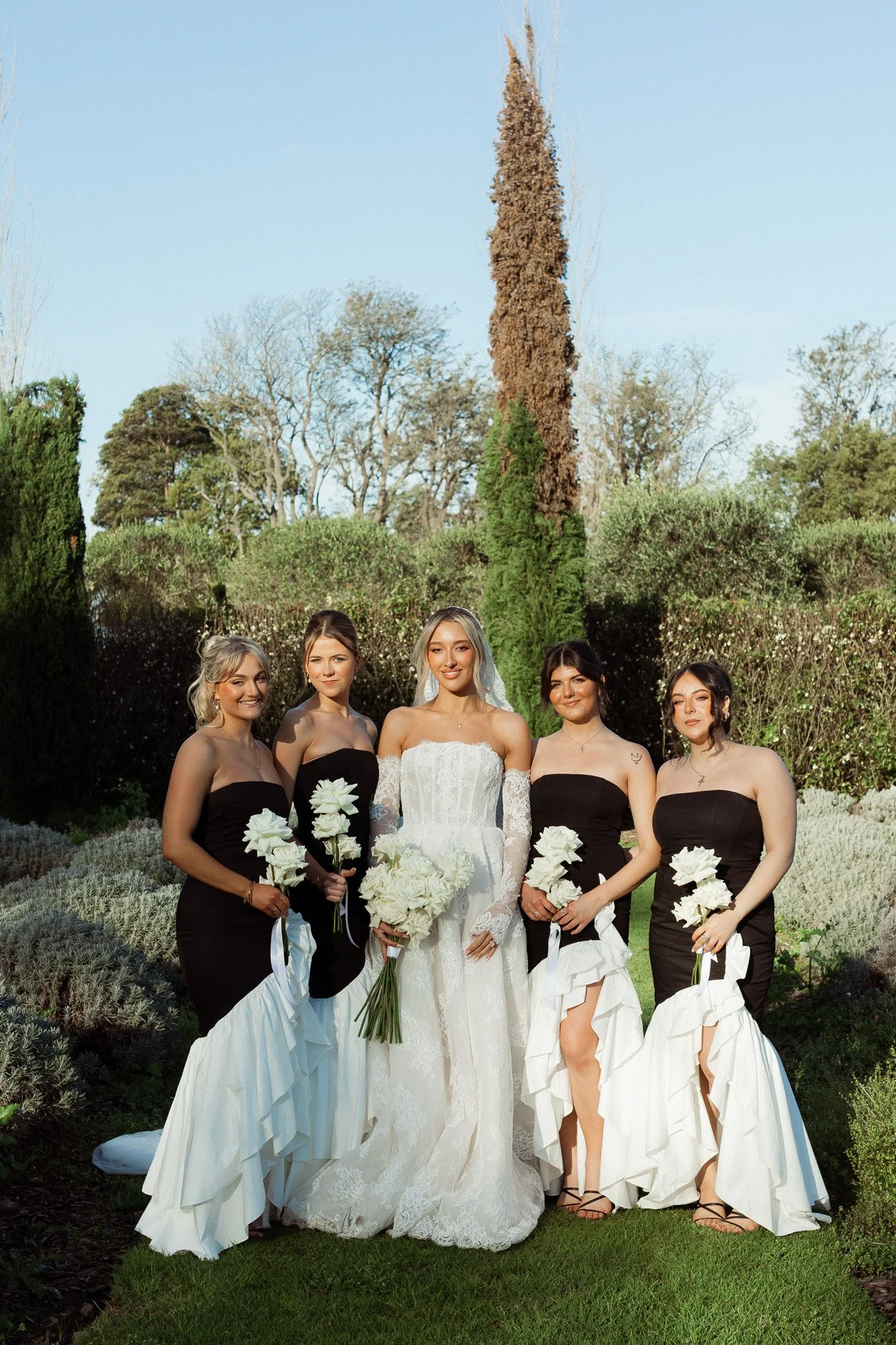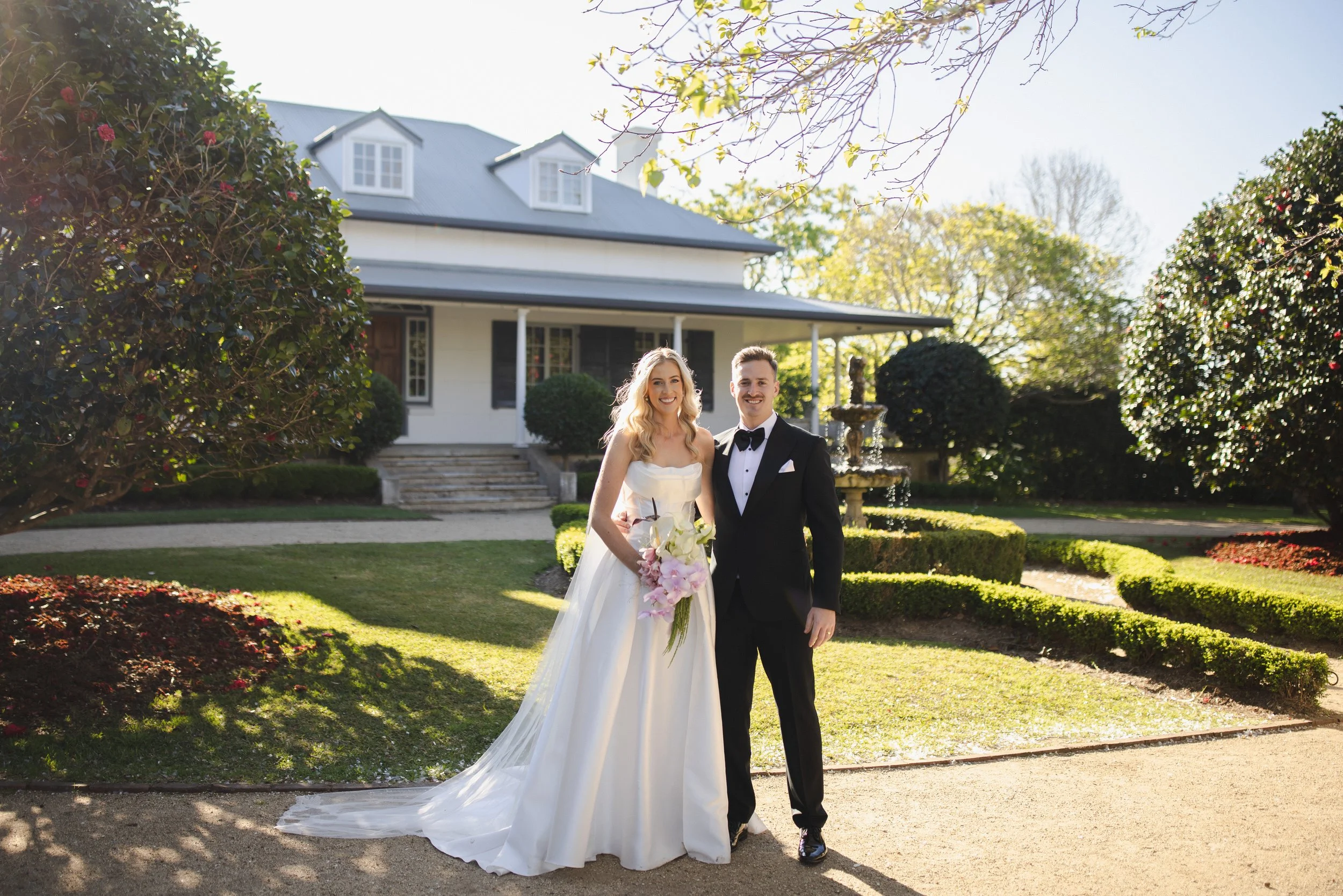 Their ceremony took place in the gardens, with the homestead providing an iconic backdrop that felt both timeless and intimate. After the vows, the bridal party took advantage of the estate’s stunning grounds for portraits, capturing natural moments that truly reflected the day’s joyful vibe.