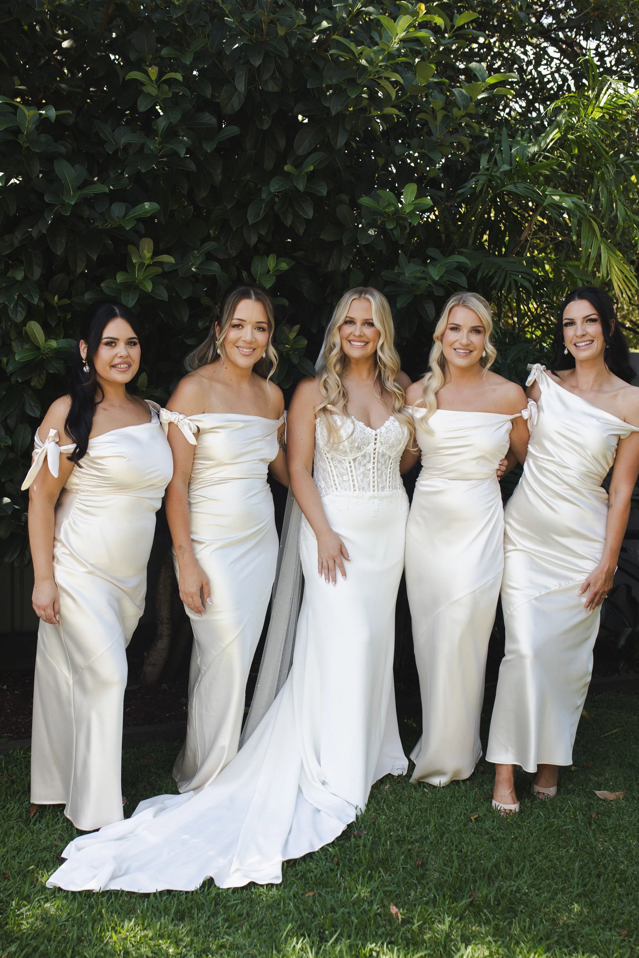 Tom and Alicia were married on the 6th of December at the beautiful Terara Riverside Gardens, celebrating their day surrounded by family friends and their shared faith. The girls wore soft yellow dresses that brought a joyful warmth to the day while the boys wore classic black suits, creating a timeless and elegant contrast.