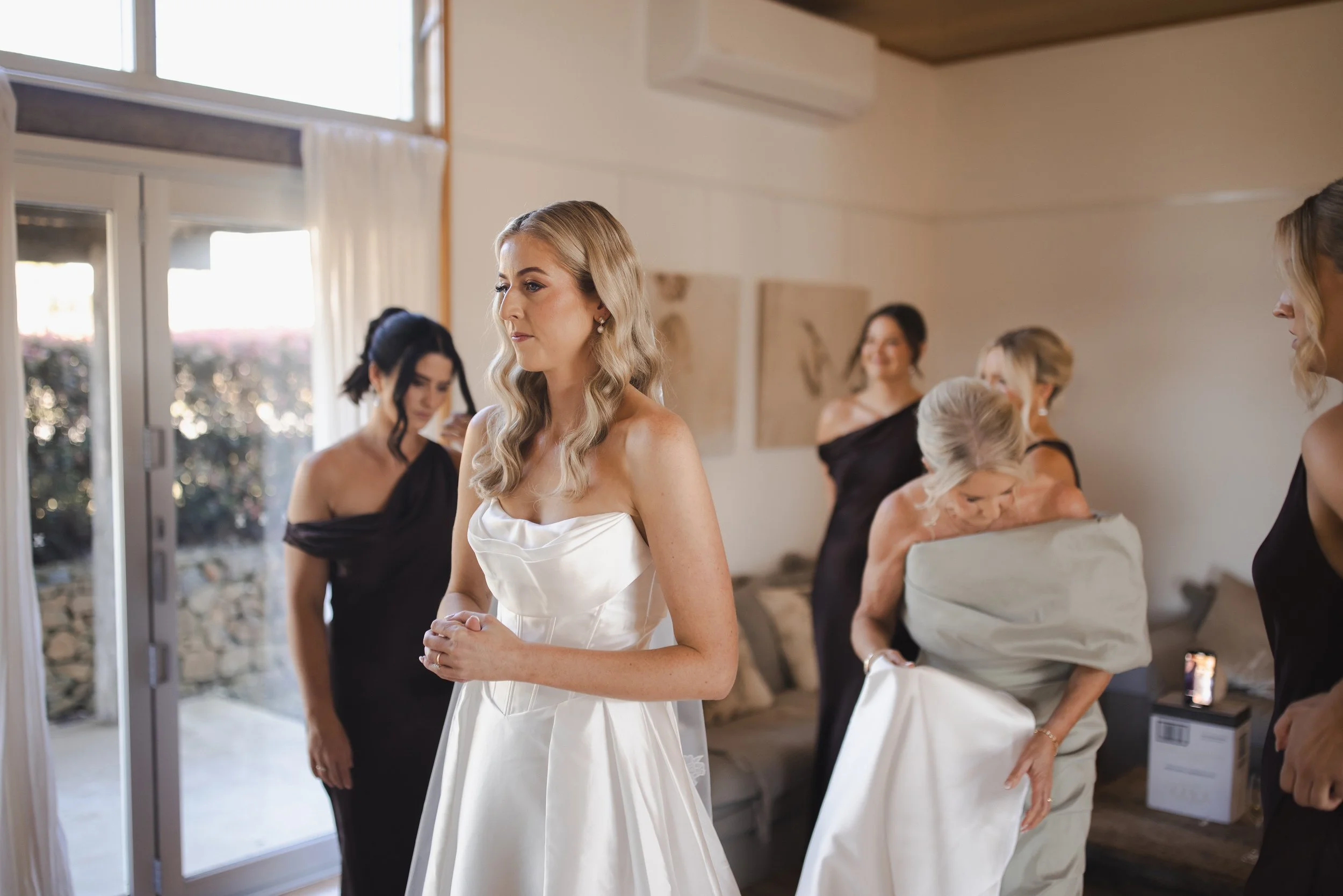 The day began at the country home where everyone got ready under one very photogenic roof. Jasmine and Jeremy shared a quiet moment together on the verandah for their first look, a sweet pause before the celebrations kicked off.