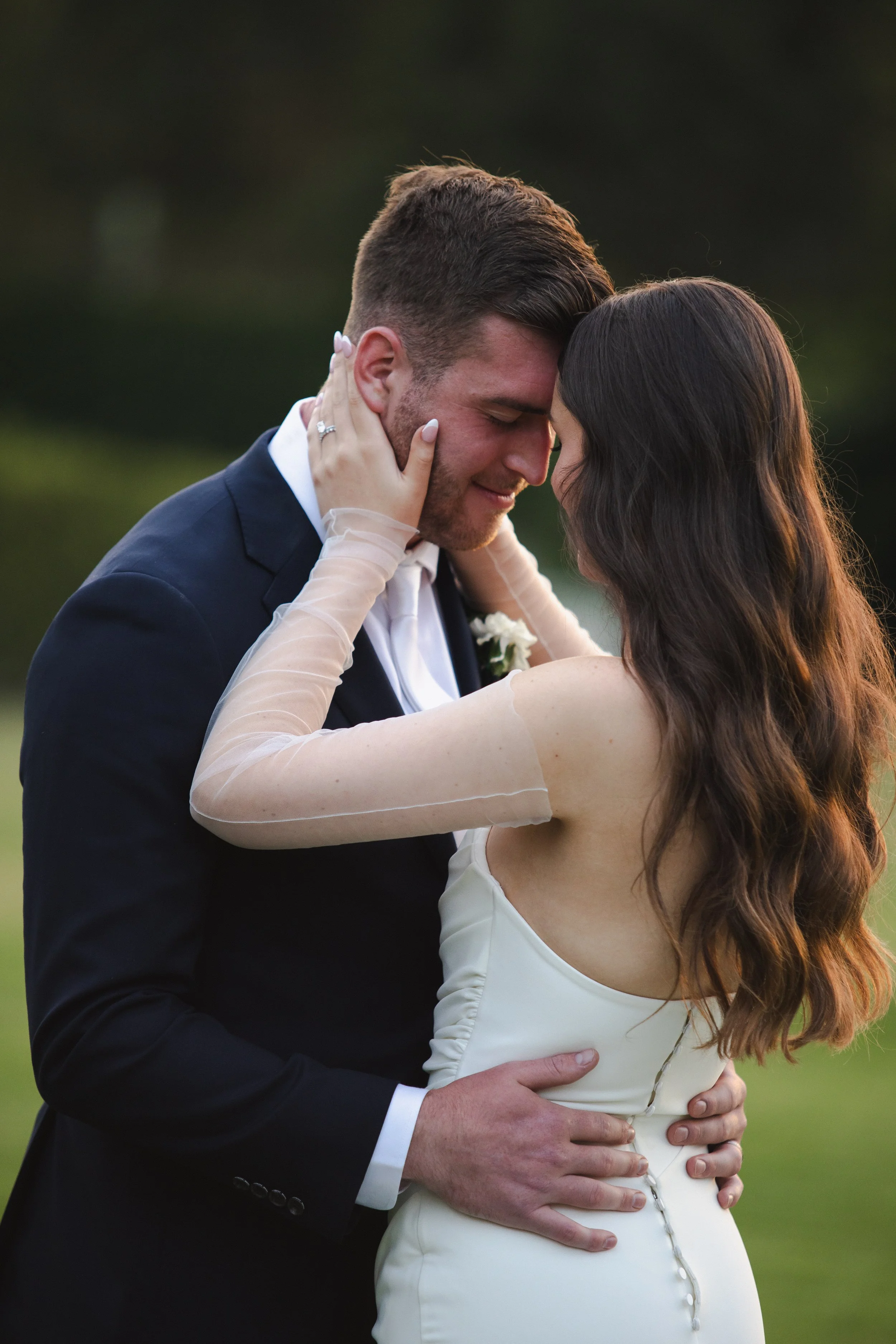 Their ceremony took place outdoors, bathed in warm sunshine, with vibrant sunflowers arranged in floral plinths perfectly framing the couple as they said their vows. The bright blooms added a joyful, summery feel and reflected the relaxed, heartfelt atmosphere of the day. After the ceremony, Lara and Arthur enjoyed afternoon portraits around the property, making the most of Greyleigh’s rolling landscape and golden light.