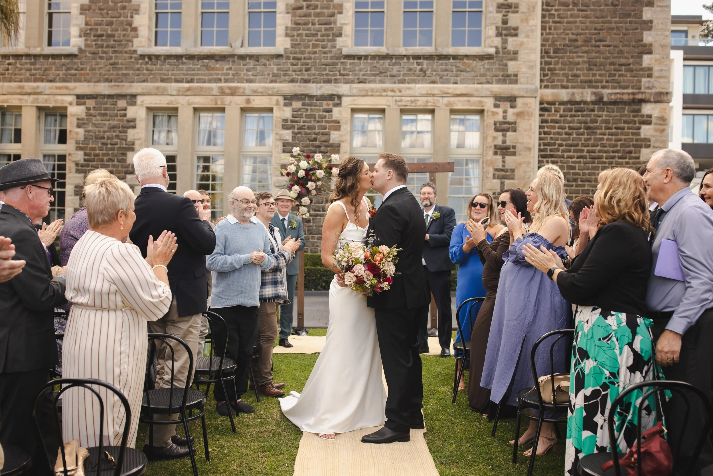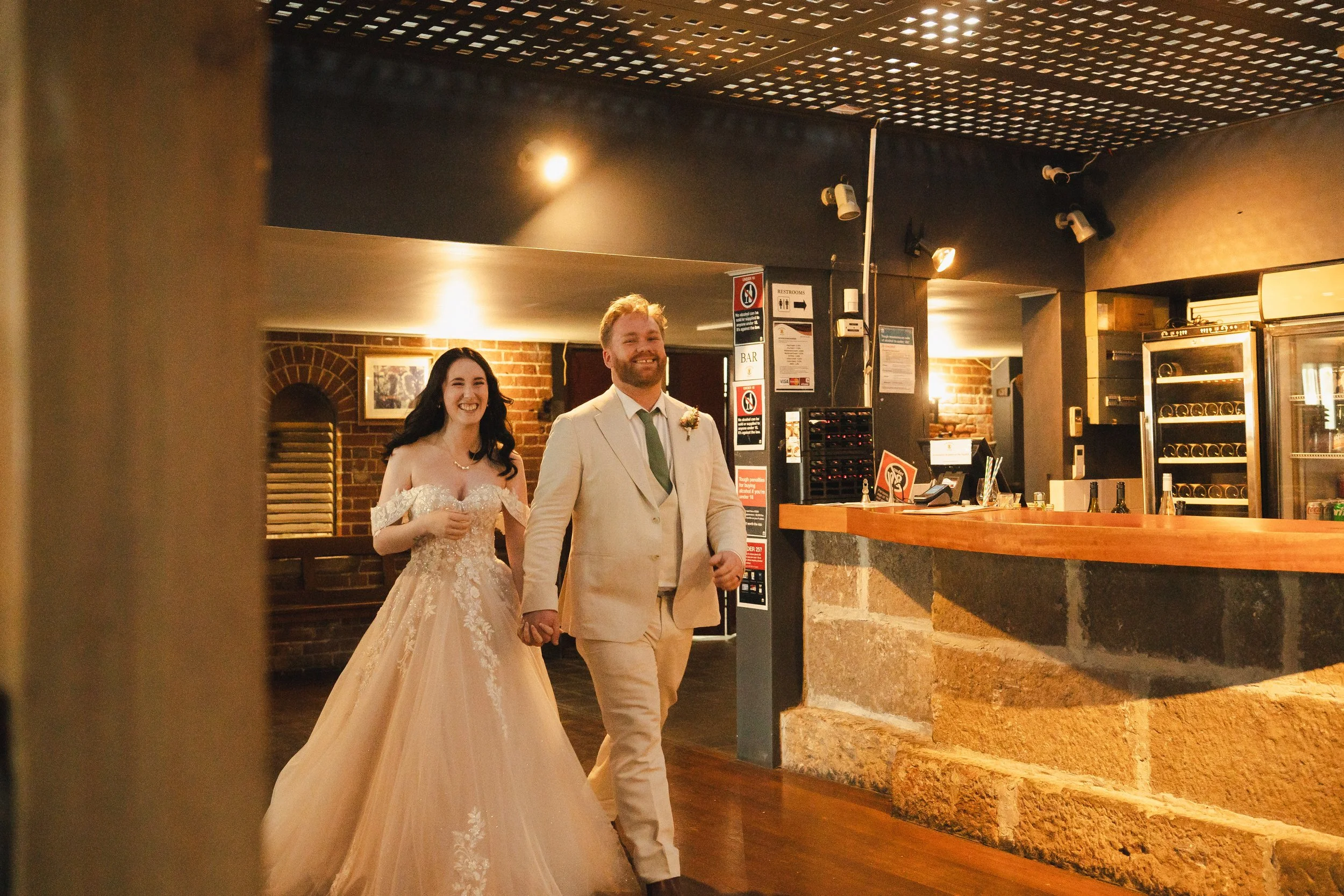 The ceremony unfolded in the Garden Courtyard, where the couple said “I do” beneath a romantic arbour, framed by the heritage cobblestone building and sweeping harbour views. It was an intimate and heartfelt moment, surrounded by loved ones and the soft sounds of the sea.