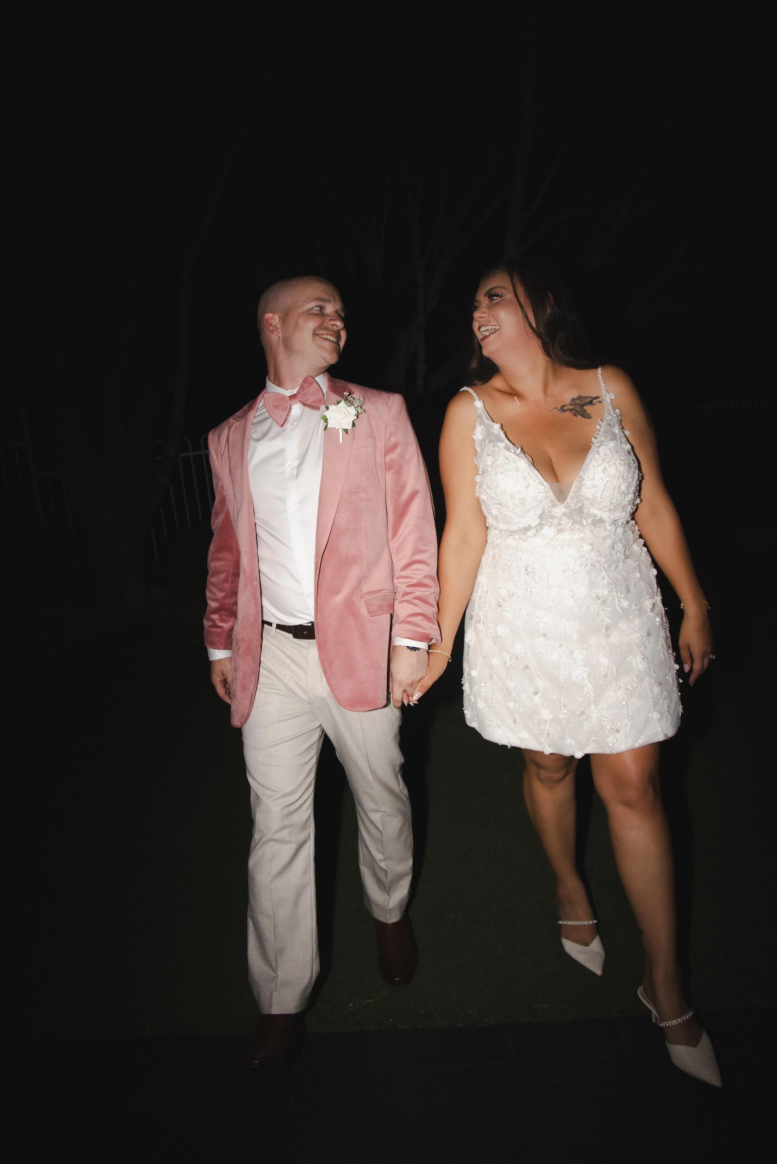 Fittingly, the day ended where it began, in the twinkling tunnel of fairy lights. Jacob and Emma slipped away for night portraits, wrapped up in the magic of their first evening as husband and wife.