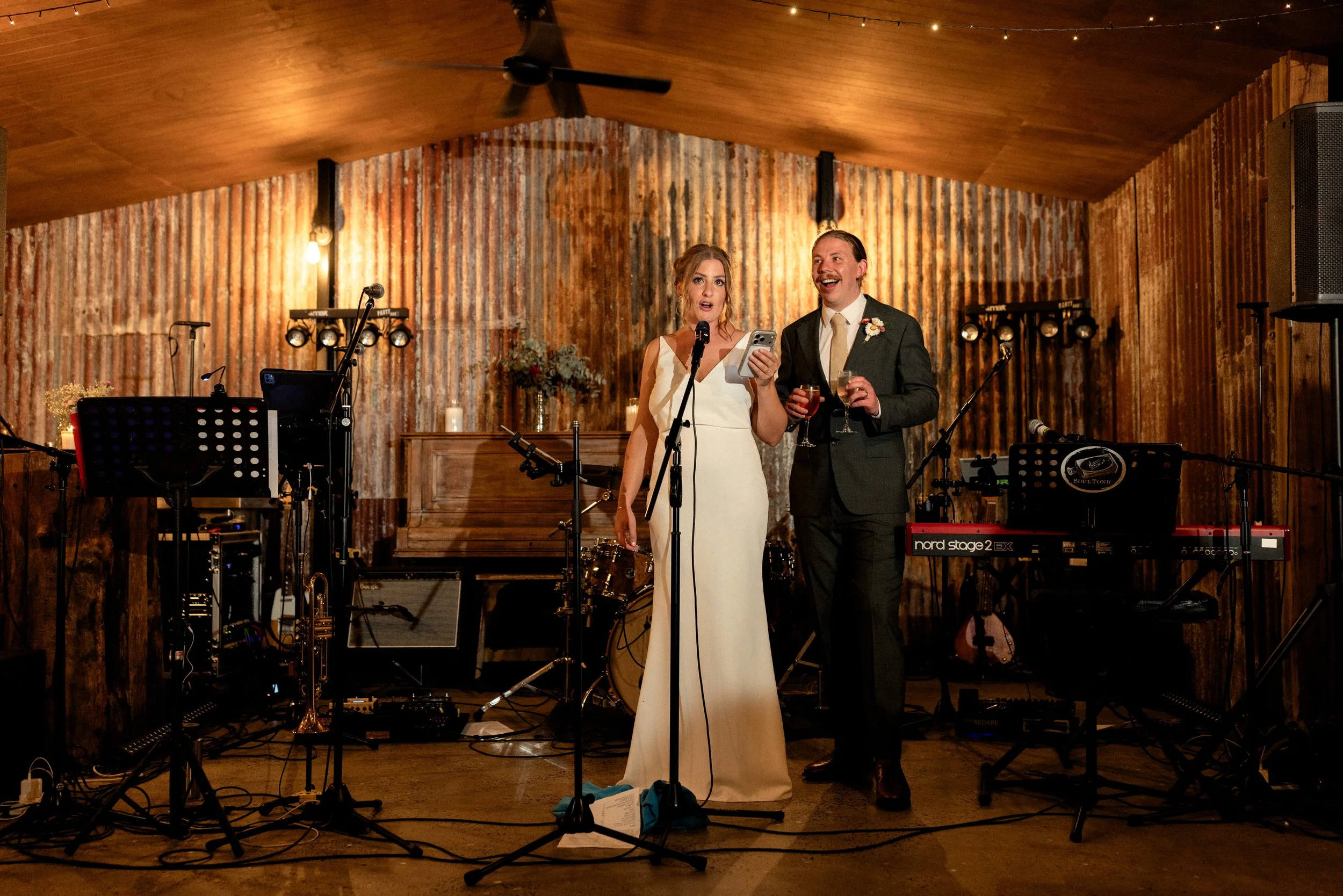 Following the ceremony, guests enjoyed cocktail hour while Keiran and Amber slipped away for portraits, making the most of the soft light and country surrounds. The celebrations then continued with a sit down reception in the wedding hall, filled with laughter, good food, and plenty of memorable moments.
