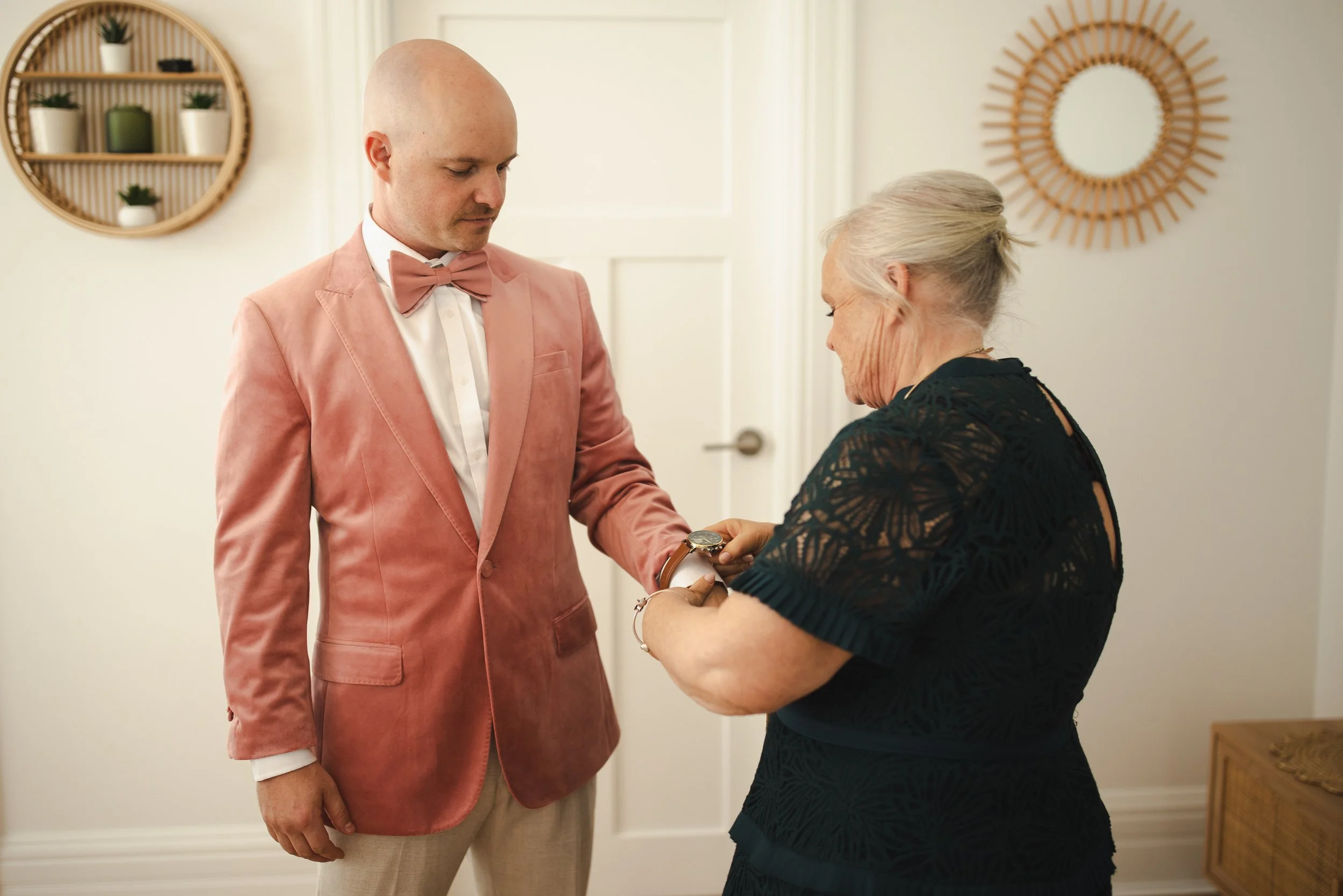 The morning began with Robbie getting ready in Thirroul, surrounded by family and excitement. Christine prepared at the beautiful Headlands Hotel in Austinmer, where the calming ocean views set the perfect tone for the day ahead.