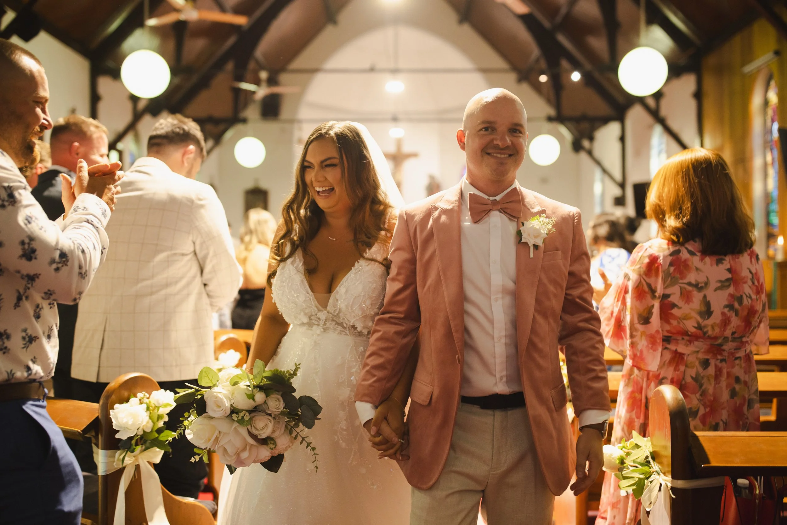 Their ceremony took place at the Parish of St Michael in Thirroul, a charming church that offered a warm and intimate setting. Christine made a grand entrance, arriving on a red carpet in a limousine, creating a moment that felt straight out of a fairy tale.