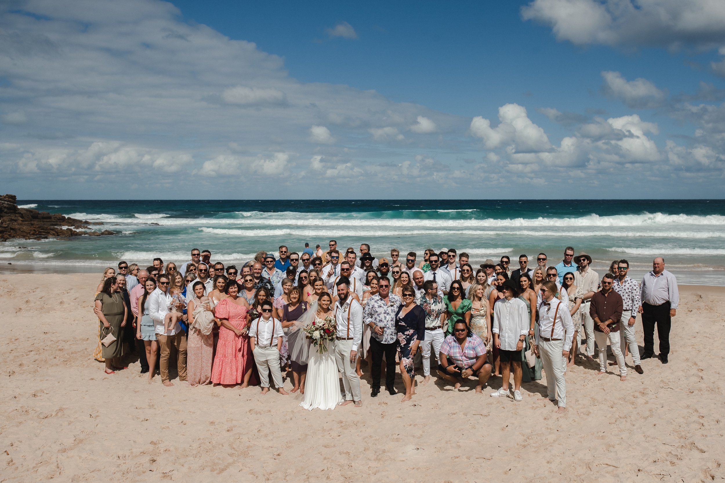 If you know my wedding photography, you know I love beach weddings. Rhys and Rachel tied the knot at Narrawallee on the 5th of February 2022 in a heartfelt ceremony with their closest friends and family. Once married they set off with their big bridal party for some afternoon portraits. This bunch was hilarious to hang out with and made these photos such a fun part of the day. As the sun began to set they made their way back to Mollymook Golf Club for a reception with uninterrupted views of the beautiful Mollymook Beach, an idyllic events space right on the shoreline. The highlight of the day was watching the bride and groom have their first dance, which they had perfected thanks to months of dance lessons.
