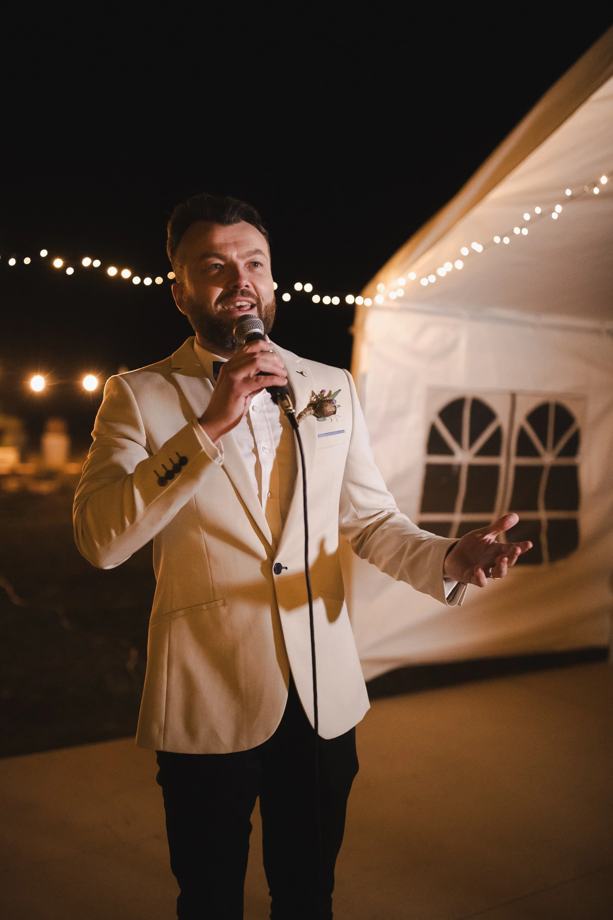 They kicked the night off in the marquee with a round of toasts from their loved ones. As the sun began to set they cut the cake and made their way onto the dance floor for the bridal waltz.