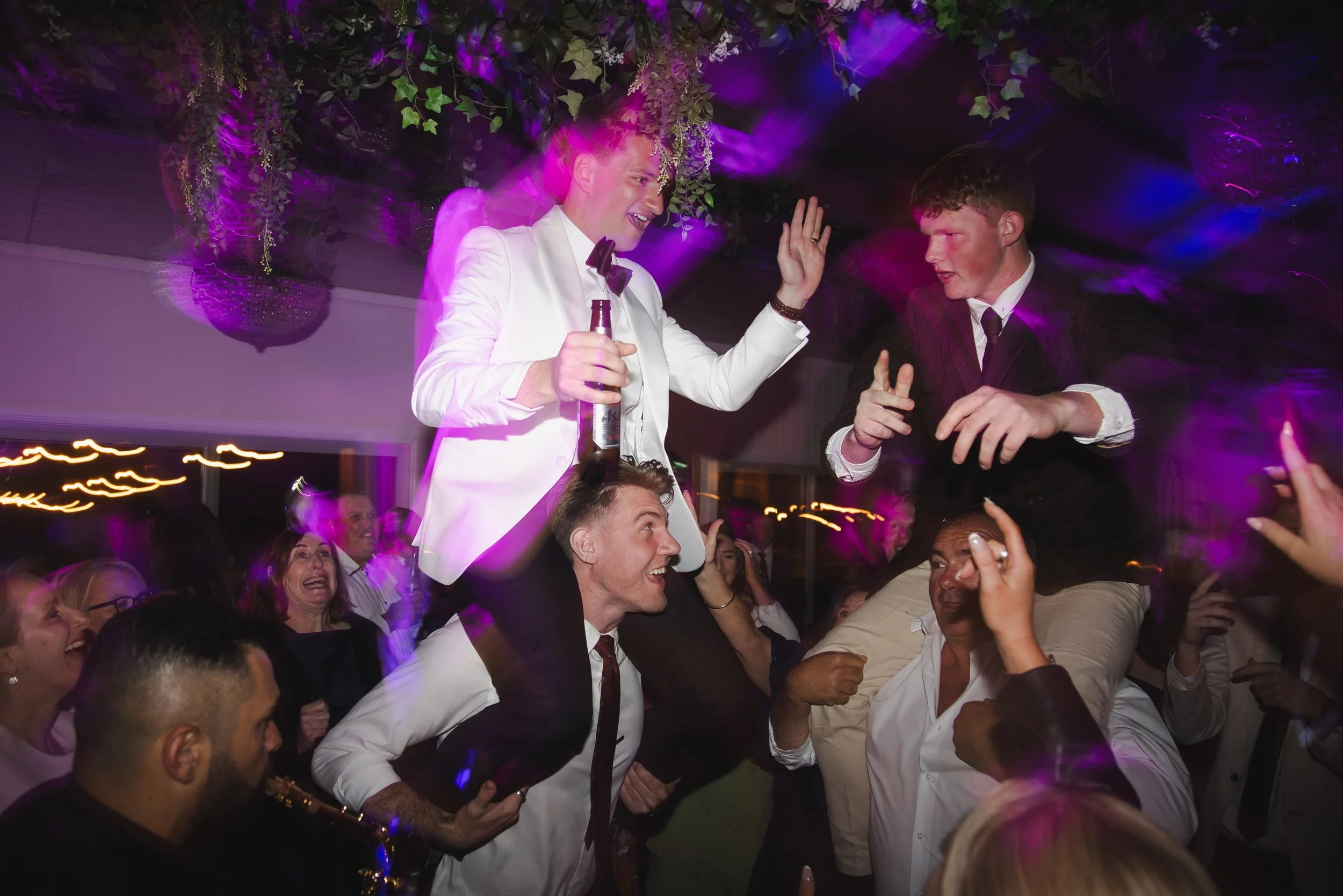 The wedding morning kicked off with a festival-inspired breakfast in the glamping area. Hayley and her bridesmaids prepared for the big day in the stunning Lakehouse, surrounded by laughter, champagne, and a beautiful first look. Meanwhile, Dylan and his groomsmen got ready in the cozy Hen House, sharing pre-ceremony drinks to calm their nerves.