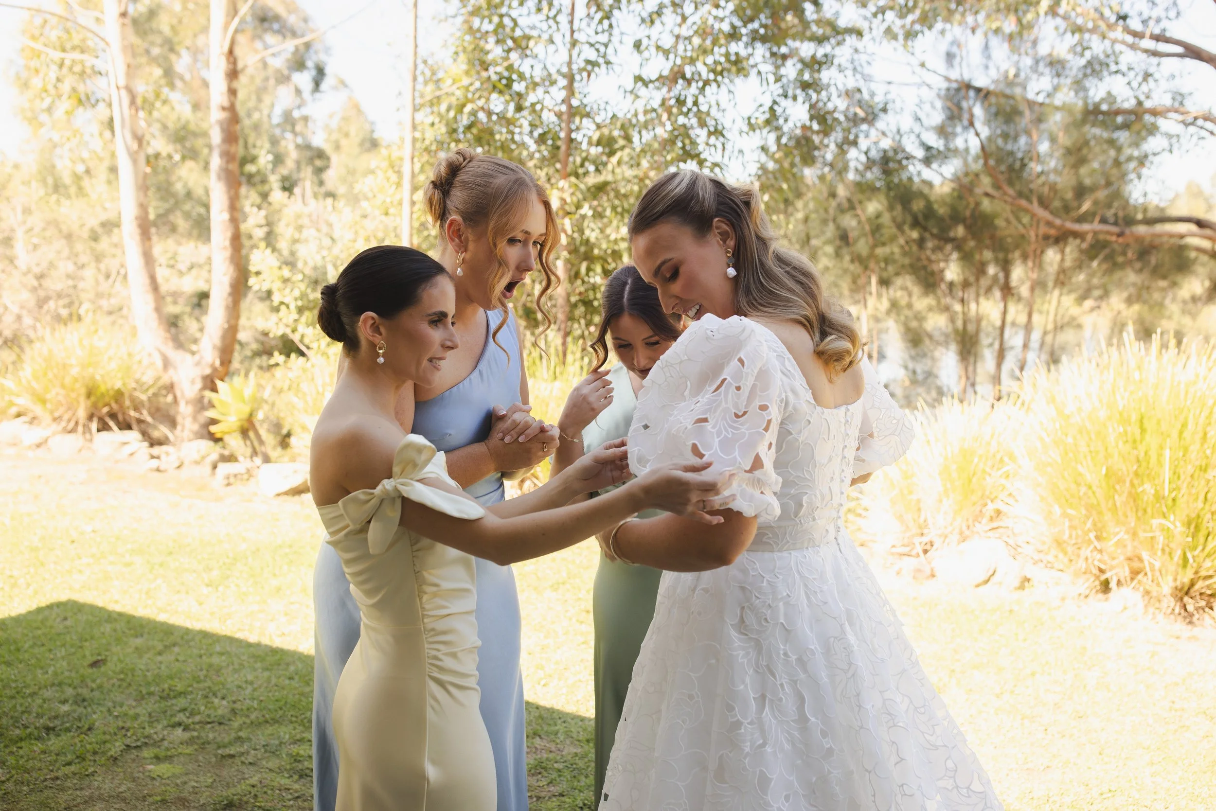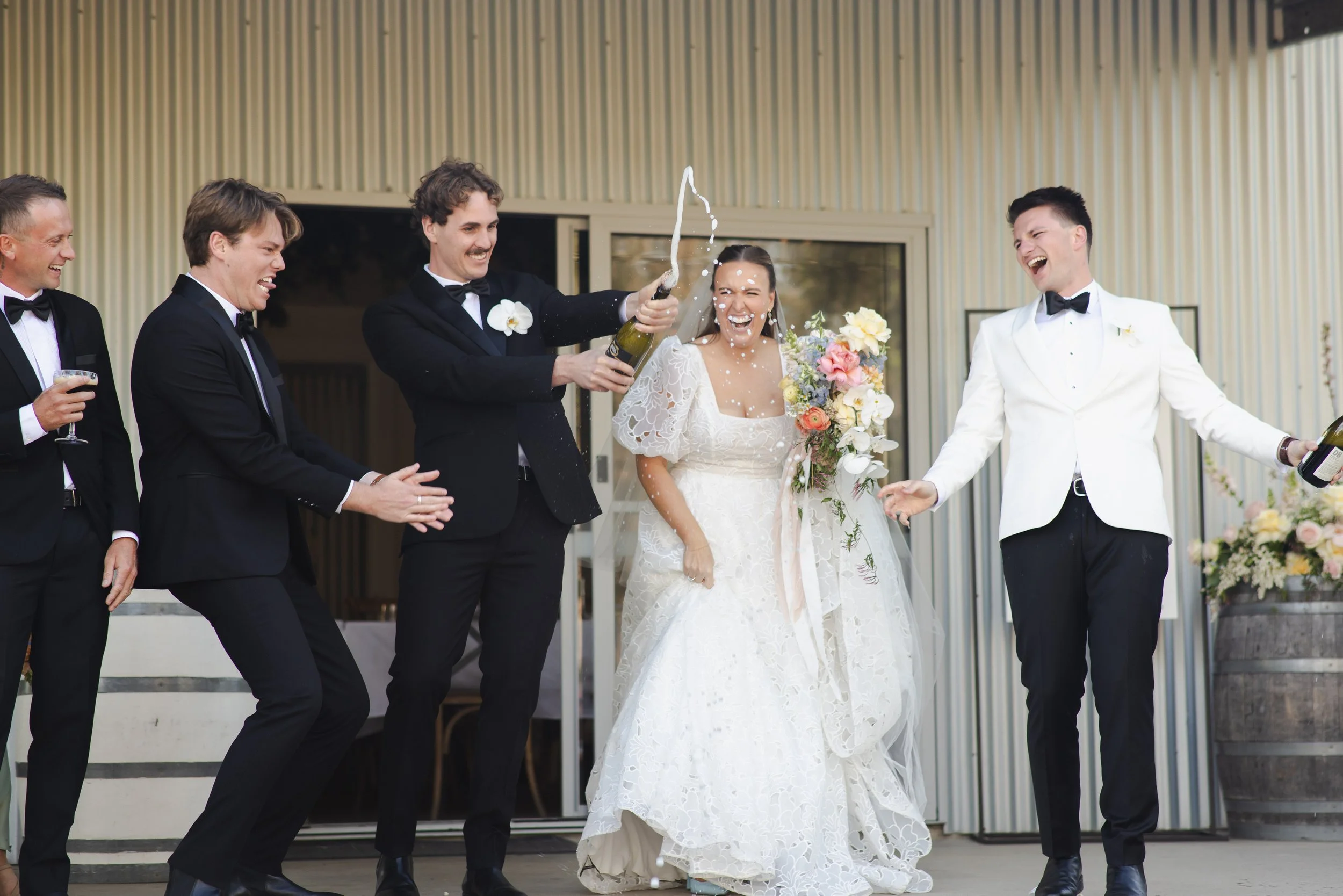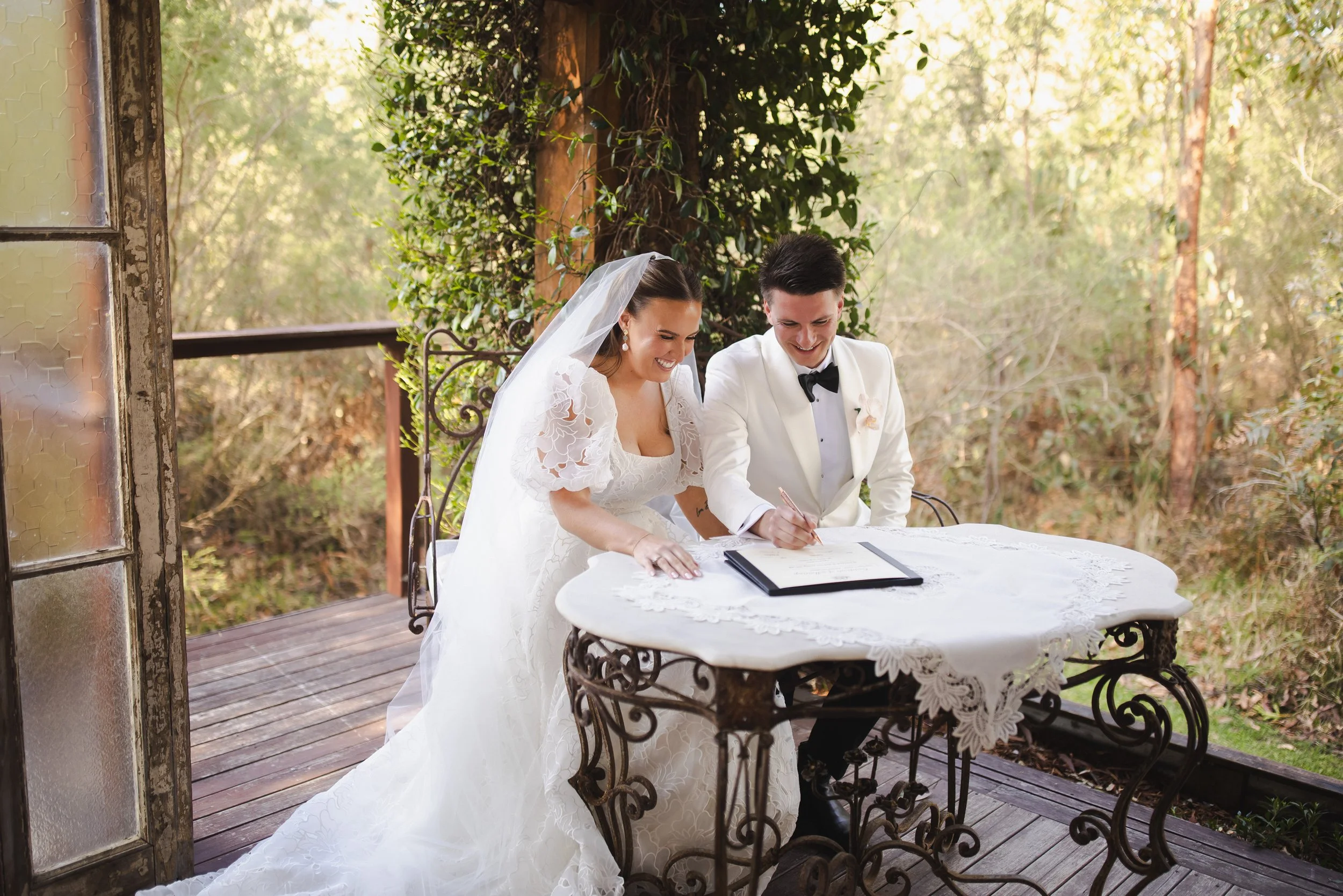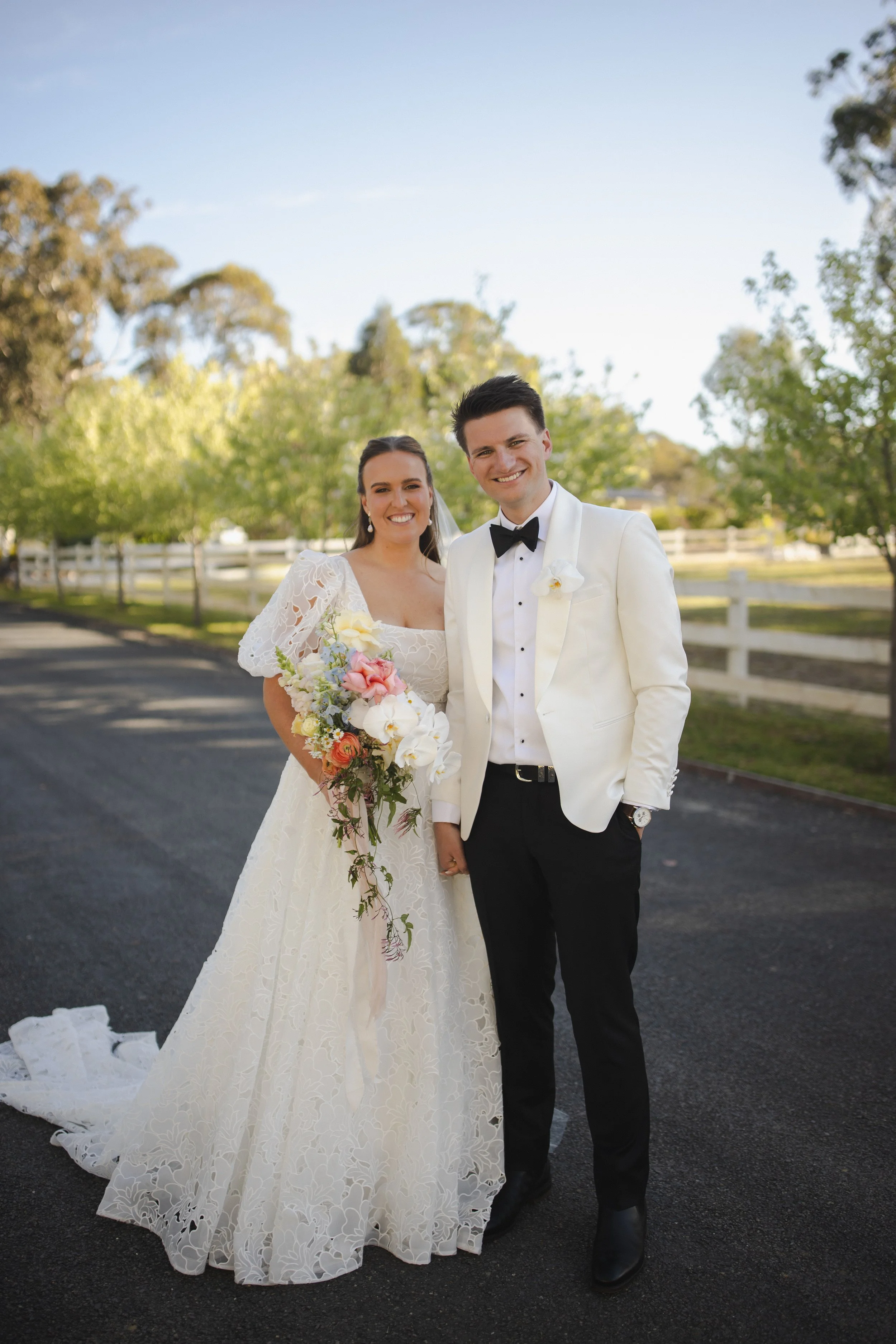 On the 23rd of September, Dylan and Hayley tied the knot at the enchanting Woods Farm, a luxury country retreat nestled on 40 acres just minutes from the sparkling waters of Jervis Bay. This unique venue offered the perfect blend of rustic charm and modern comfort, allowing all their family and friends to stay together on site. With eight beautifully styled country cabins and lots of cozy glamping tents, everyone could fully immerse themselves in the celebration.