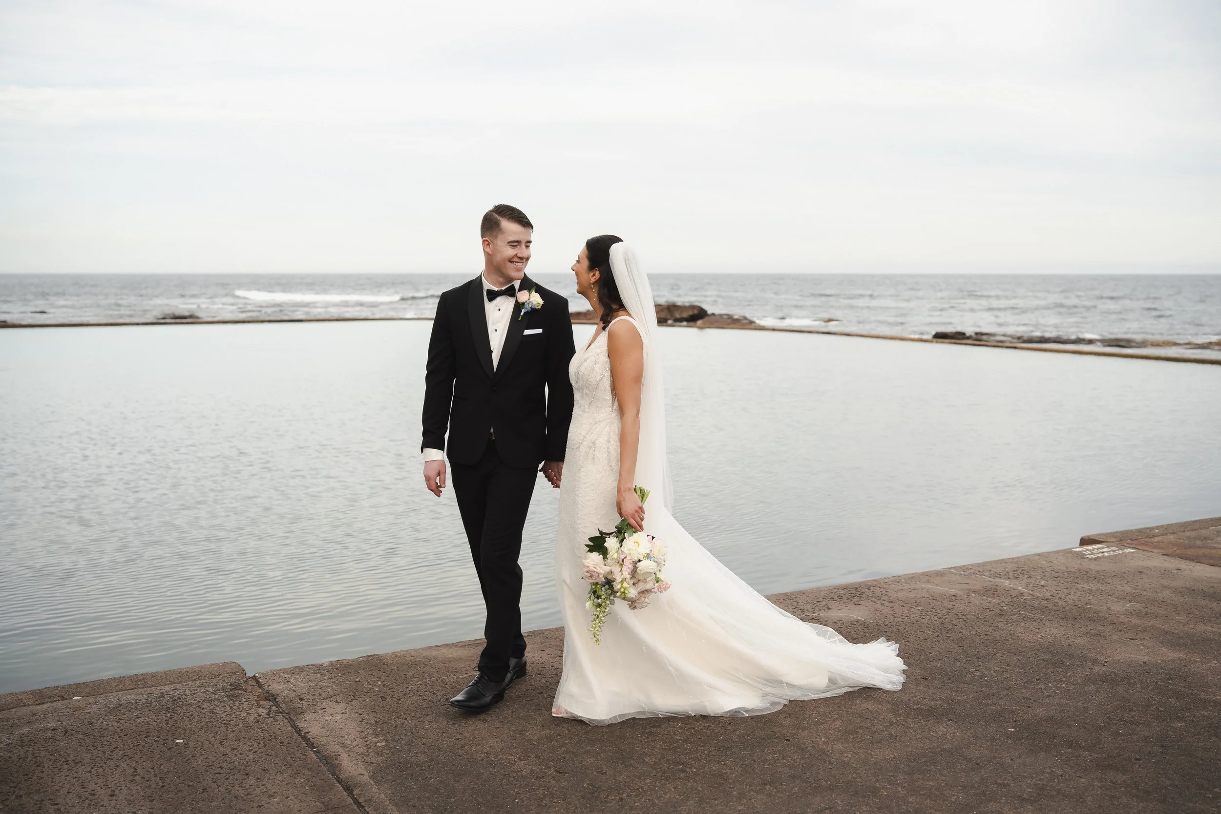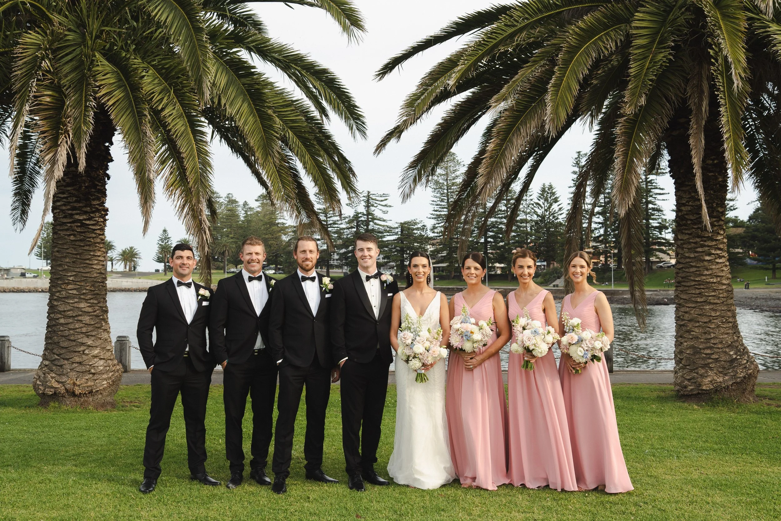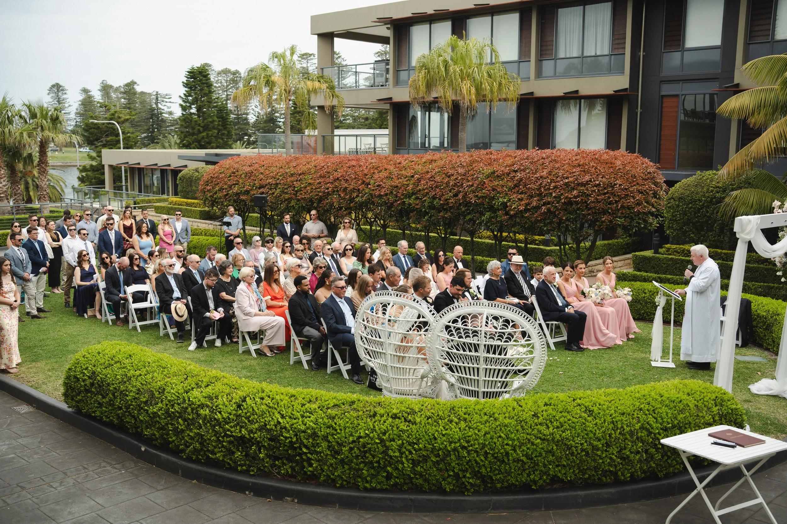 The ceremony took place on a lush lawn overlooking Kiama Harbour, framed by a charming cobblestone backdrop and gardens that looked like they were straight out of a postcard. The sun made a timely appearance, just in time for the "I dos."
