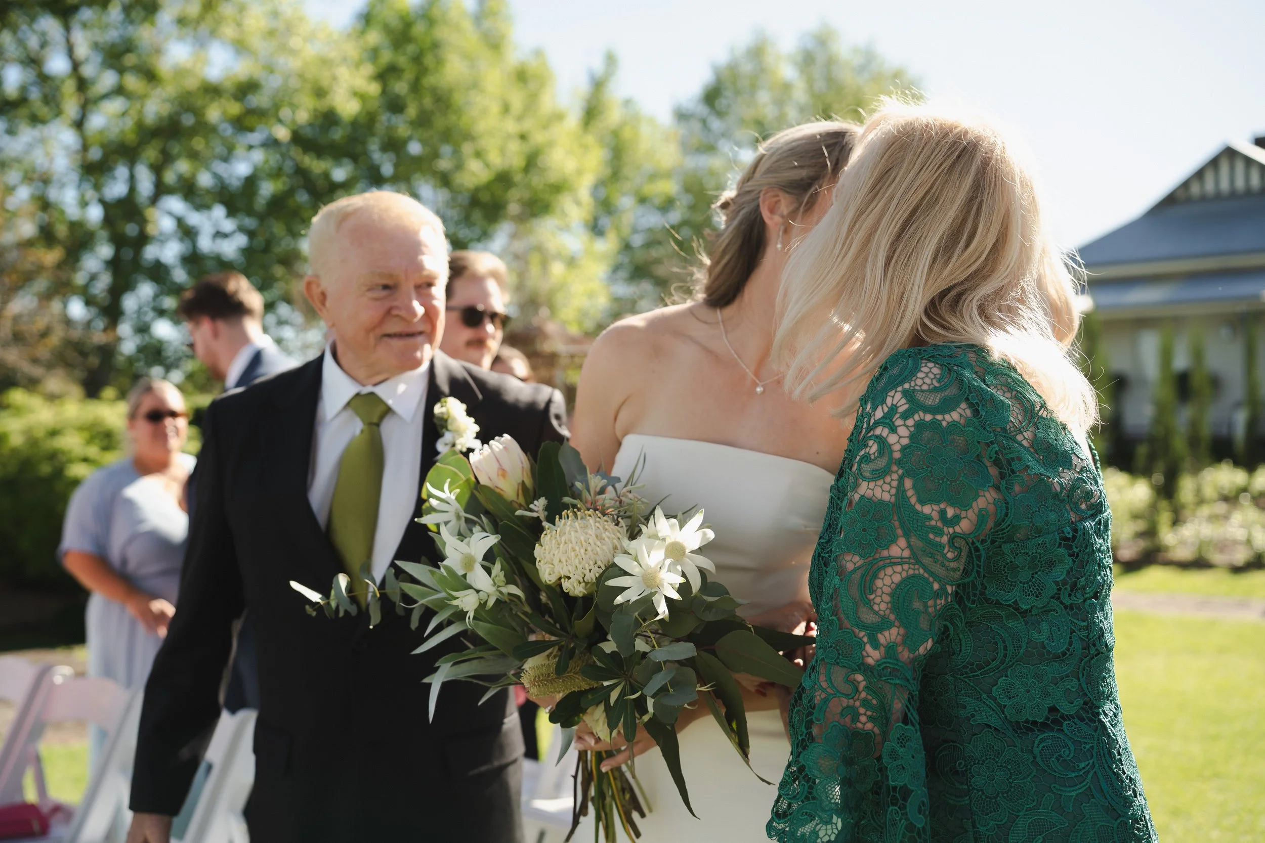 The ceremony itself took place outdoors with the rolling rural landscape of Berry as their backdrop. Surrounded by loved ones, they said their vows with the breeze in their hair and joy in the air.