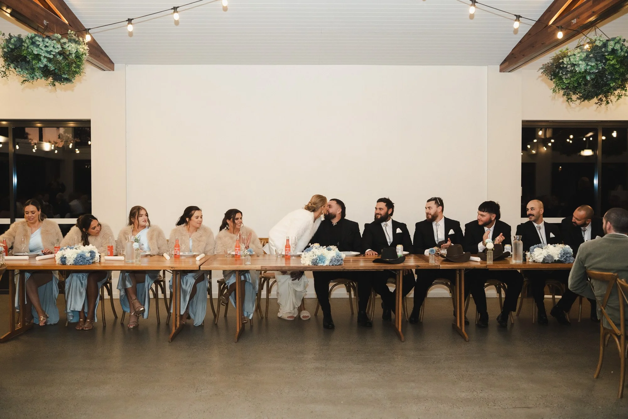 Brooke’s vision for “something blue” was perfectly woven throughout the day – from the bridesmaids' flowing blue dresses, to soft blue florals, and even matching blue pyjamas that added a playful, personal touch to the morning of the wedding.