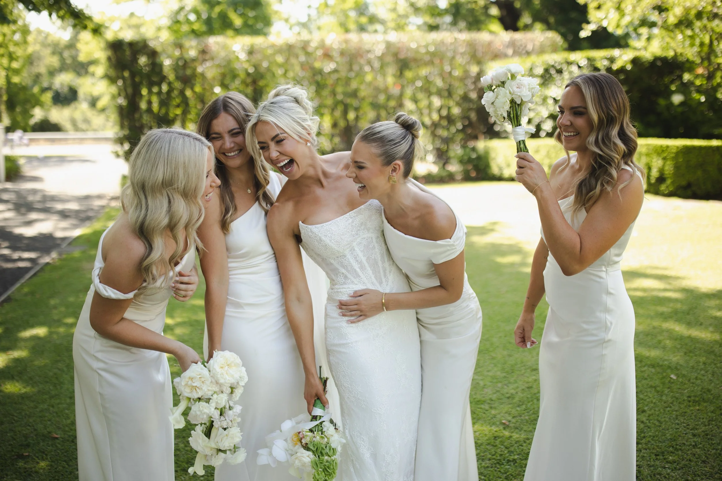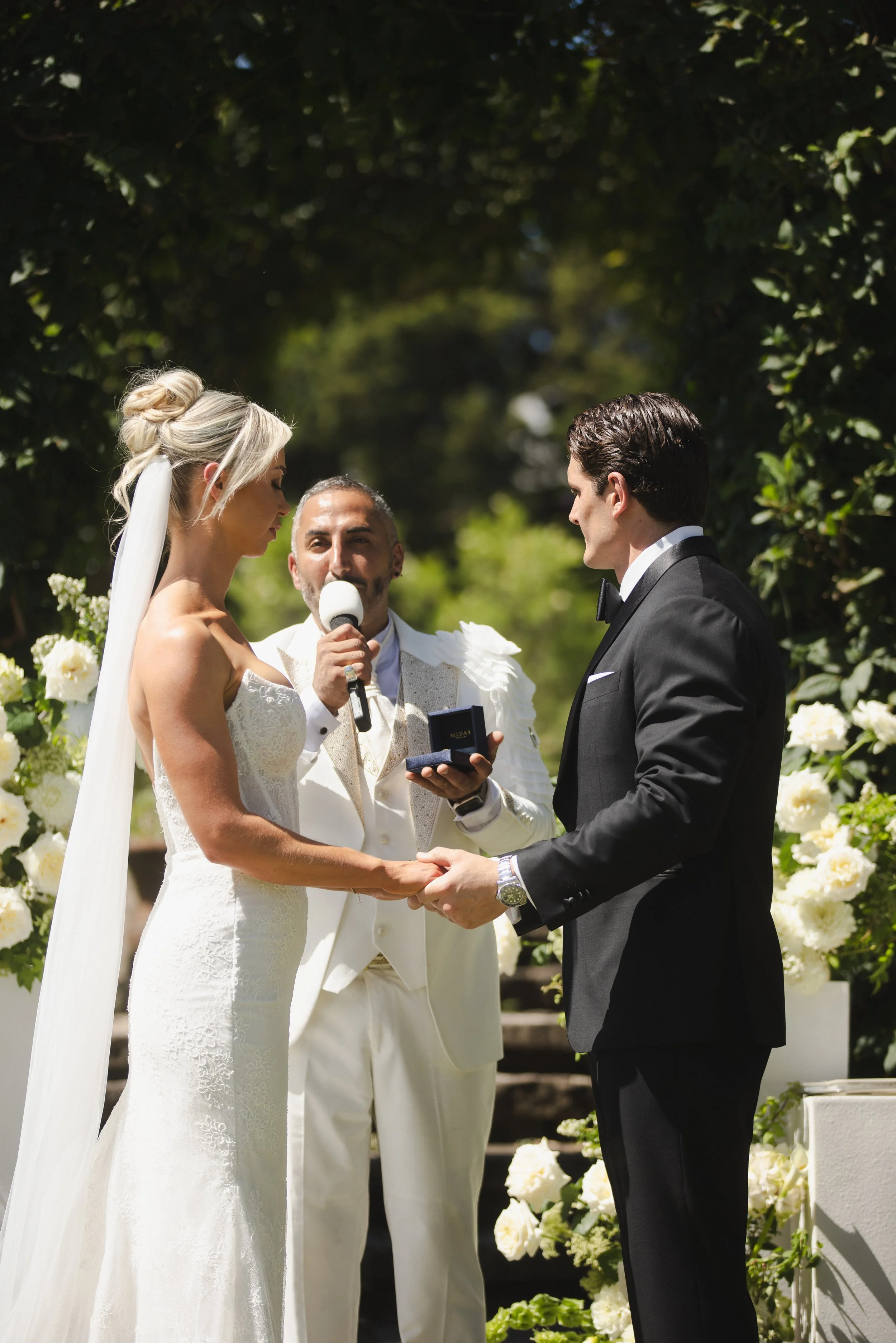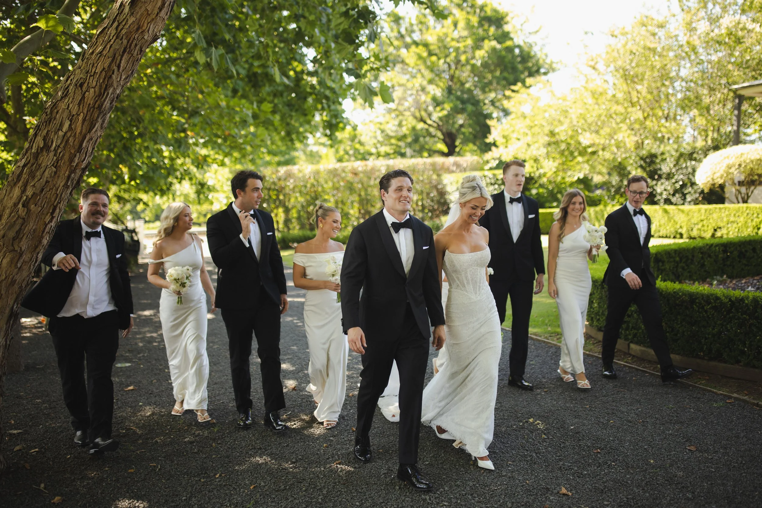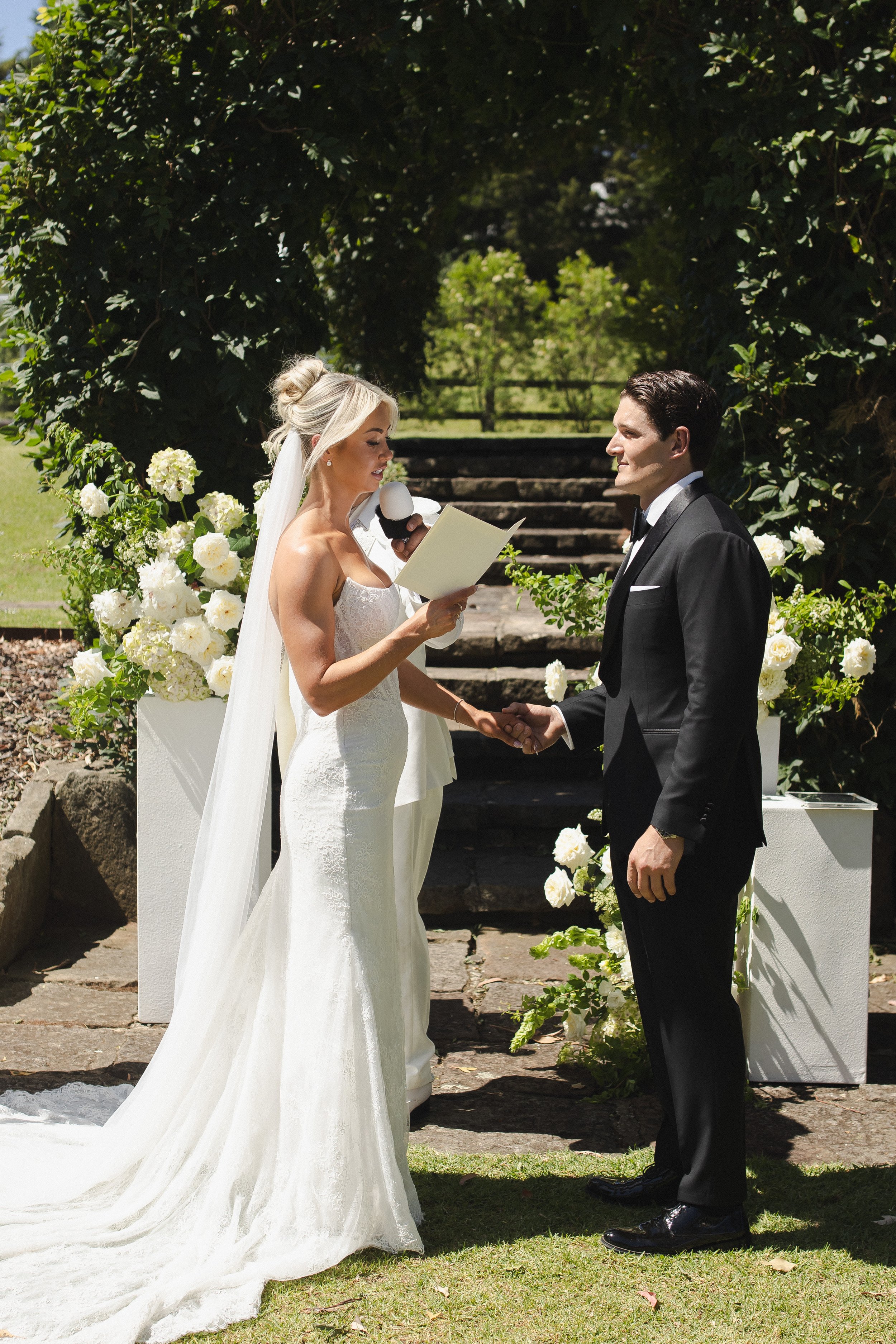 Rachel got ready in the Dairy on the property, sharing a special first look with her dad before heading to the ceremony. They were married outside the Homestead, surrounded by the gardens and all their favourite people.