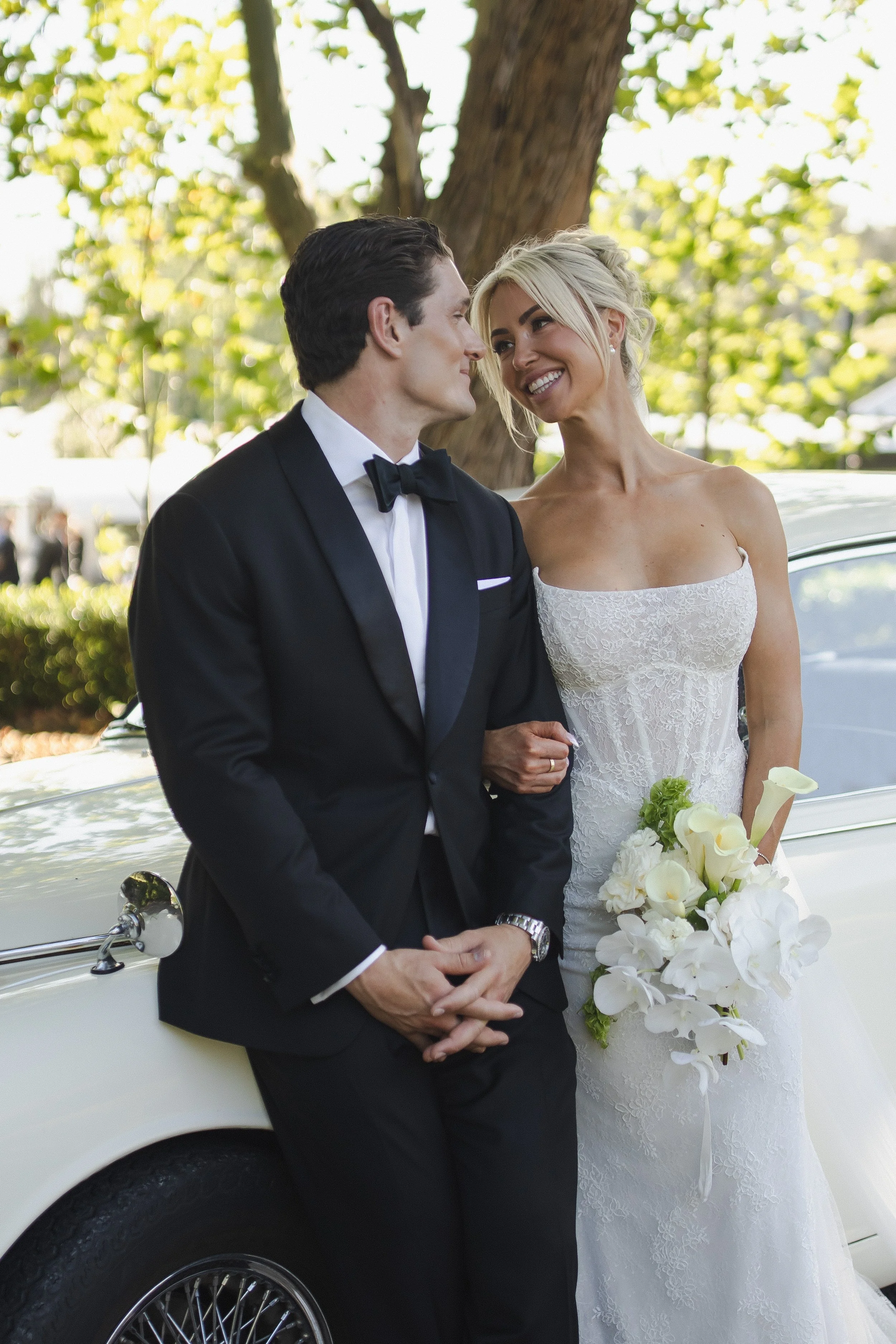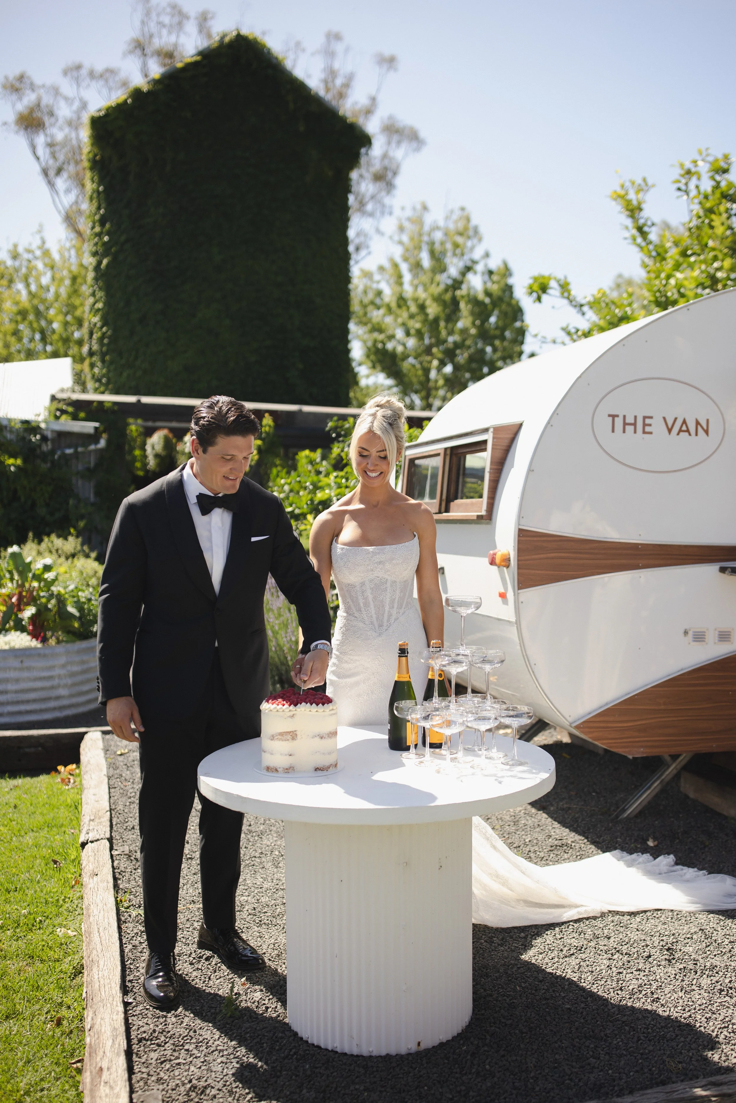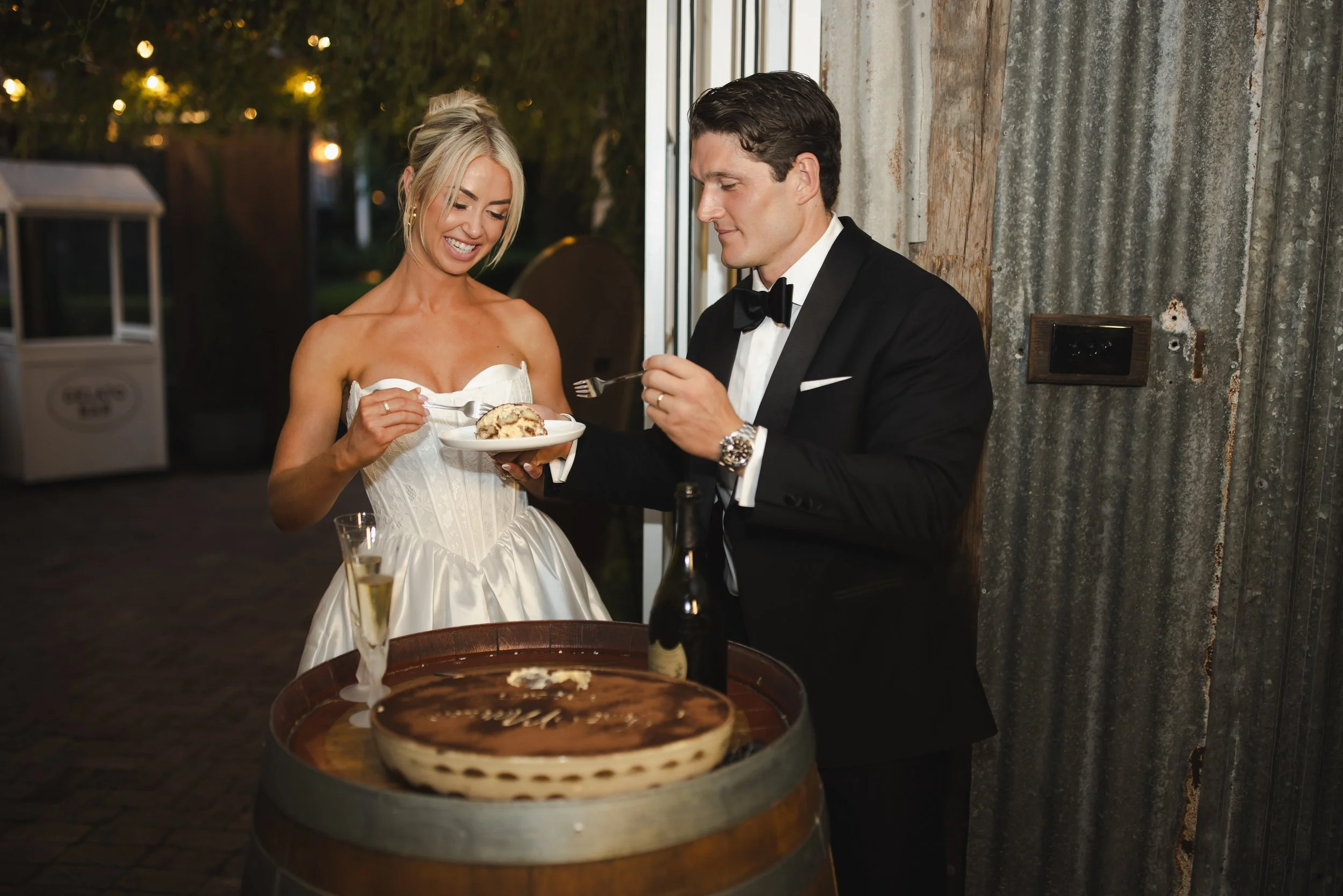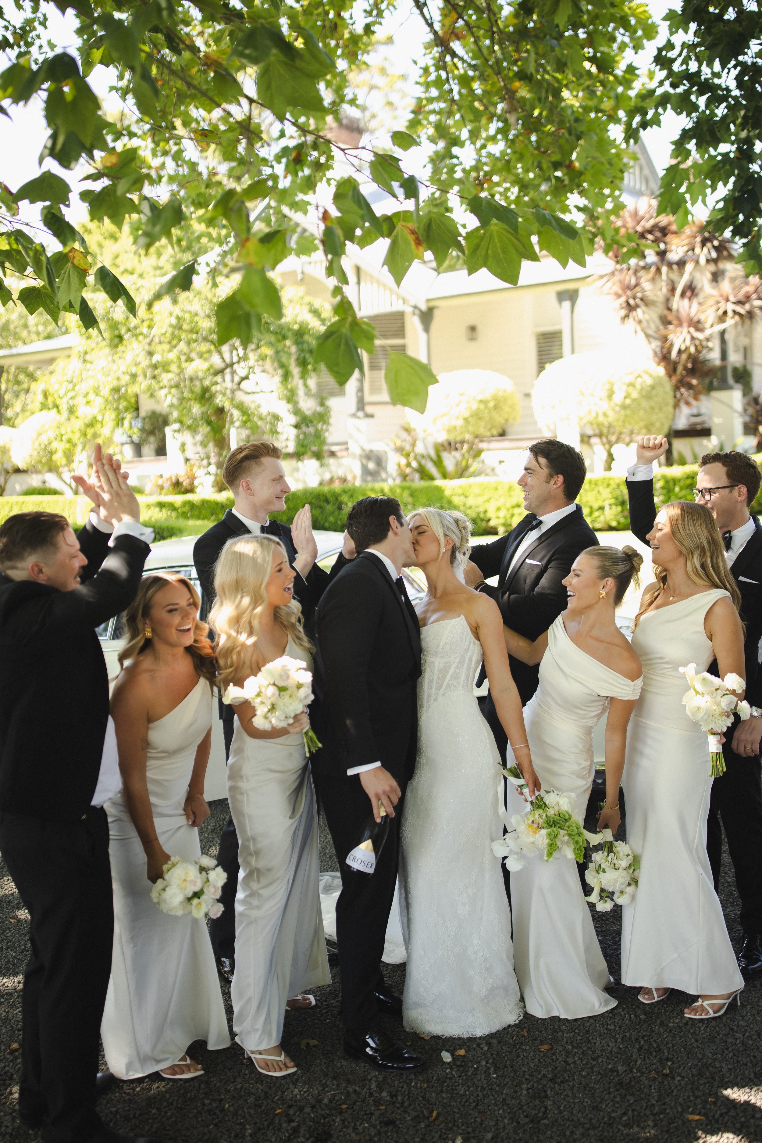 Rachel got ready in the Dairy on the property, sharing a special first look with her dad before heading to the ceremony. They were married outside the Homestead, surrounded by the gardens and all their favourite people.