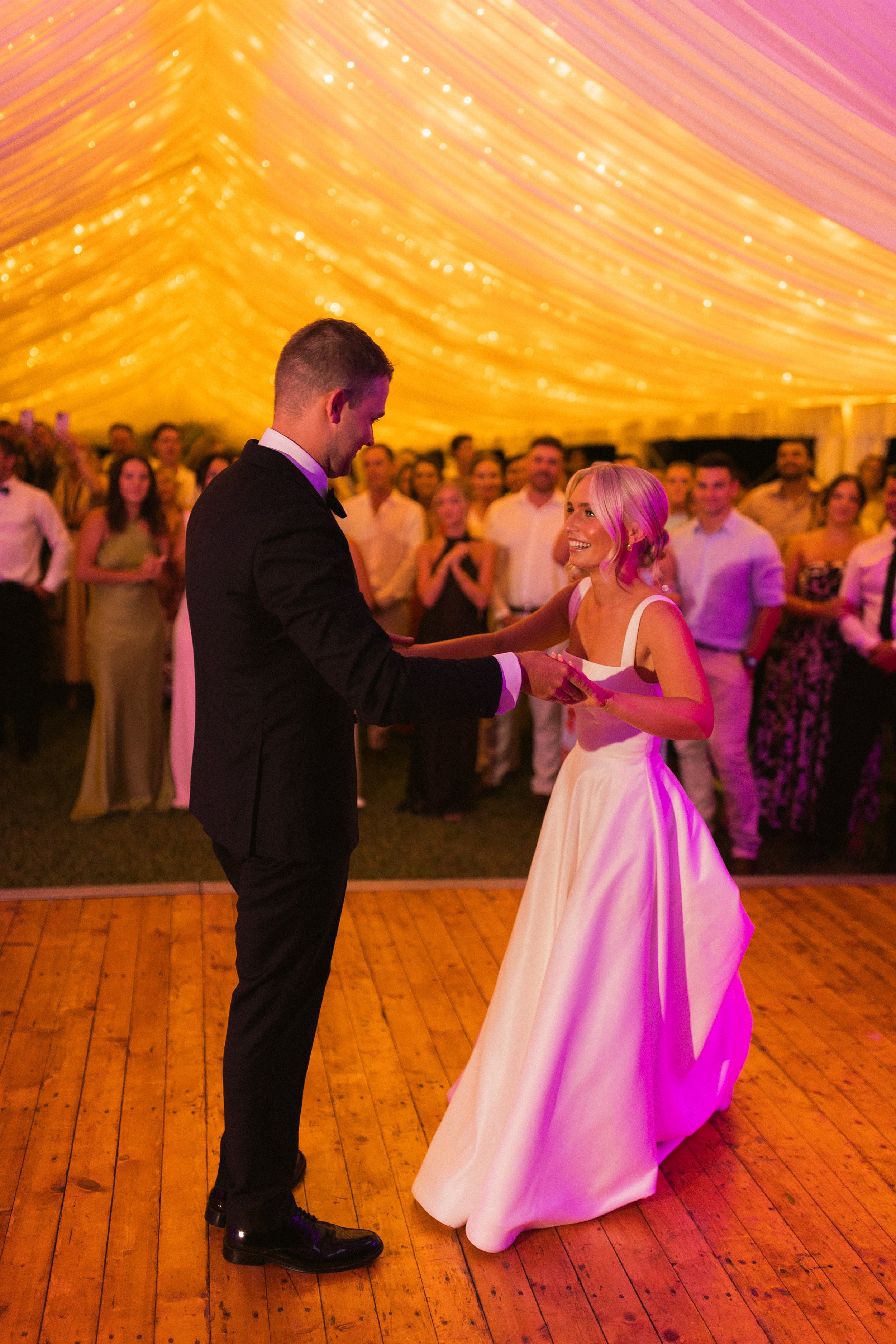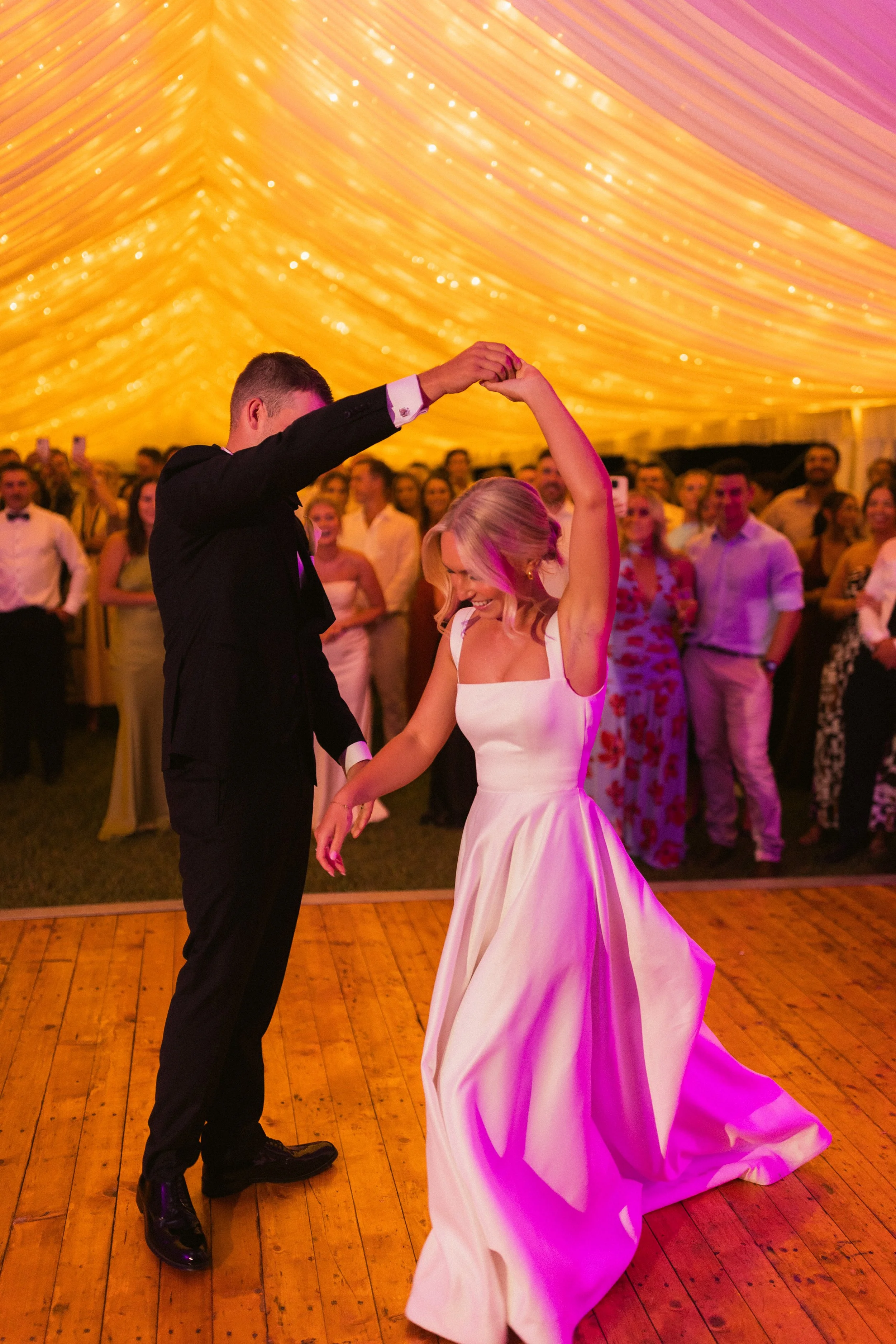 The reception was a formal sit down affair, elegant and warm, with thoughtful styling that reflected Alec and Evelyn’s classic taste. Speeches were heartfelt, the atmosphere was filled with laughter, and the love in the room was undeniable. As the evening unfolded under the marquee lights, it was clear this was more than just a wedding day it was the beginning of a wonderful new chapter, celebrated in the most meaningful way.