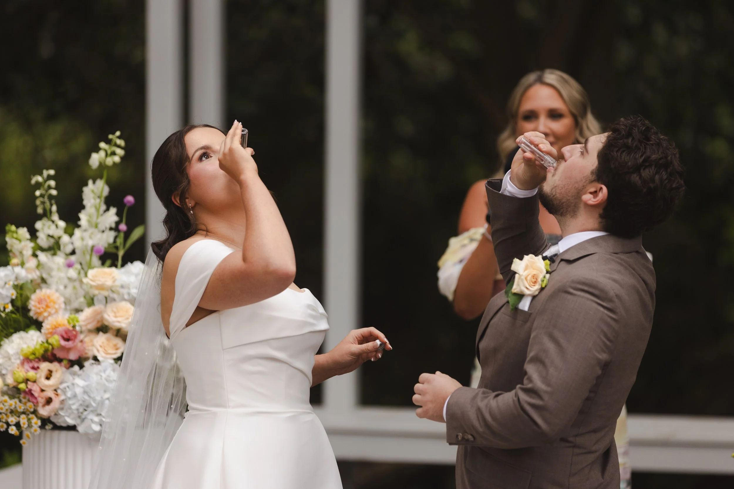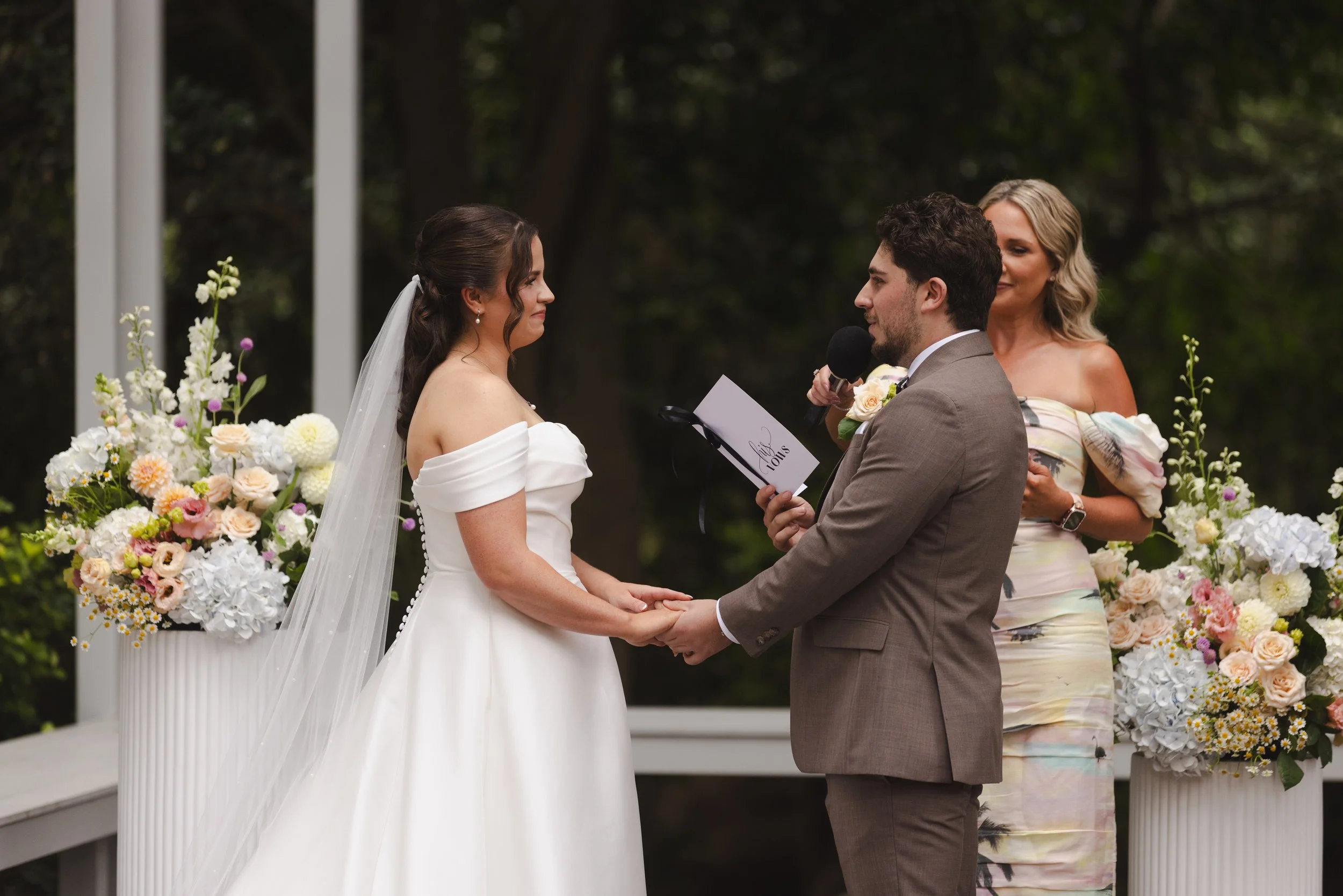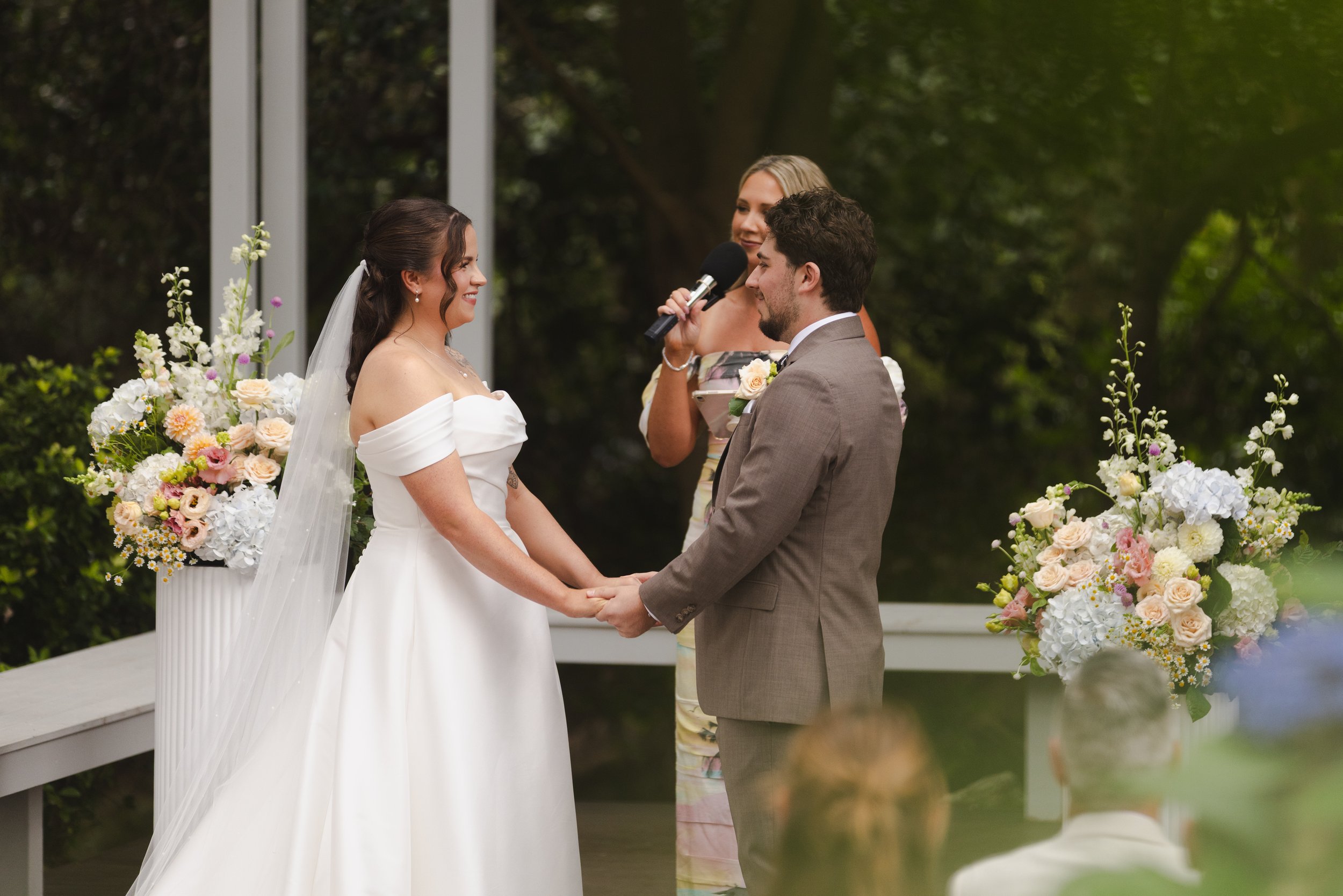Their ceremony took place in the charming garden chapel, where family and friends gathered to watch them exchange vows in a heartfelt moment together. After the ceremony, guests made their way to the courtyard for cocktail hour, enjoying drinks, conversation, and the warm summer afternoon.