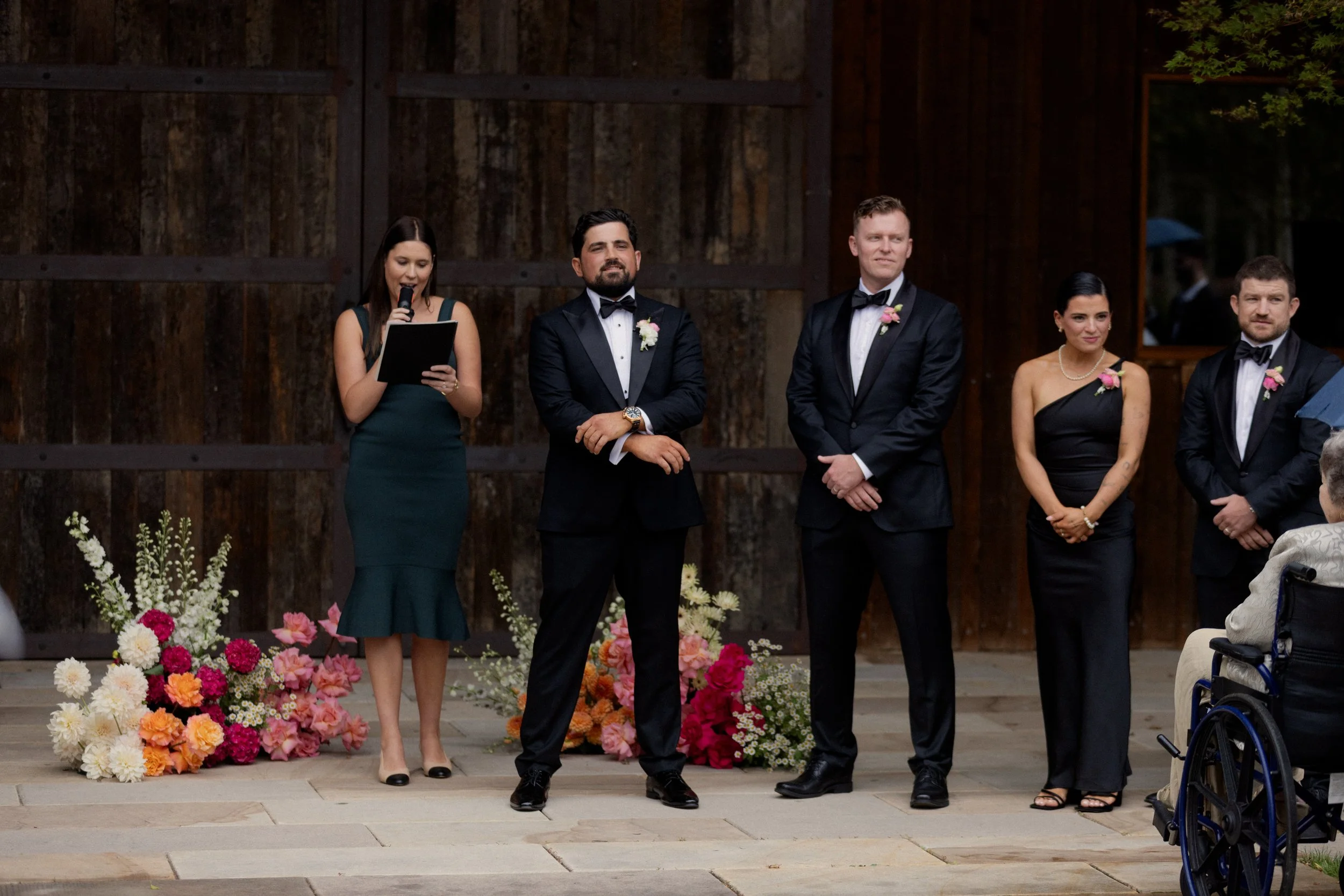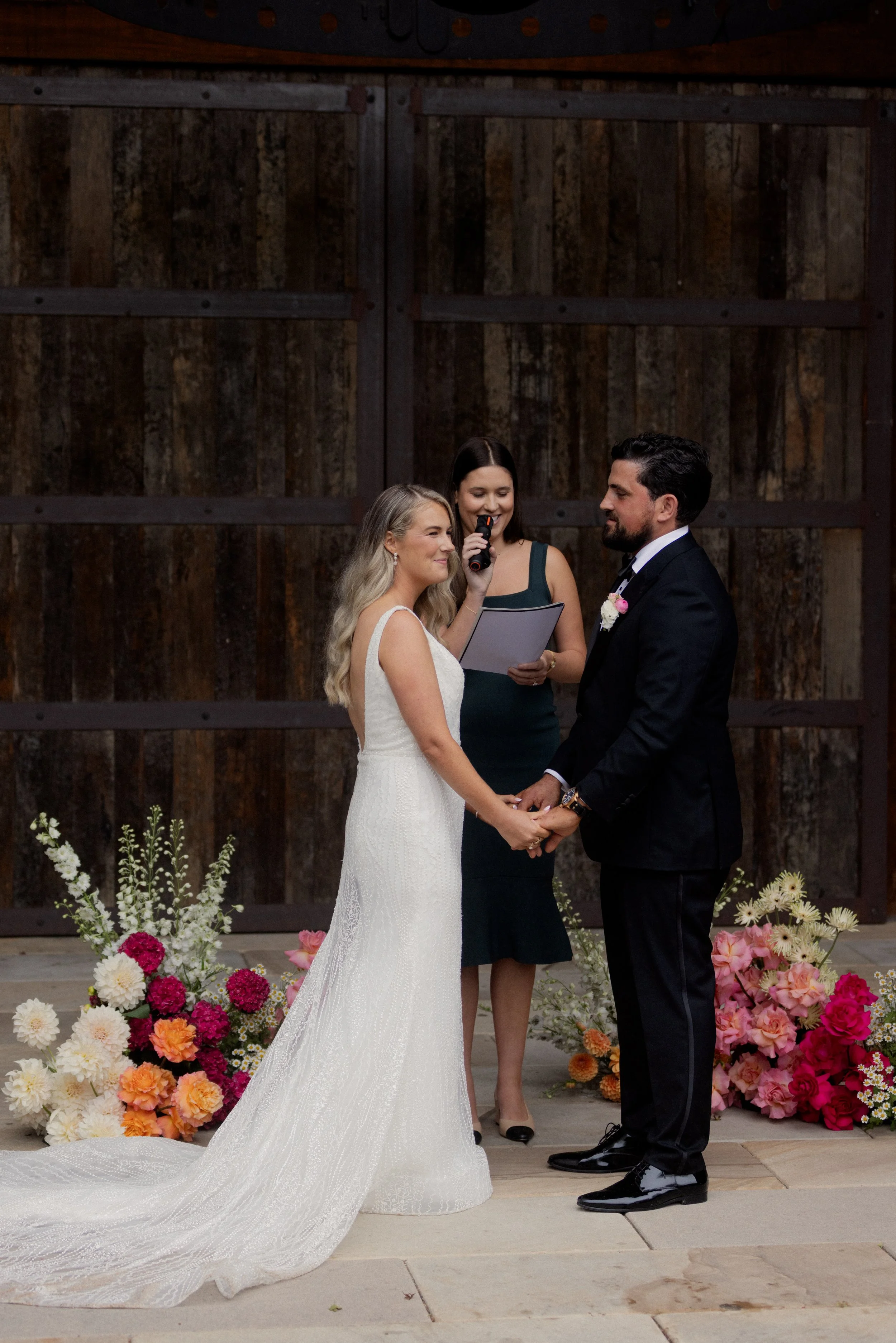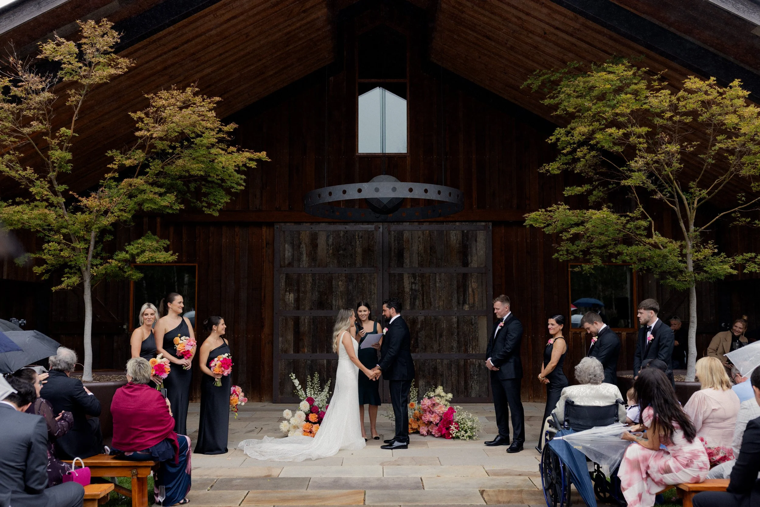 The ceremony took place outdoors by the Stables, where the couple exchanged vows under the open sky. It was a heartfelt and intimate moment, made even more special by the stunning surroundings.