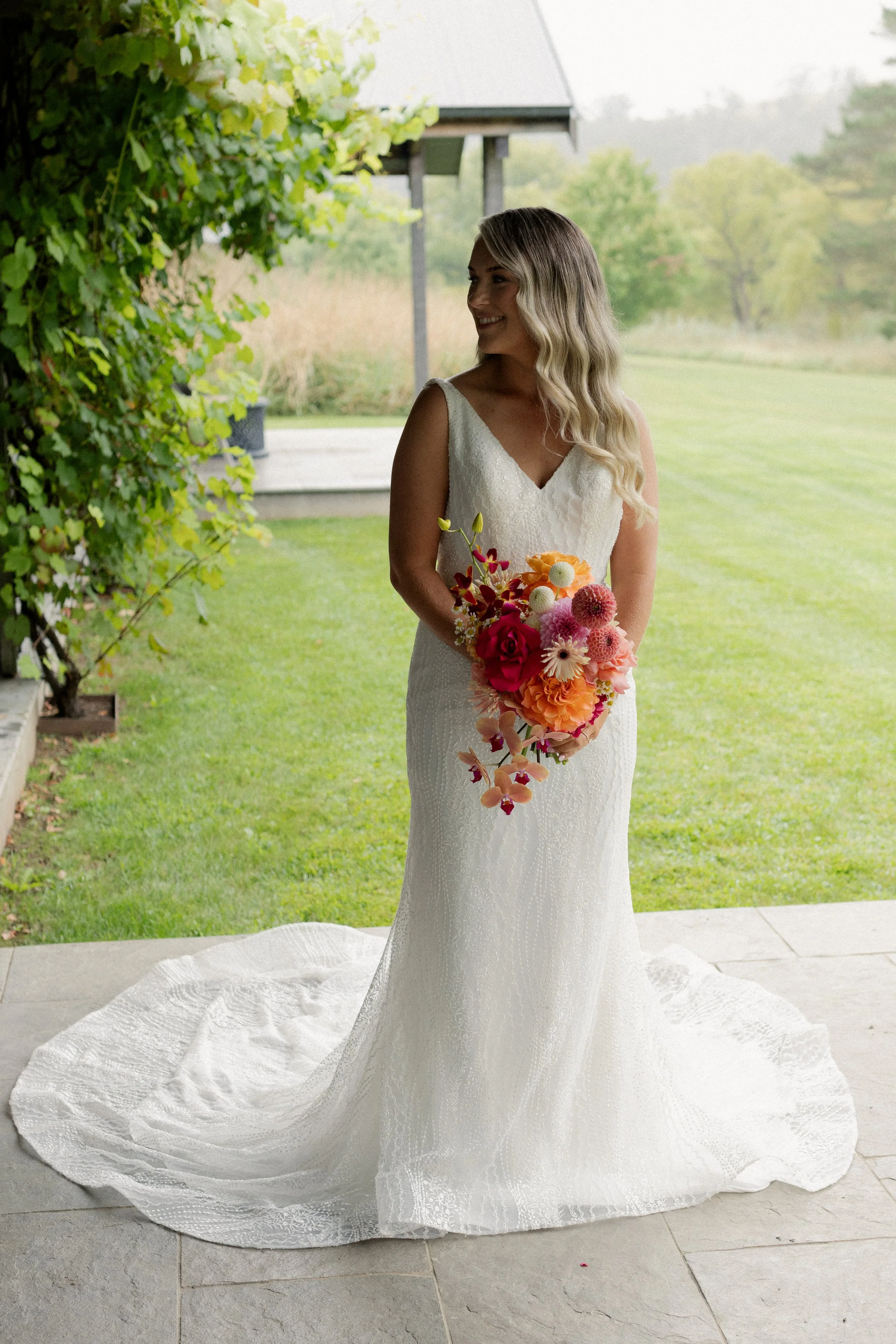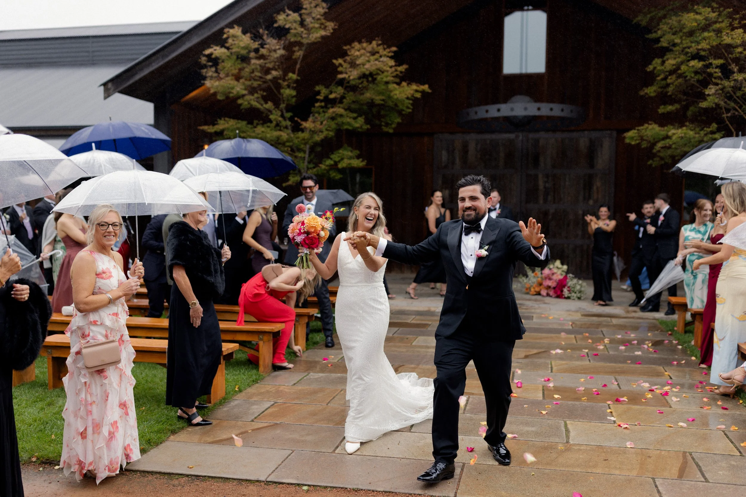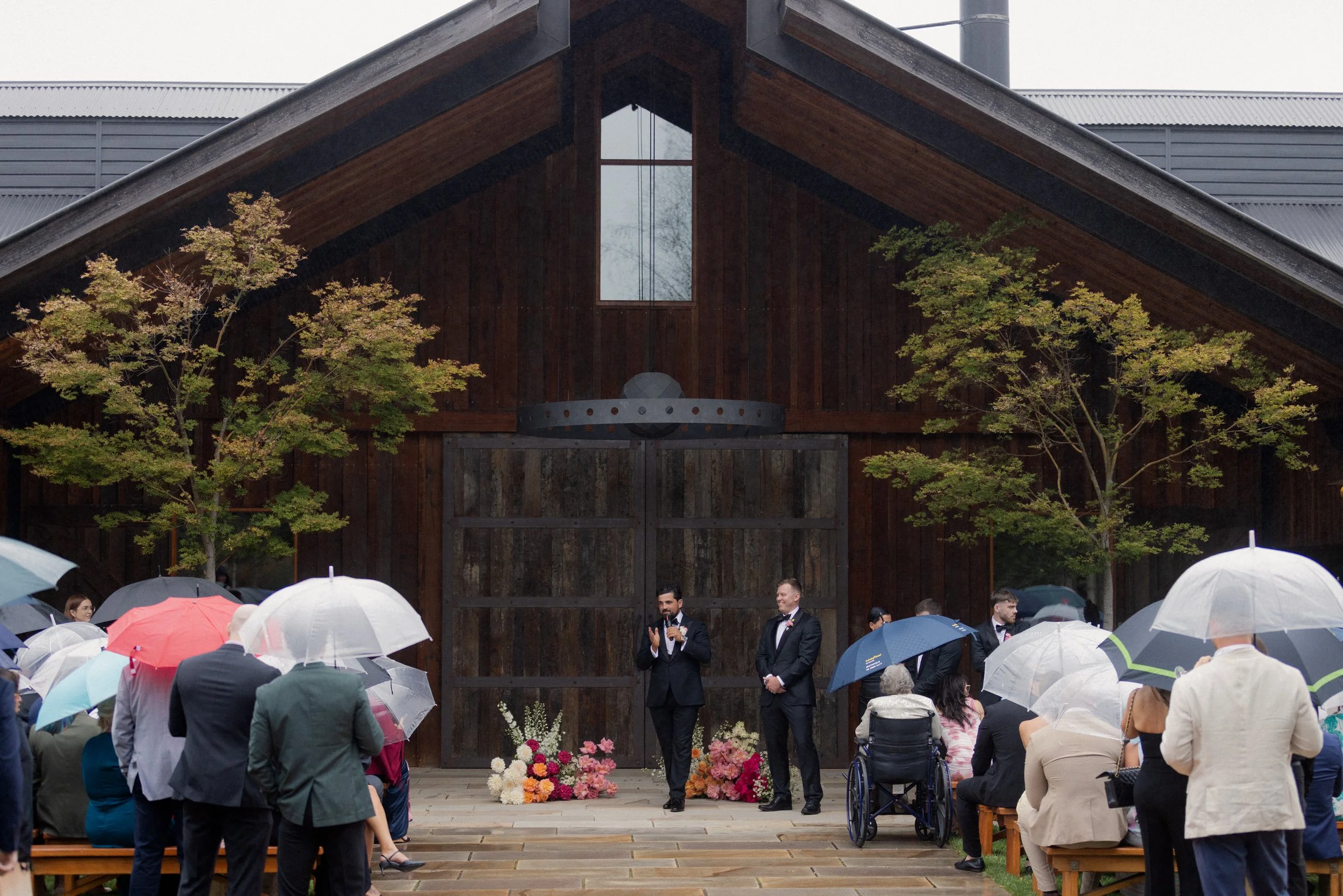 The ceremony took place outdoors by the Stables, where the couple exchanged vows under the open sky. It was a heartfelt and intimate moment, made even more special by the stunning surroundings.