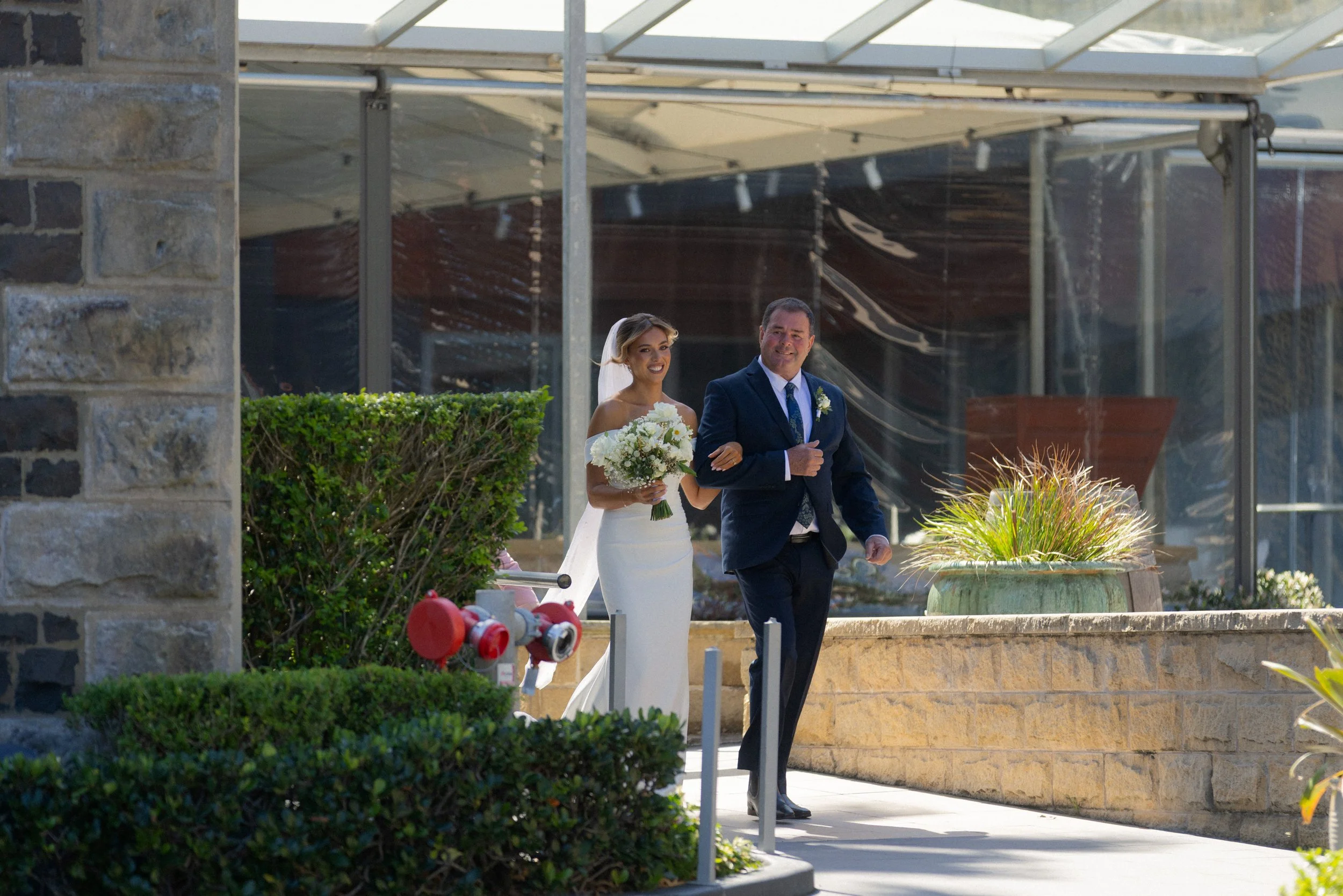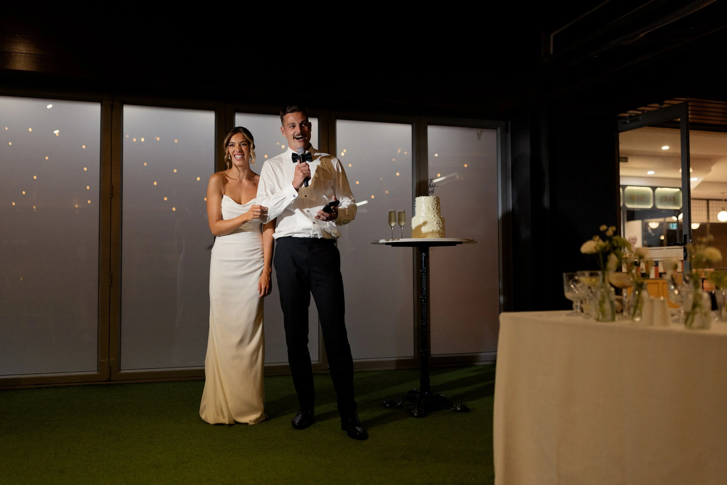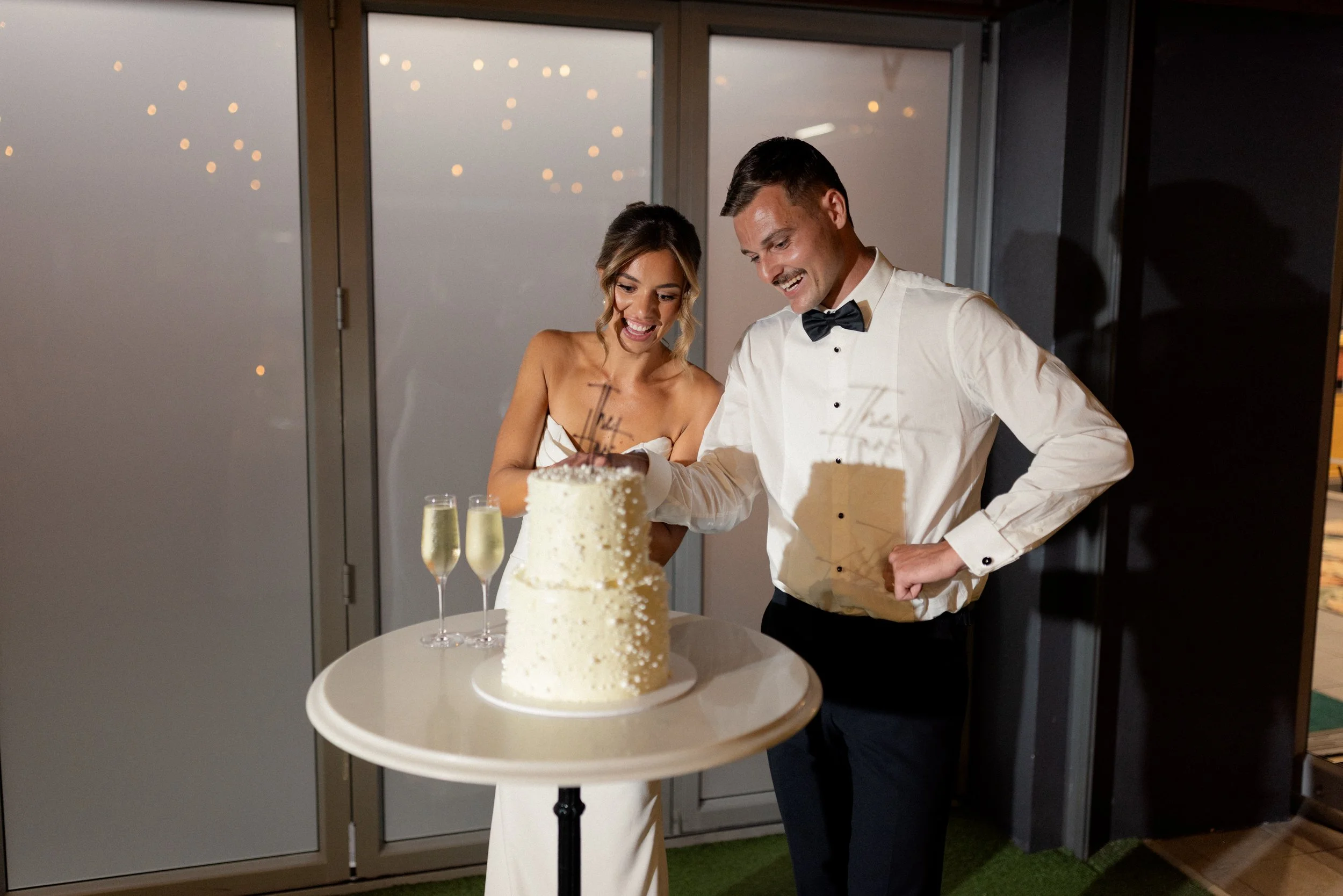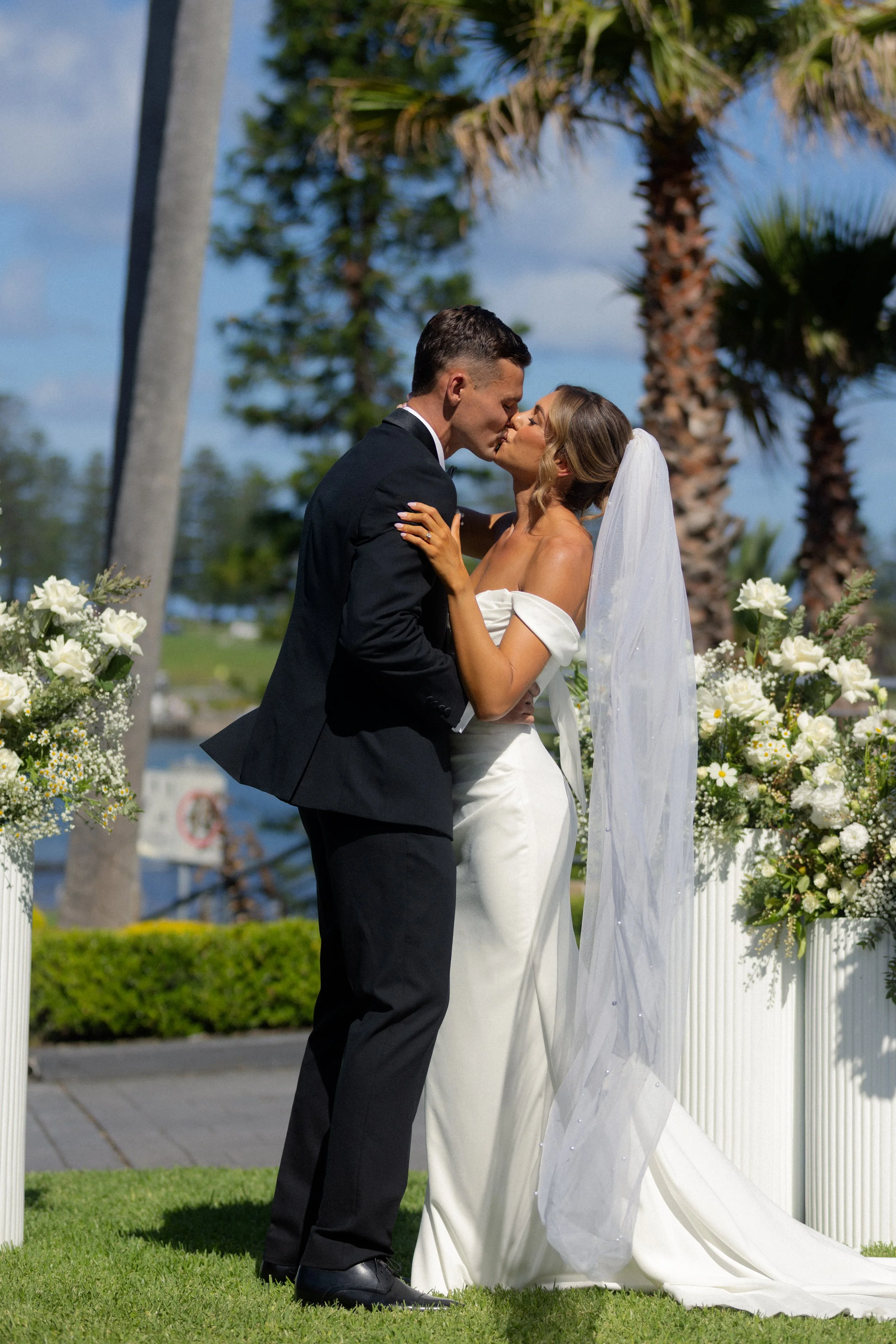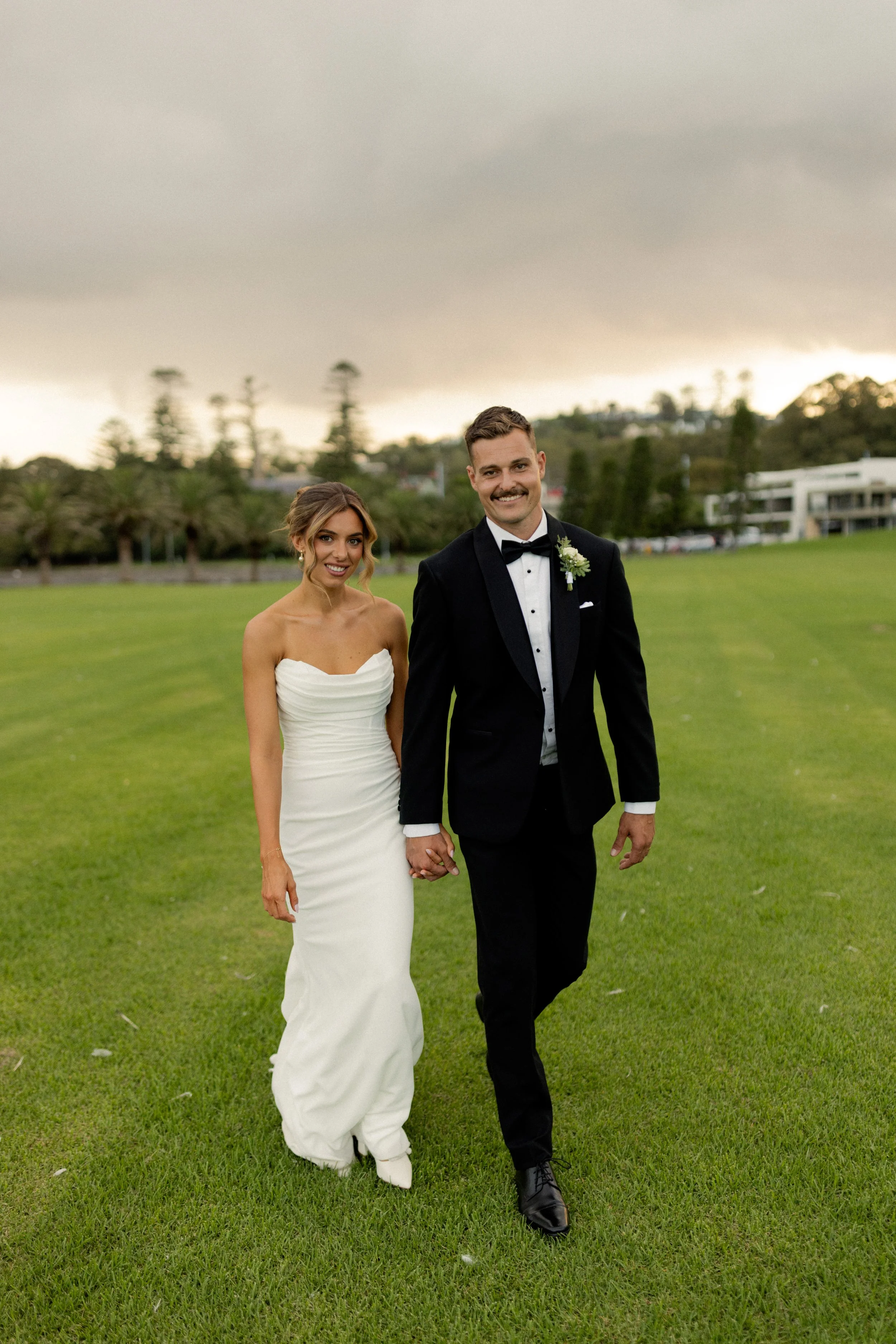 Following their heartfelt “I do’s,” guests gathered to celebrate with a beautiful champagne tower, marking the beginning of the festivities. The newlyweds then took advantage of Kiama’s scenic harbour, capturing timeless portraits among the coastal views and golden afternoon light.