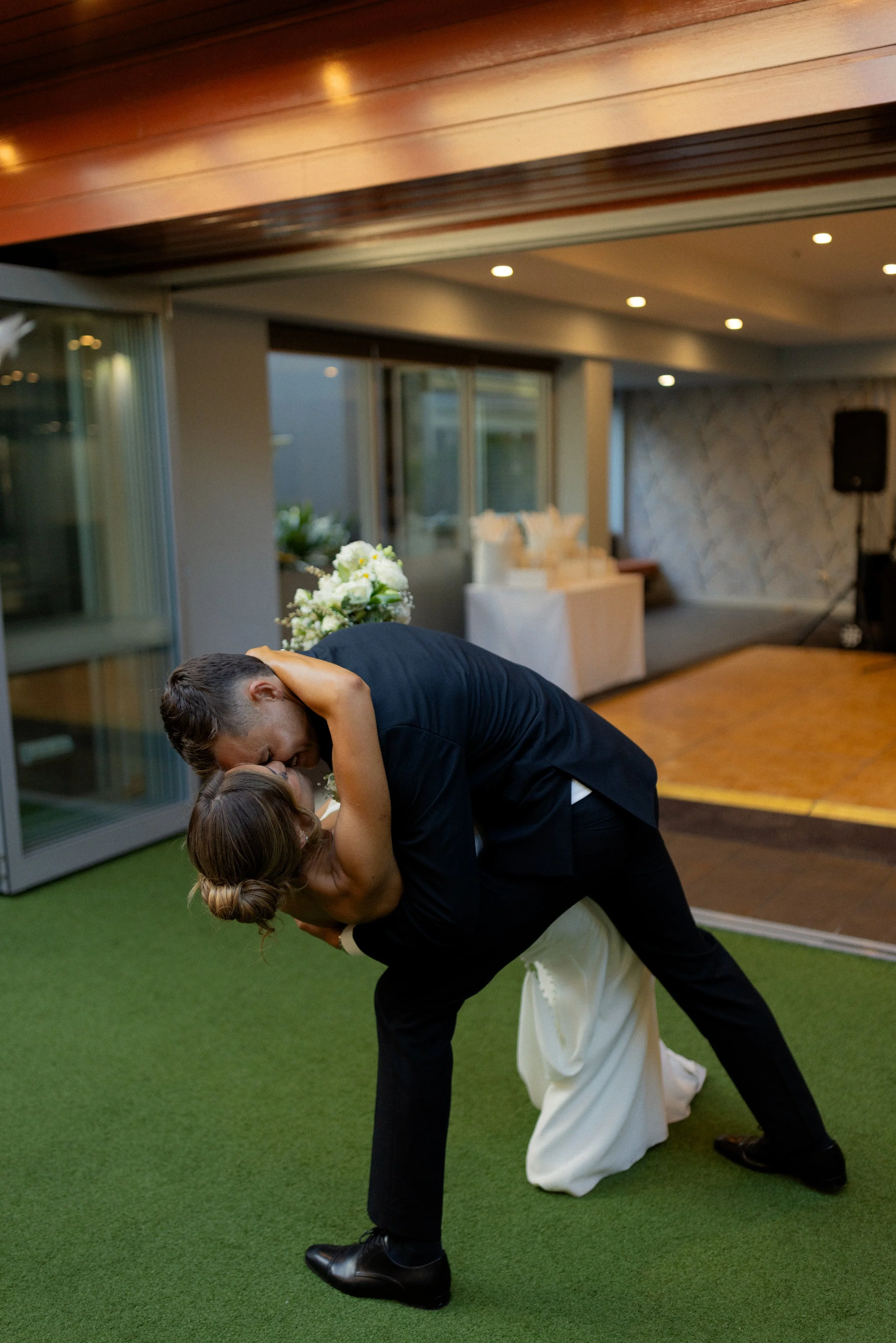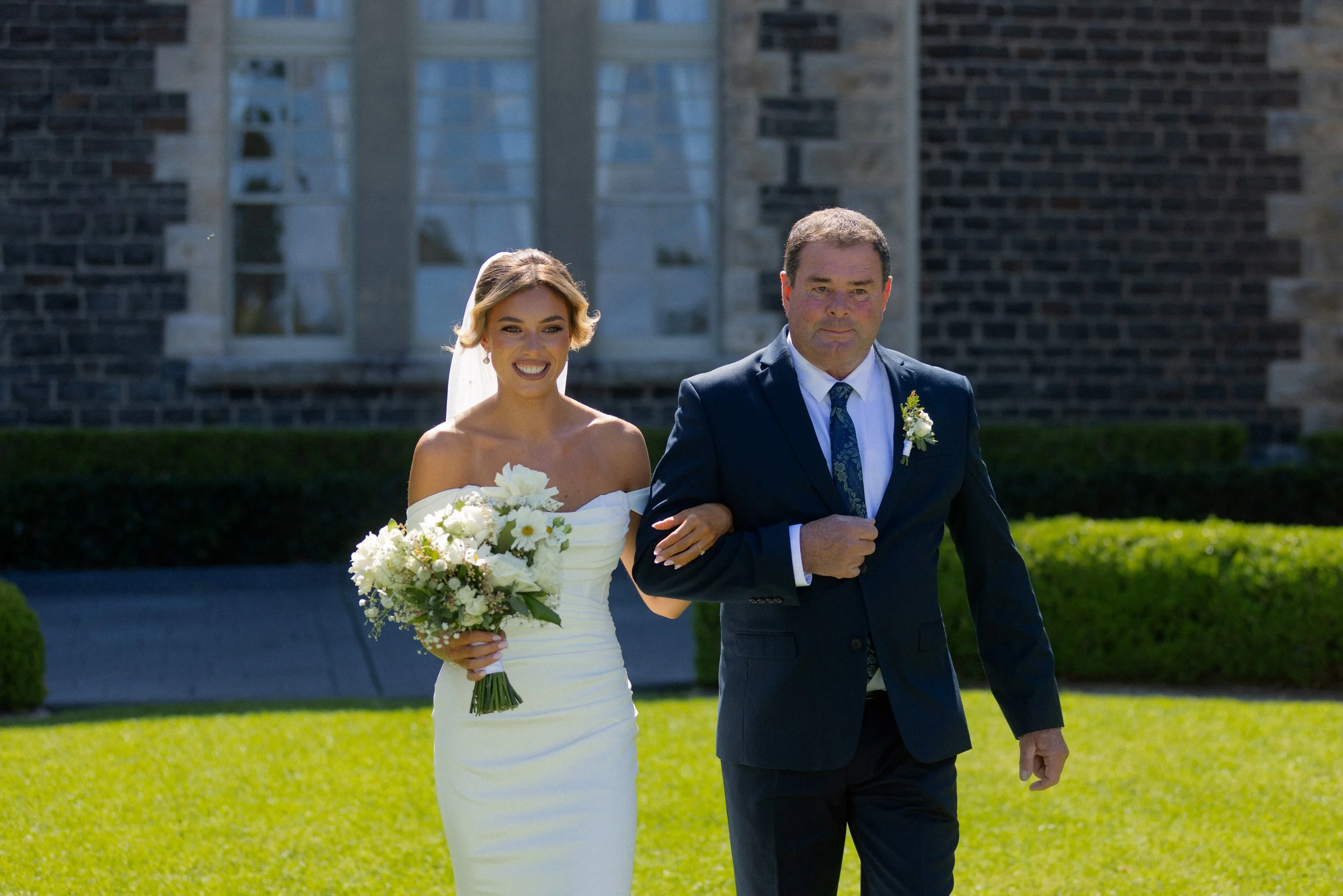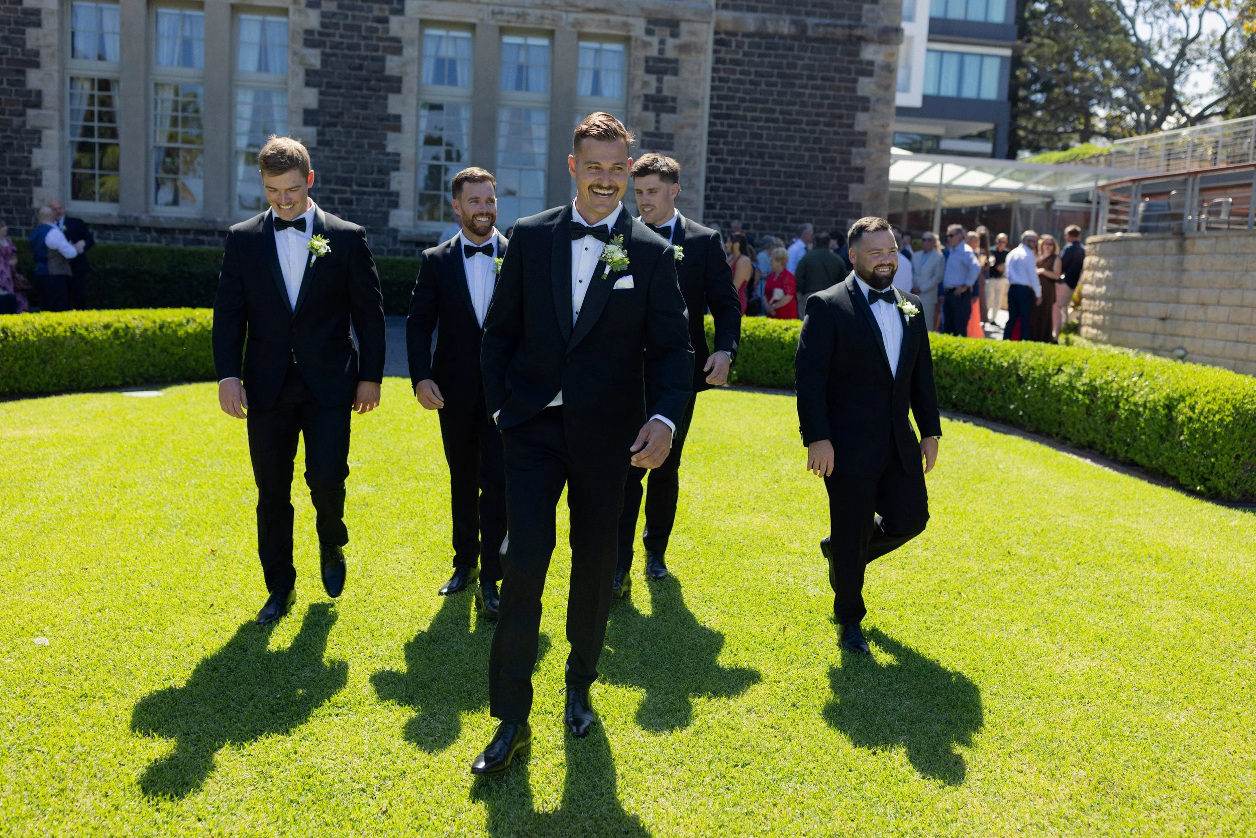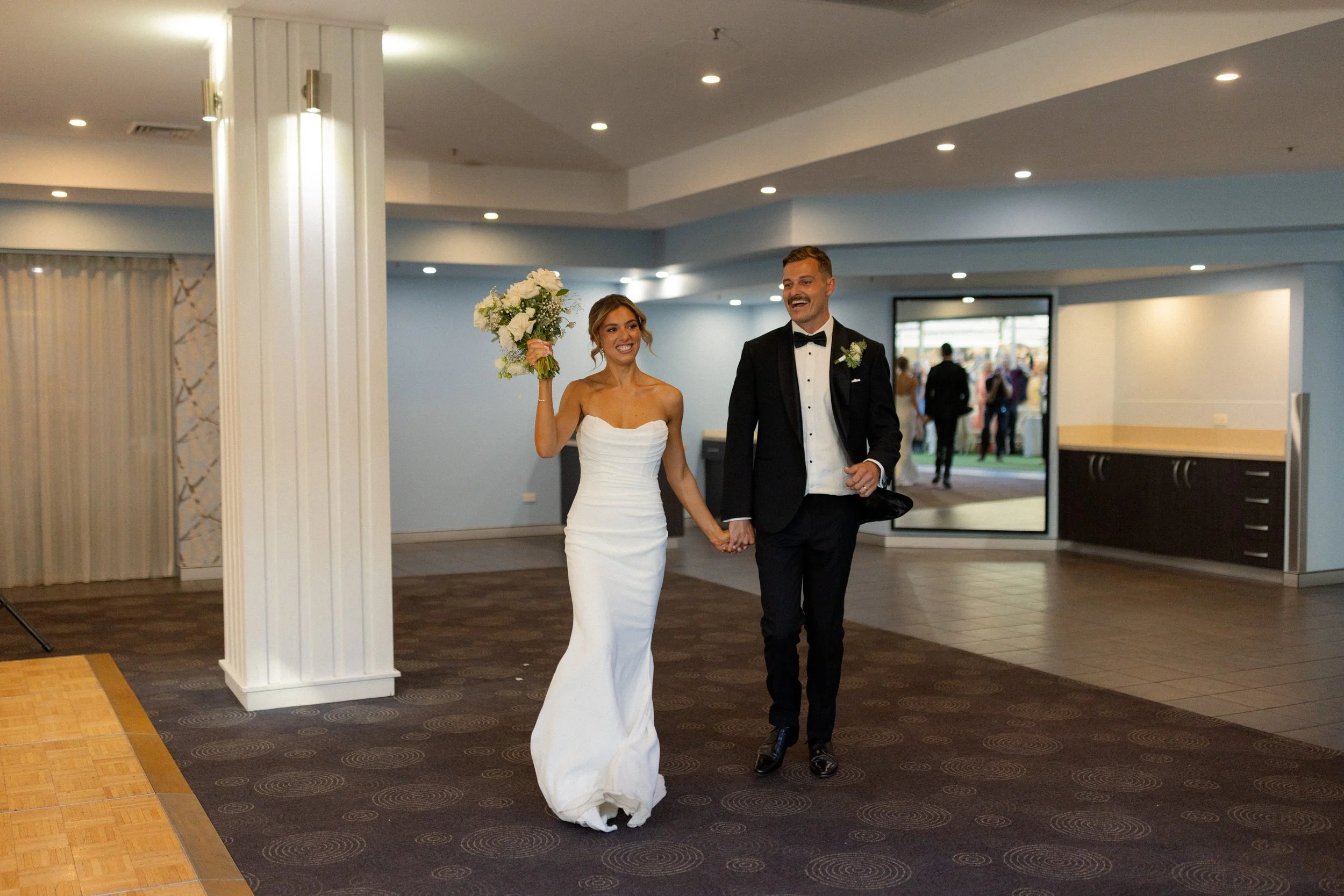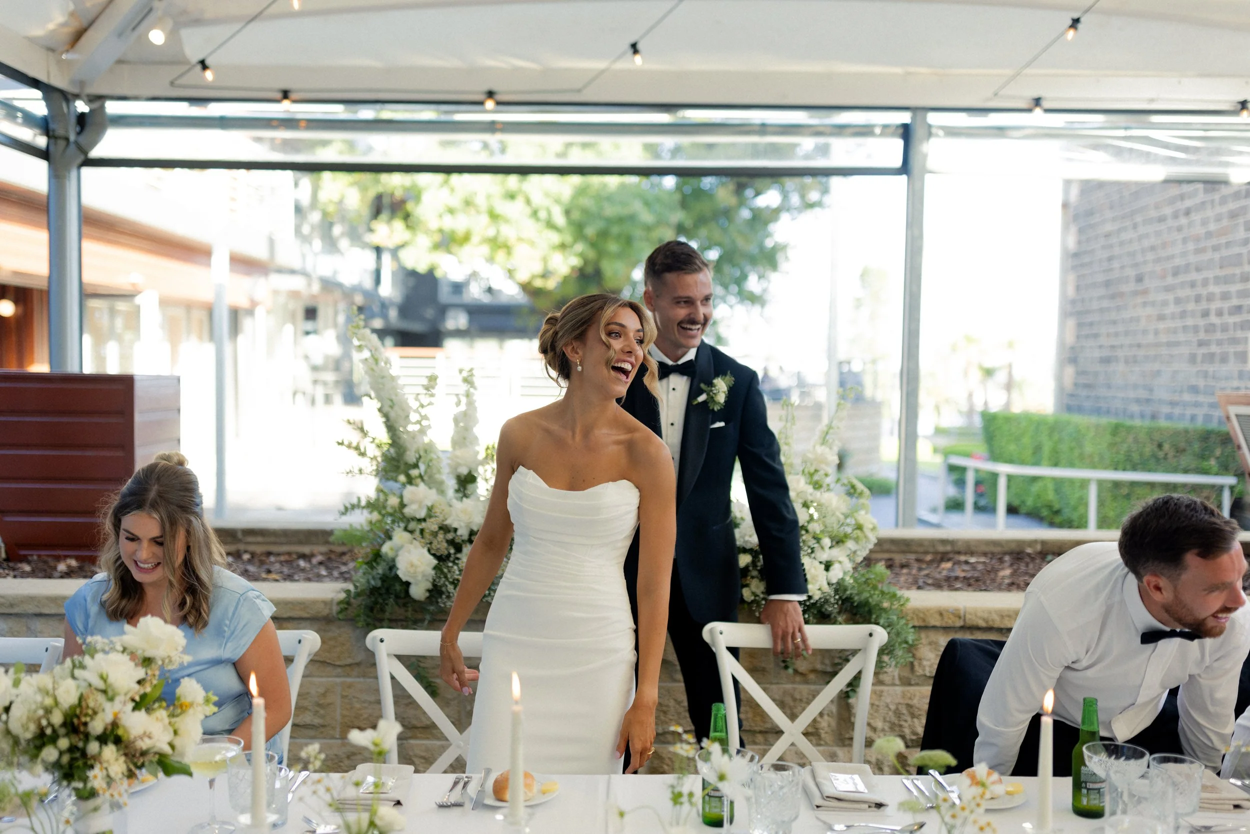 Following their heartfelt “I do’s,” guests gathered to celebrate with a beautiful champagne tower, marking the beginning of the festivities. The newlyweds then took advantage of Kiama’s scenic harbour, capturing timeless portraits among the coastal views and golden afternoon light.