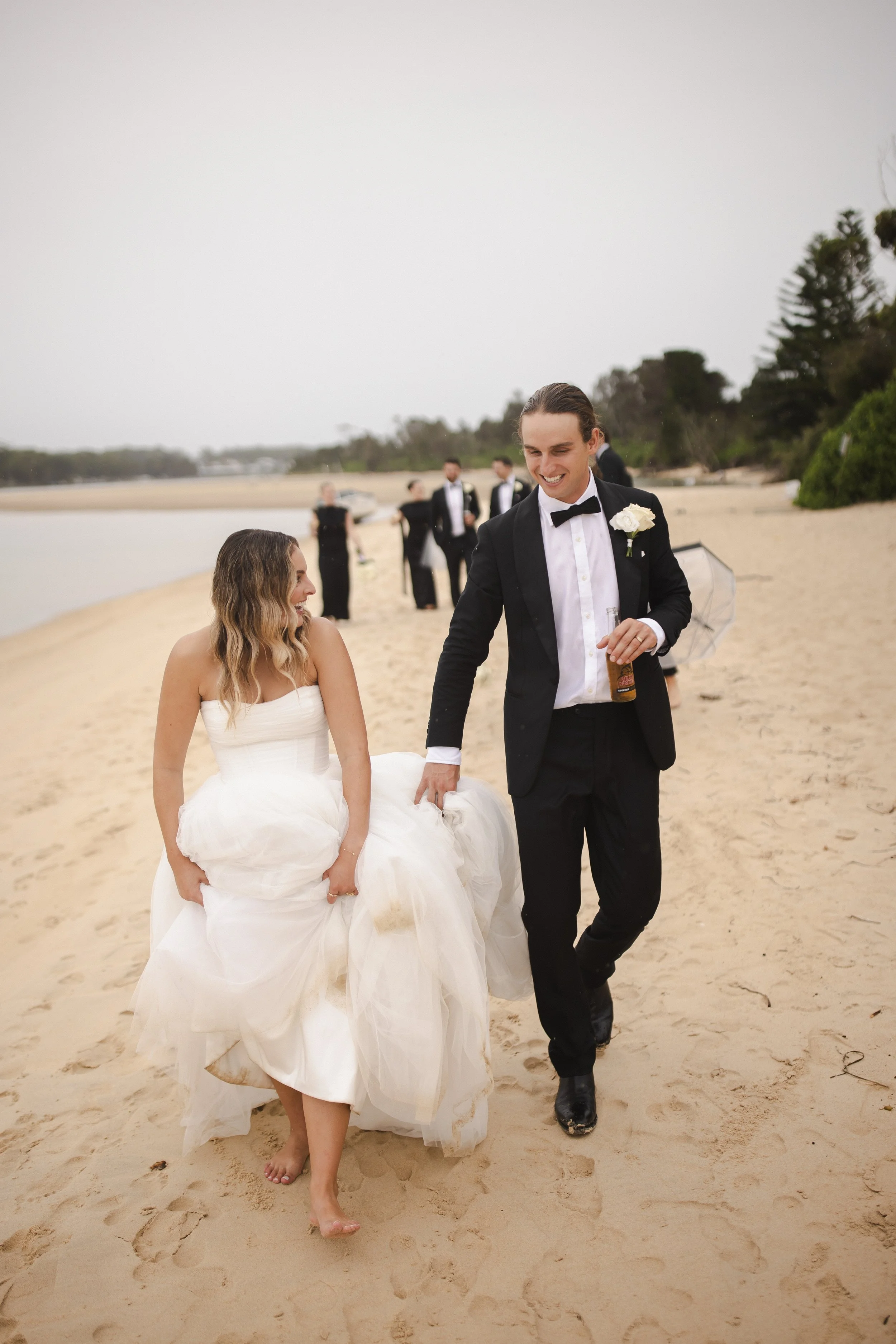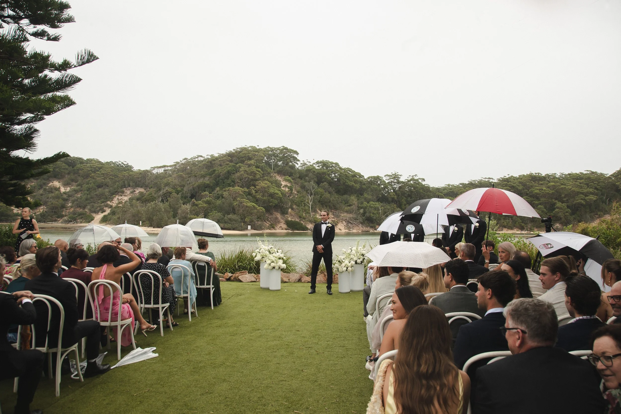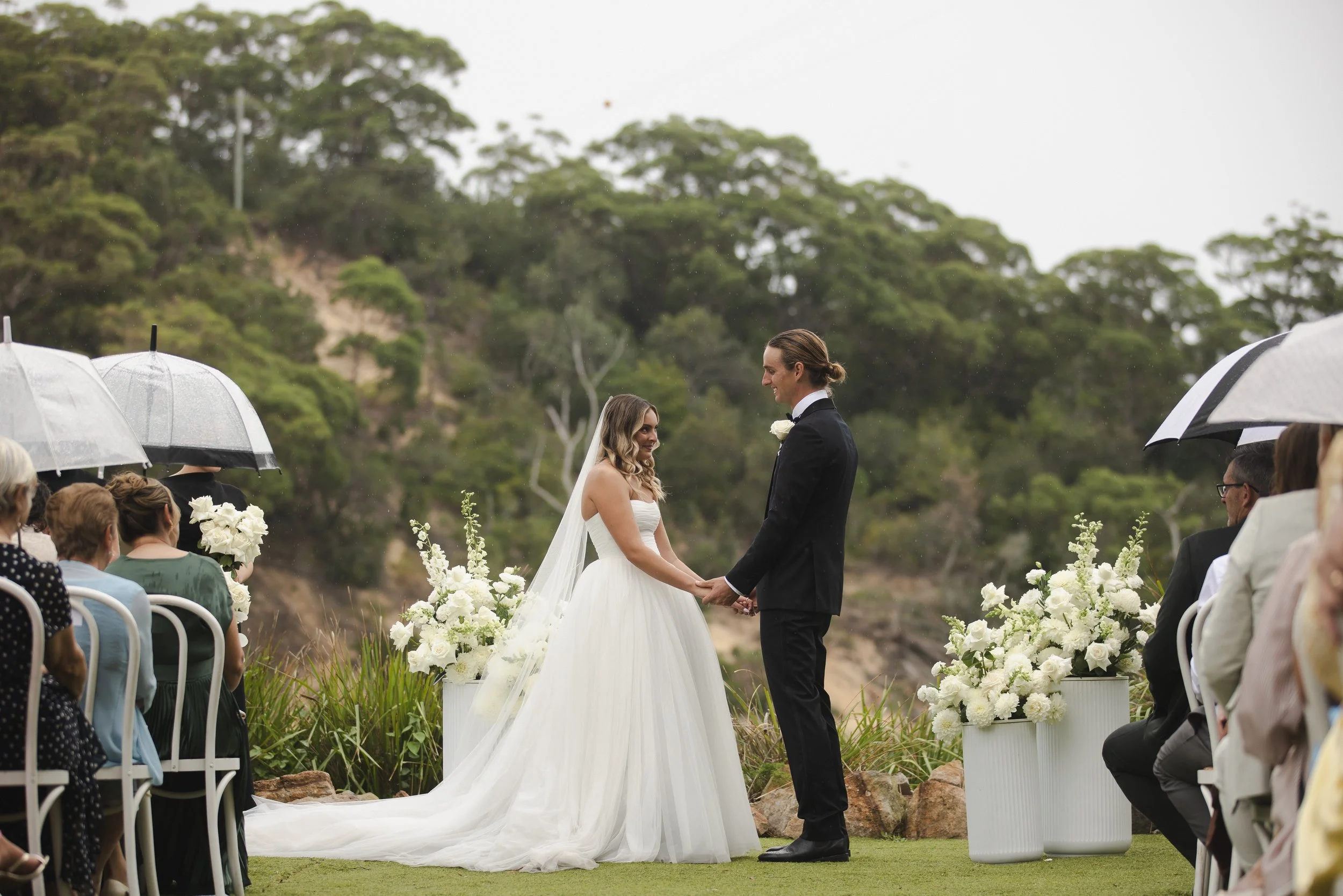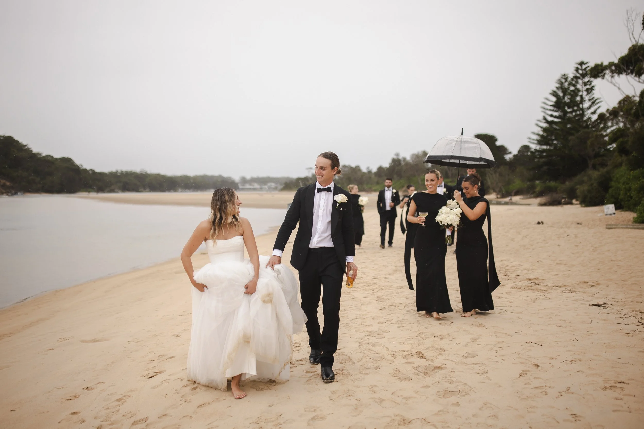 Matt and Alyssa’s wedding on the 2nd of March was nothing short of magical, set against the stunning coastal backdrop of The Cove in Jervis Bay. The day began with a sense of excitement as both the bride and groom prepared in separate cabins, each surrounded by their large and lively bridal party. Laughter, music, and a few happy tears filled the air as everyone got ready for the big moment.