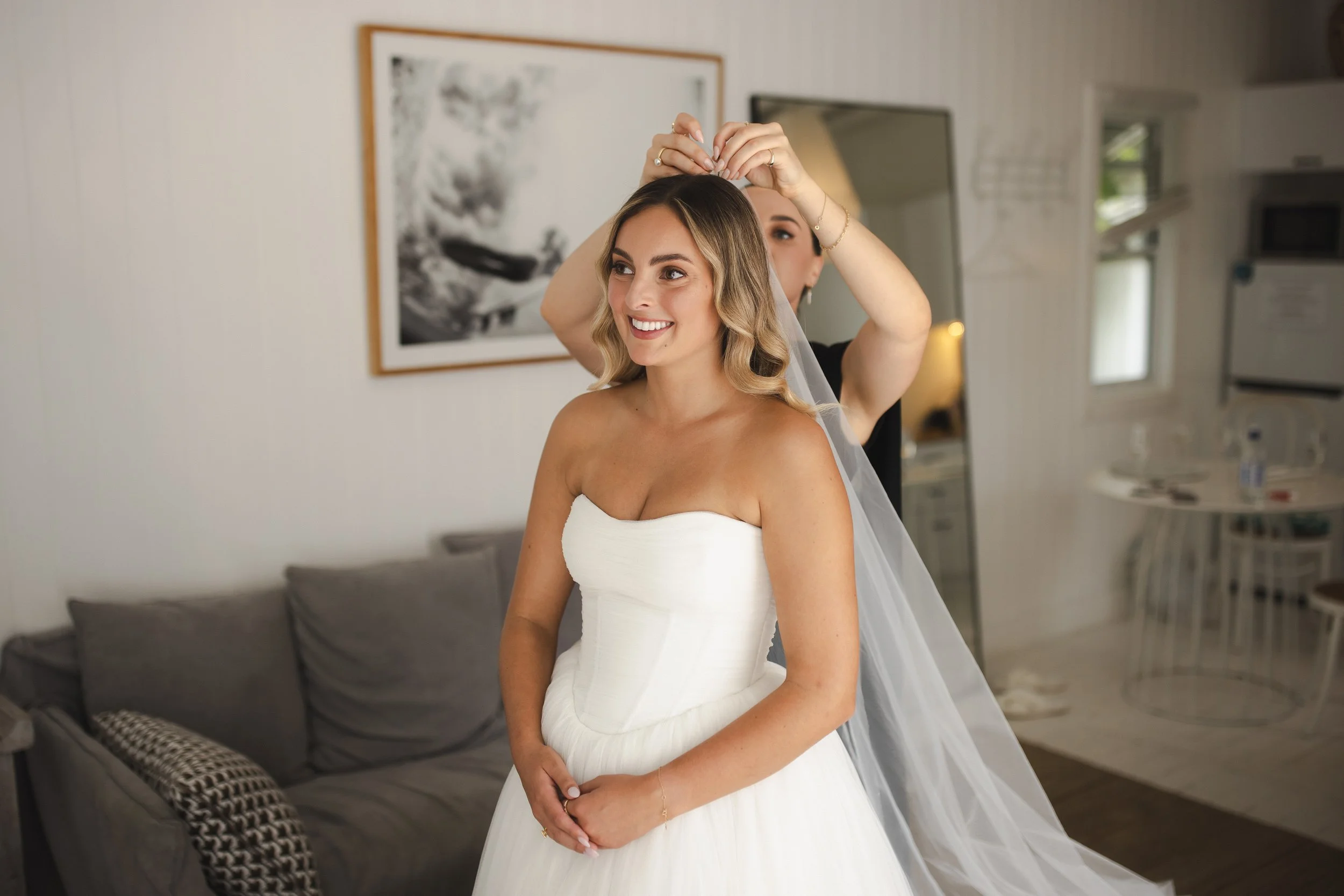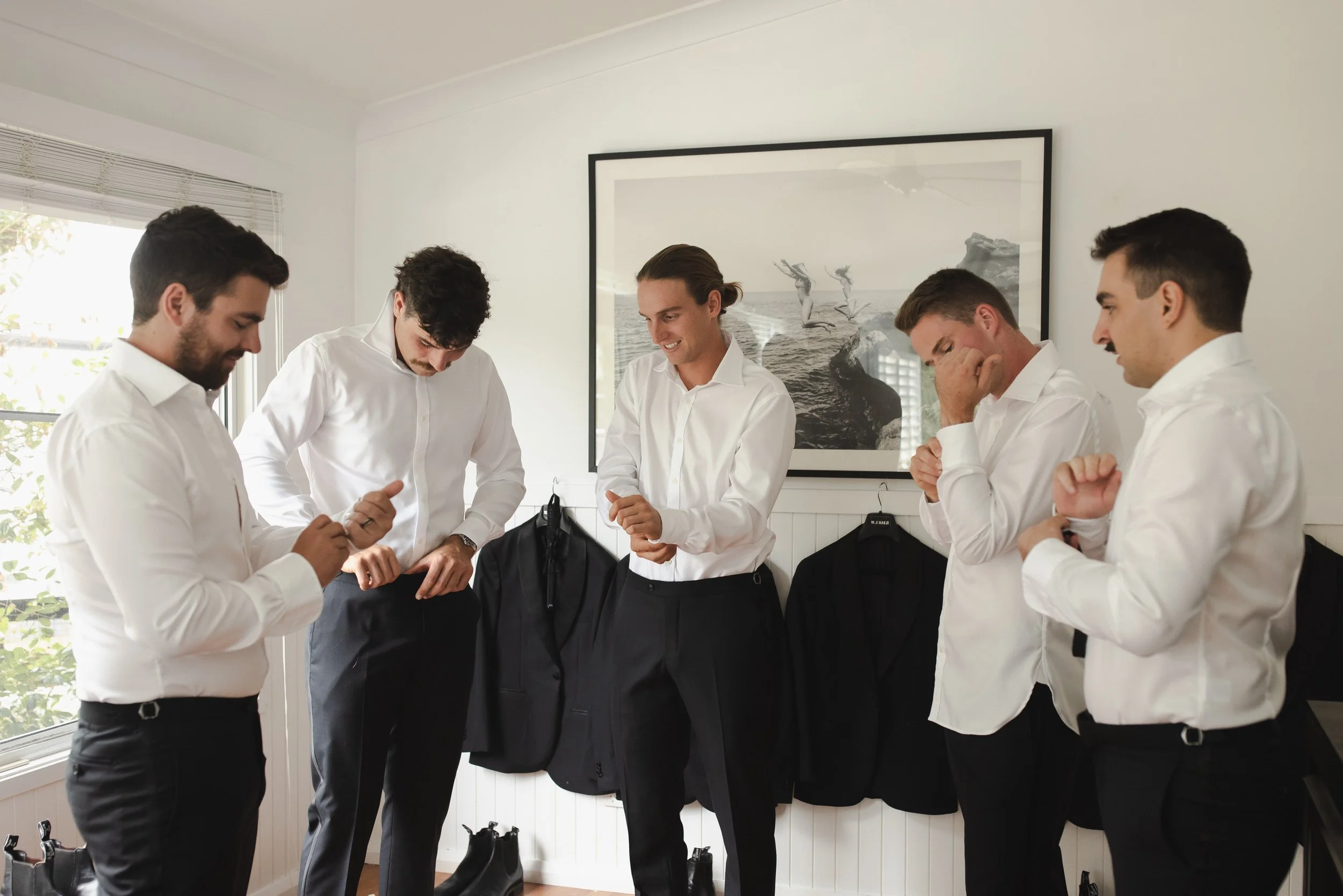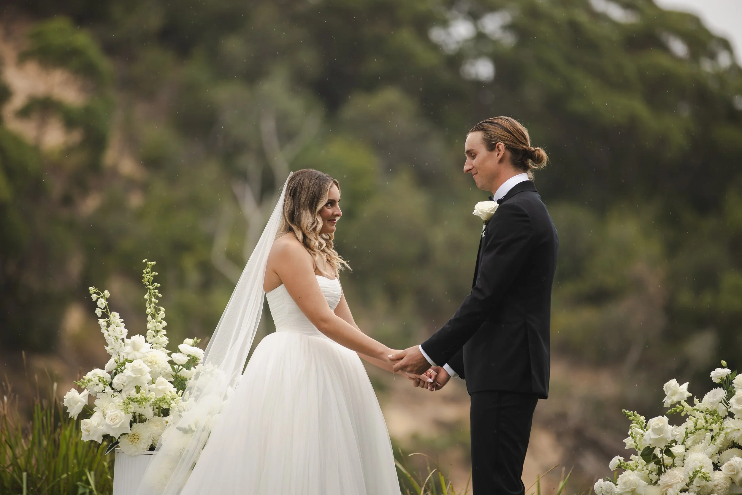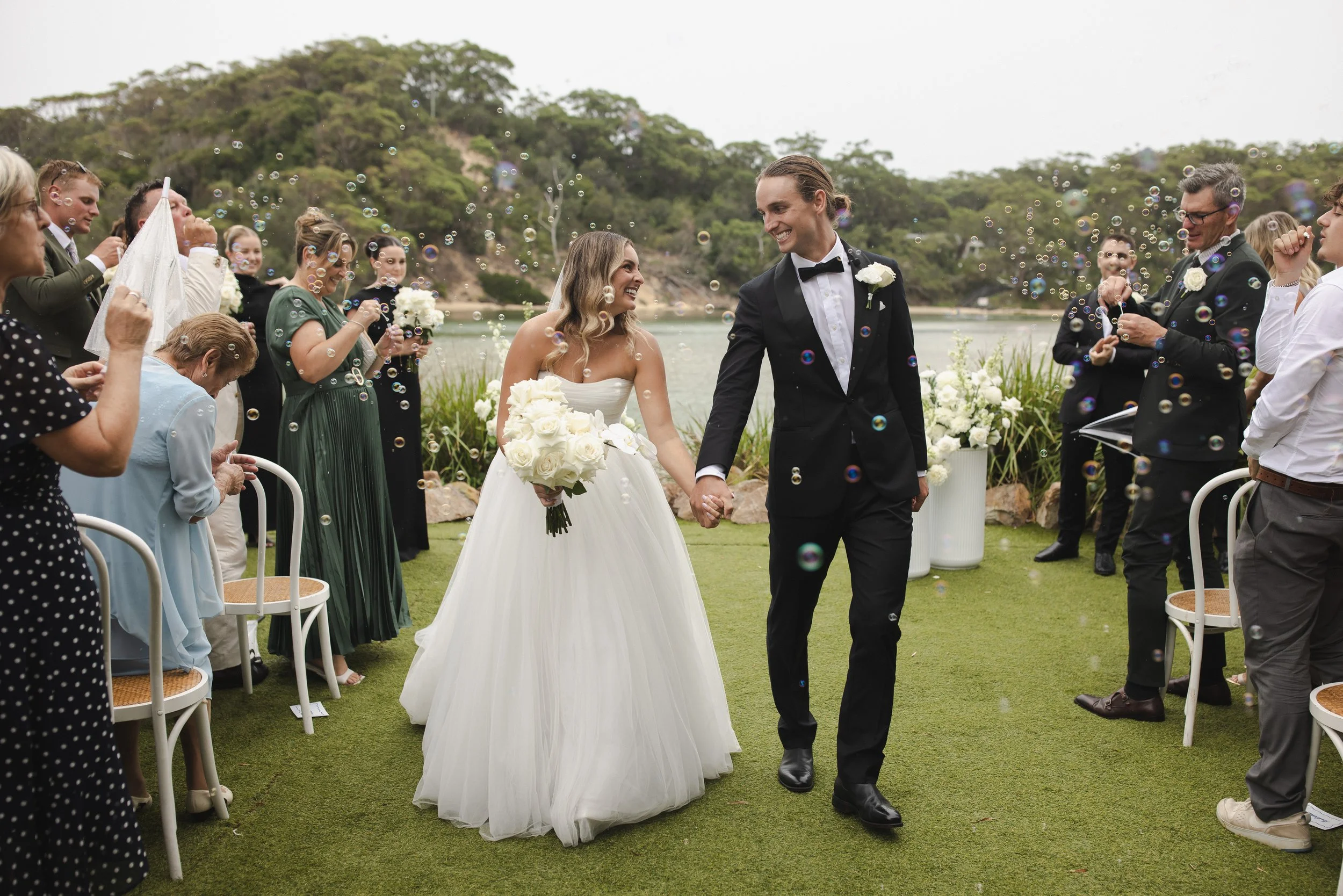 Matt and Alyssa’s wedding on the 2nd of March was nothing short of magical, set against the stunning coastal backdrop of The Cove in Jervis Bay. The day began with a sense of excitement as both the bride and groom prepared in separate cabins, each surrounded by their large and lively bridal party. Laughter, music, and a few happy tears filled the air as everyone got ready for the big moment.