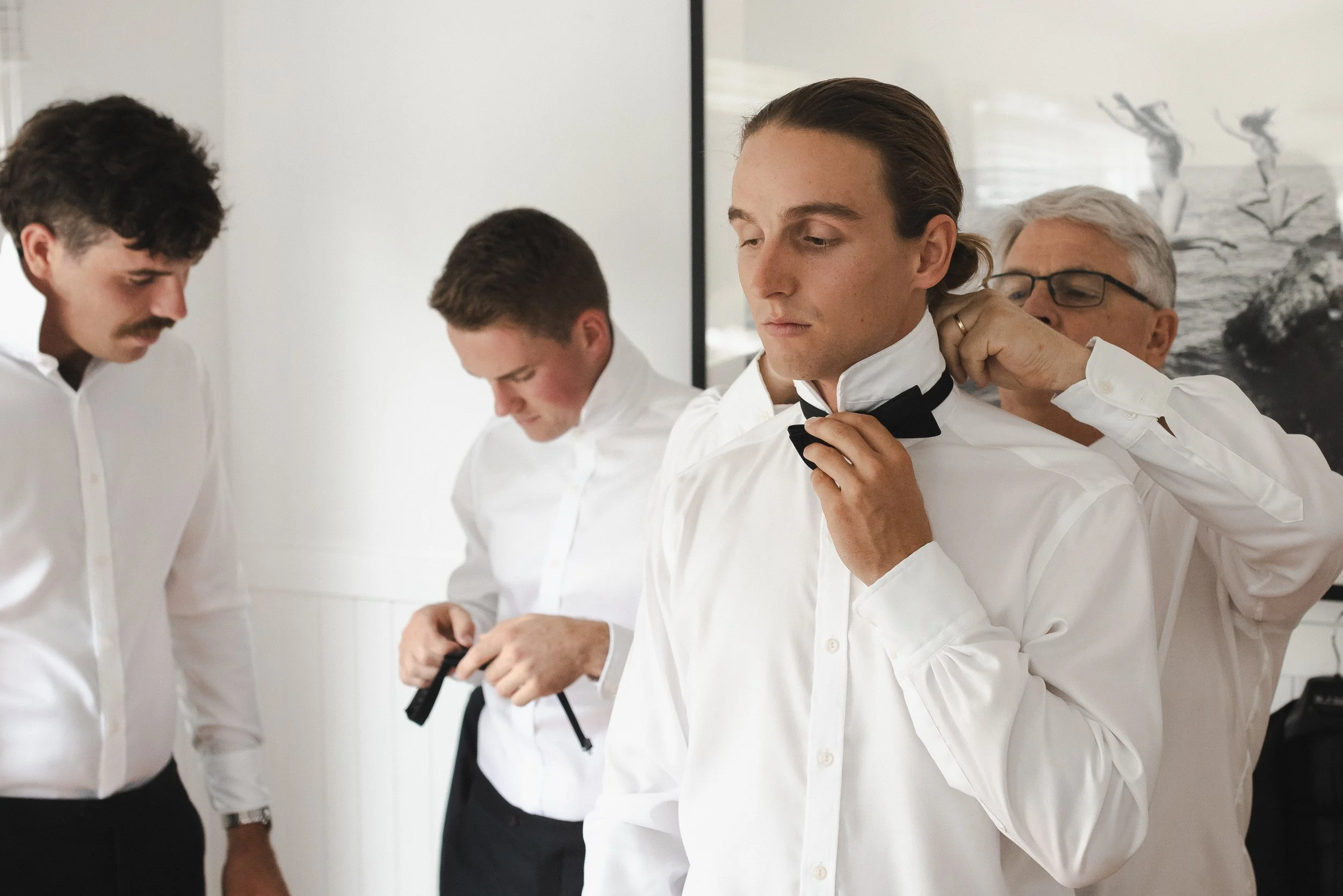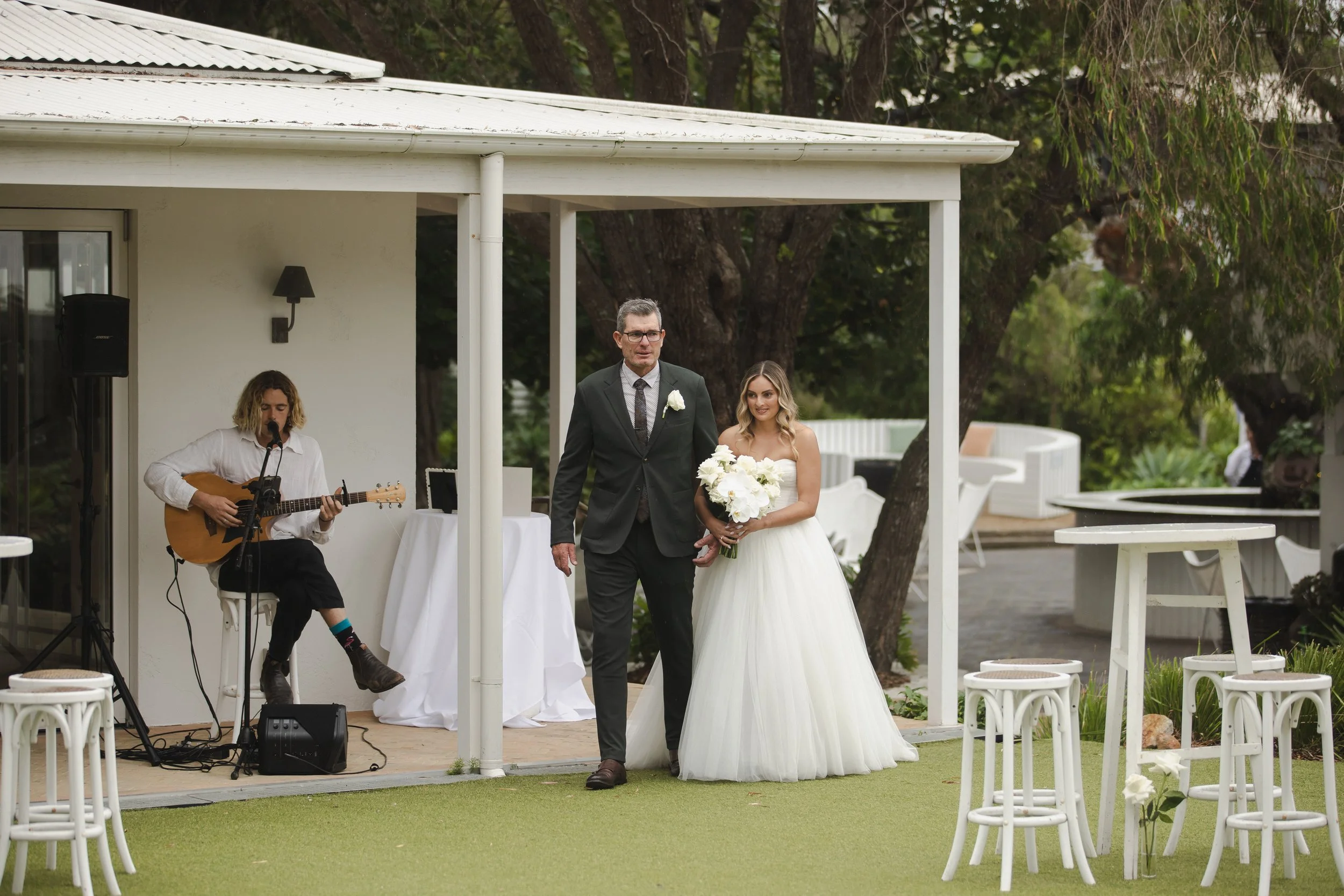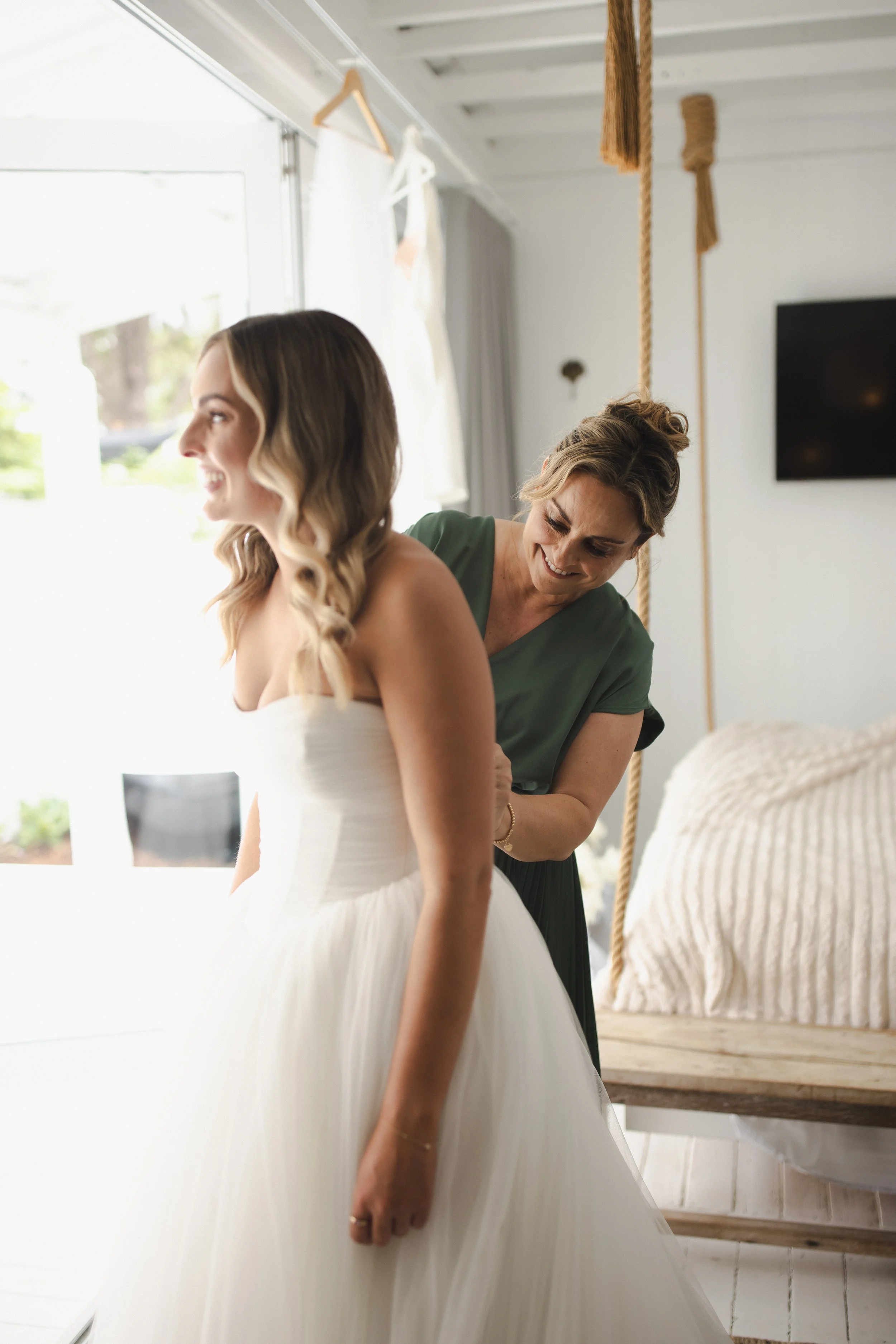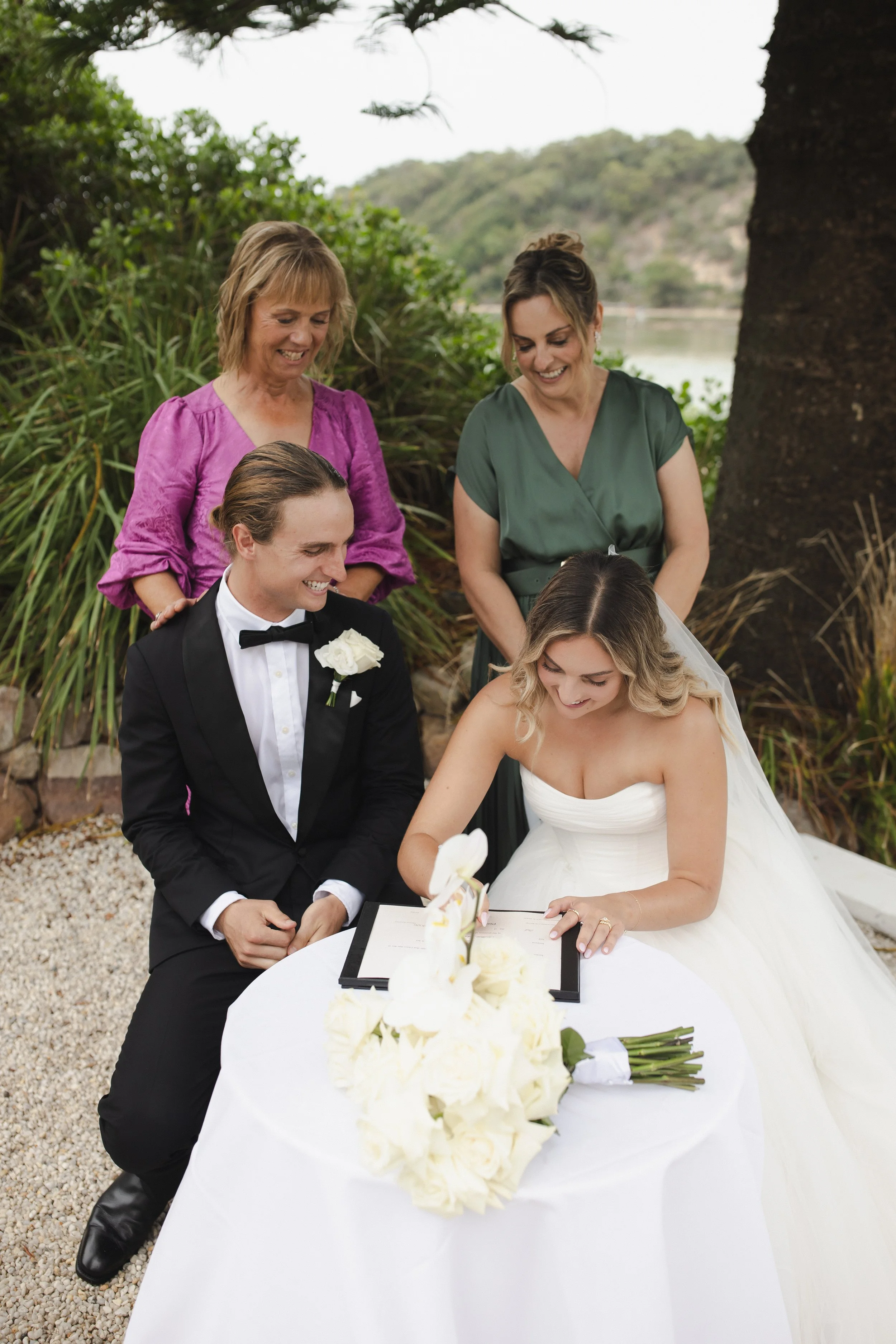 Matt and Alyssa’s wedding on the 2nd of March was nothing short of magical, set against the stunning coastal backdrop of The Cove in Jervis Bay. The day began with a sense of excitement as both the bride and groom prepared in separate cabins, each surrounded by their large and lively bridal party. Laughter, music, and a few happy tears filled the air as everyone got ready for the big moment.