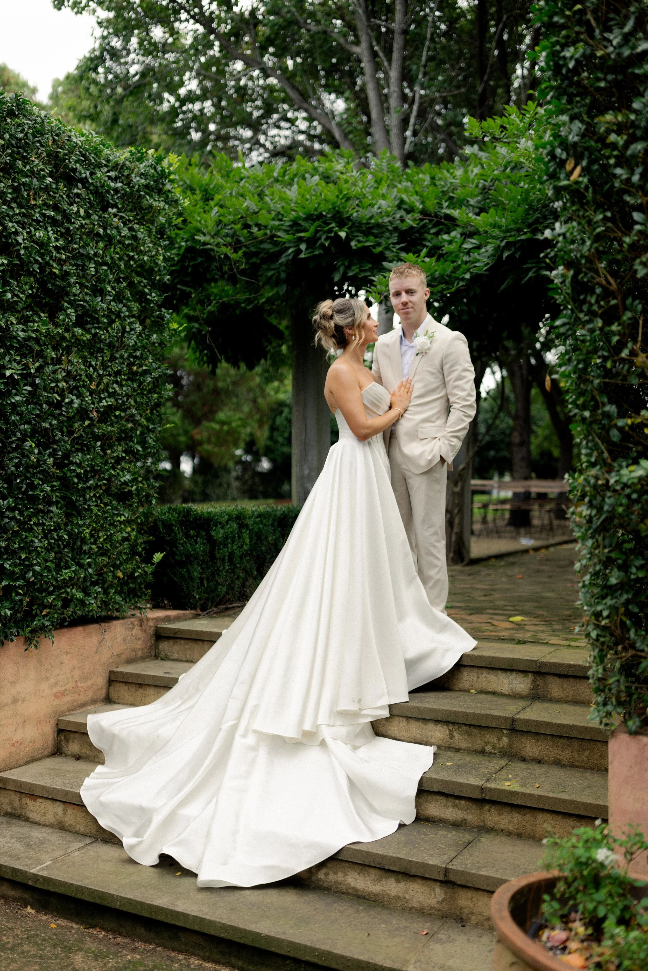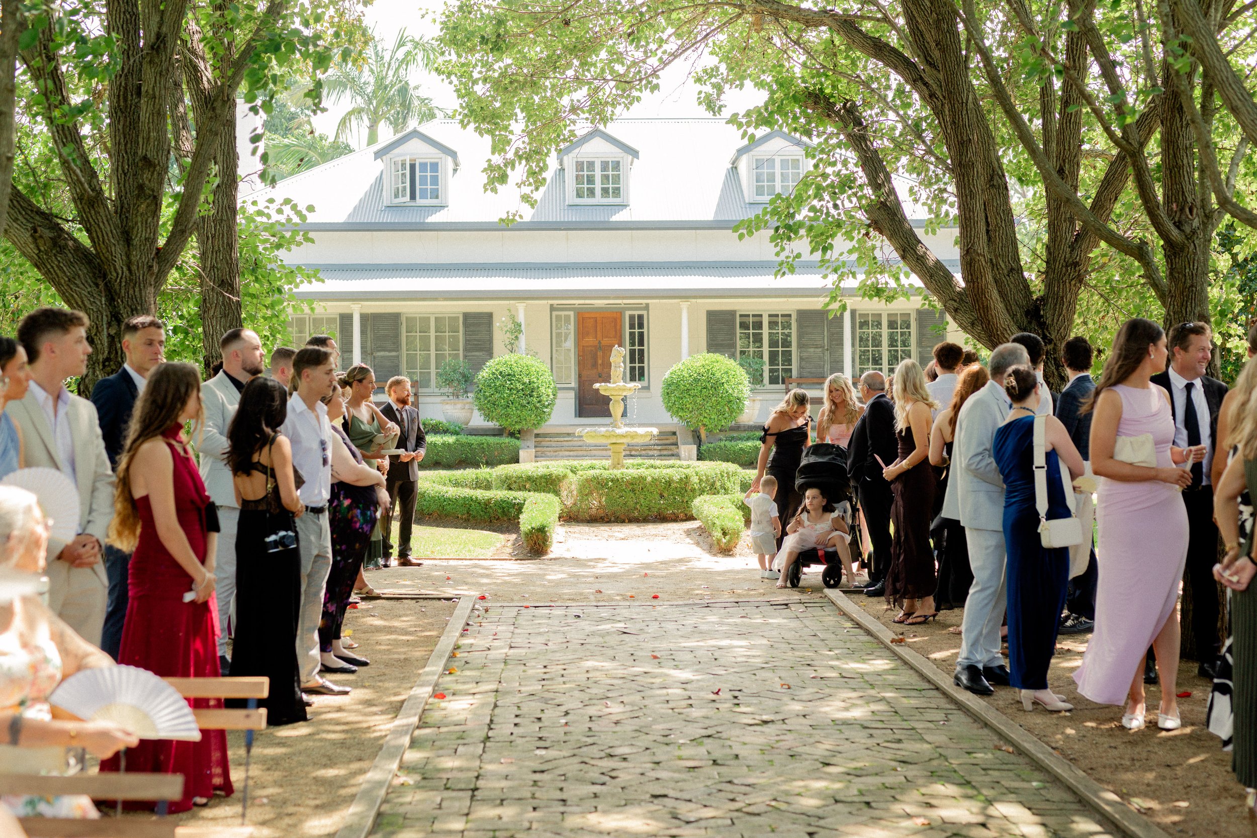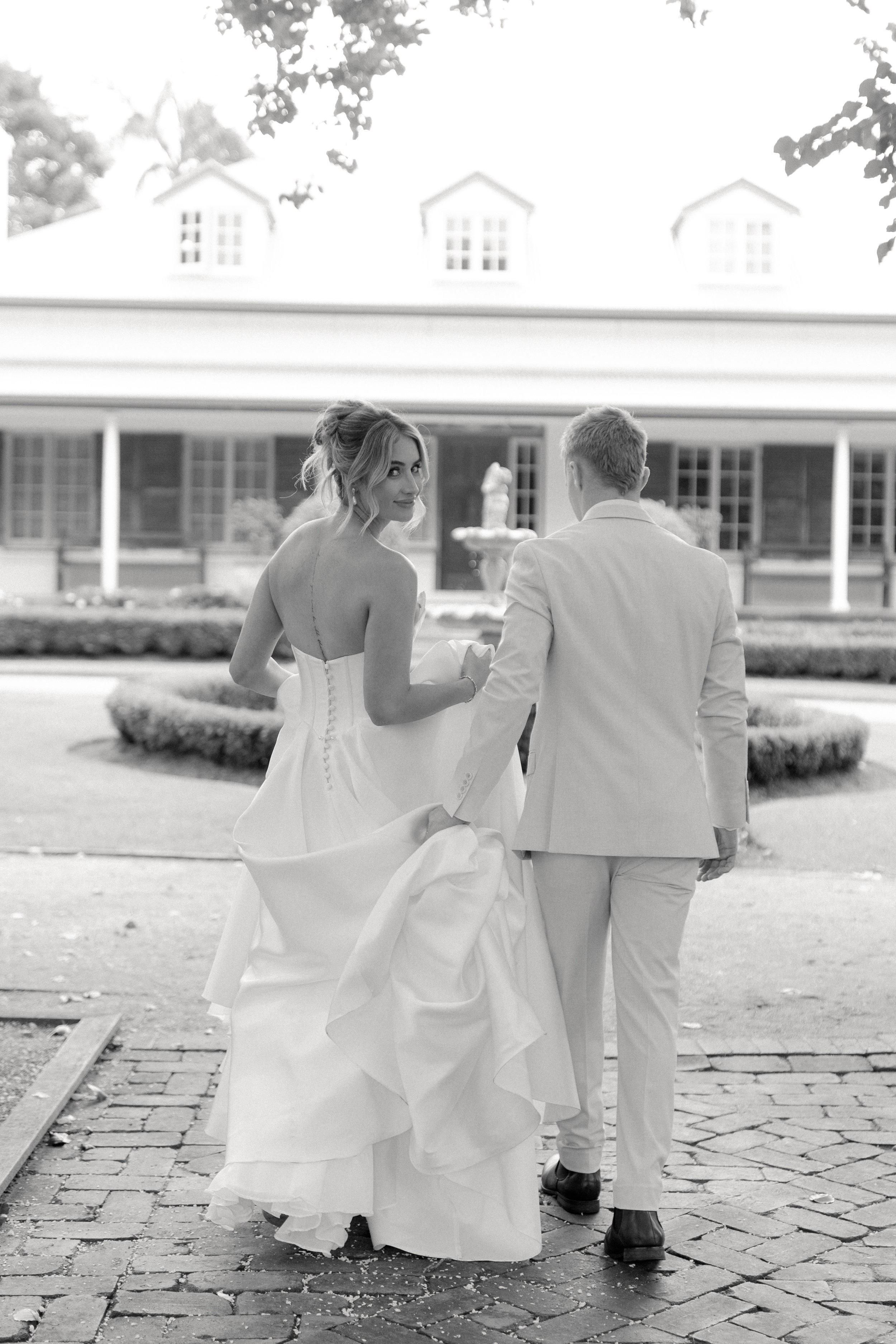 Afterwards, guests wandered the property as the newlyweds explored it themselves for portraits, making the most of the stunning surroundings. Every corner offered something special, creating the perfect backdrop for capturing those first moments as a married couple.