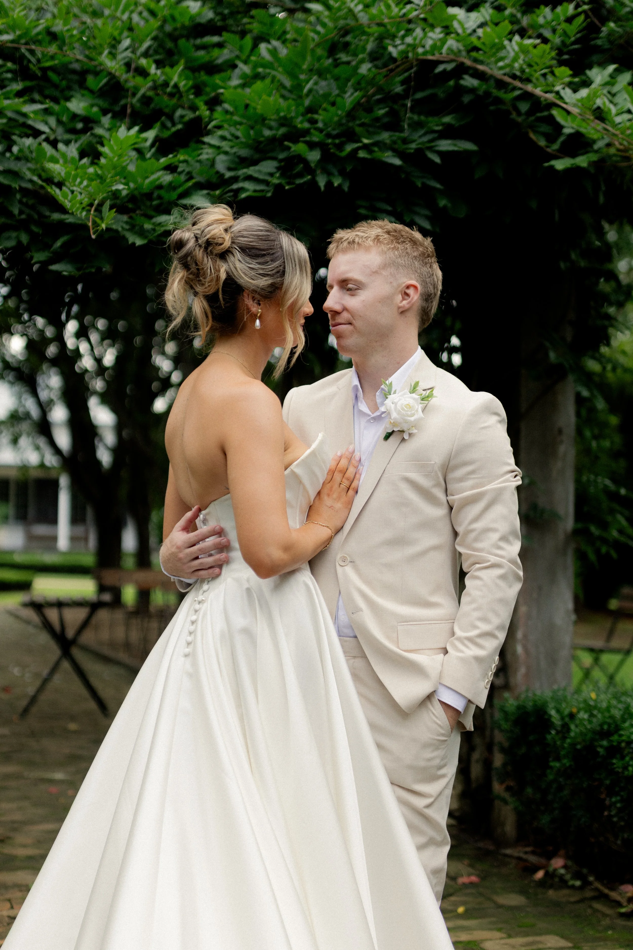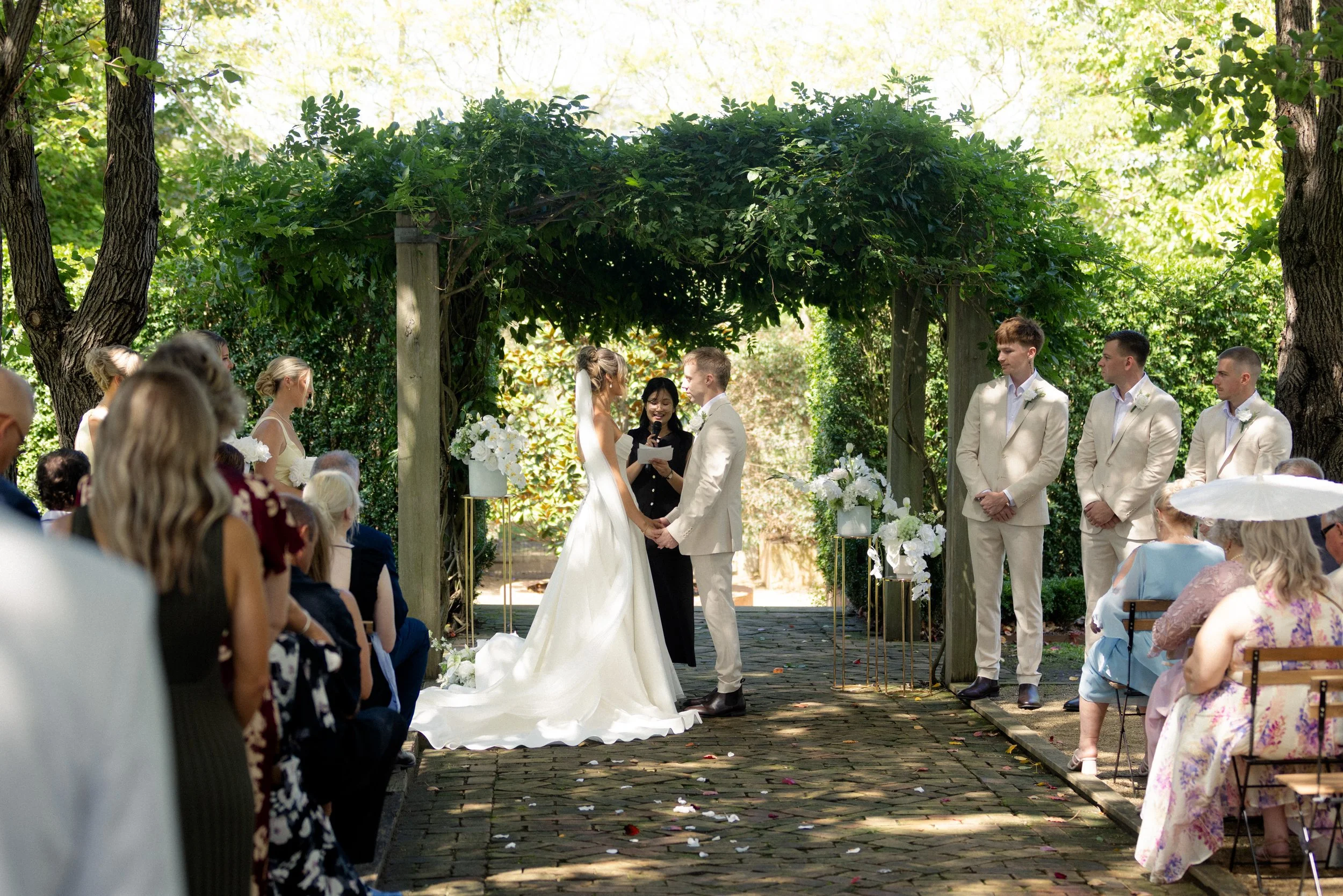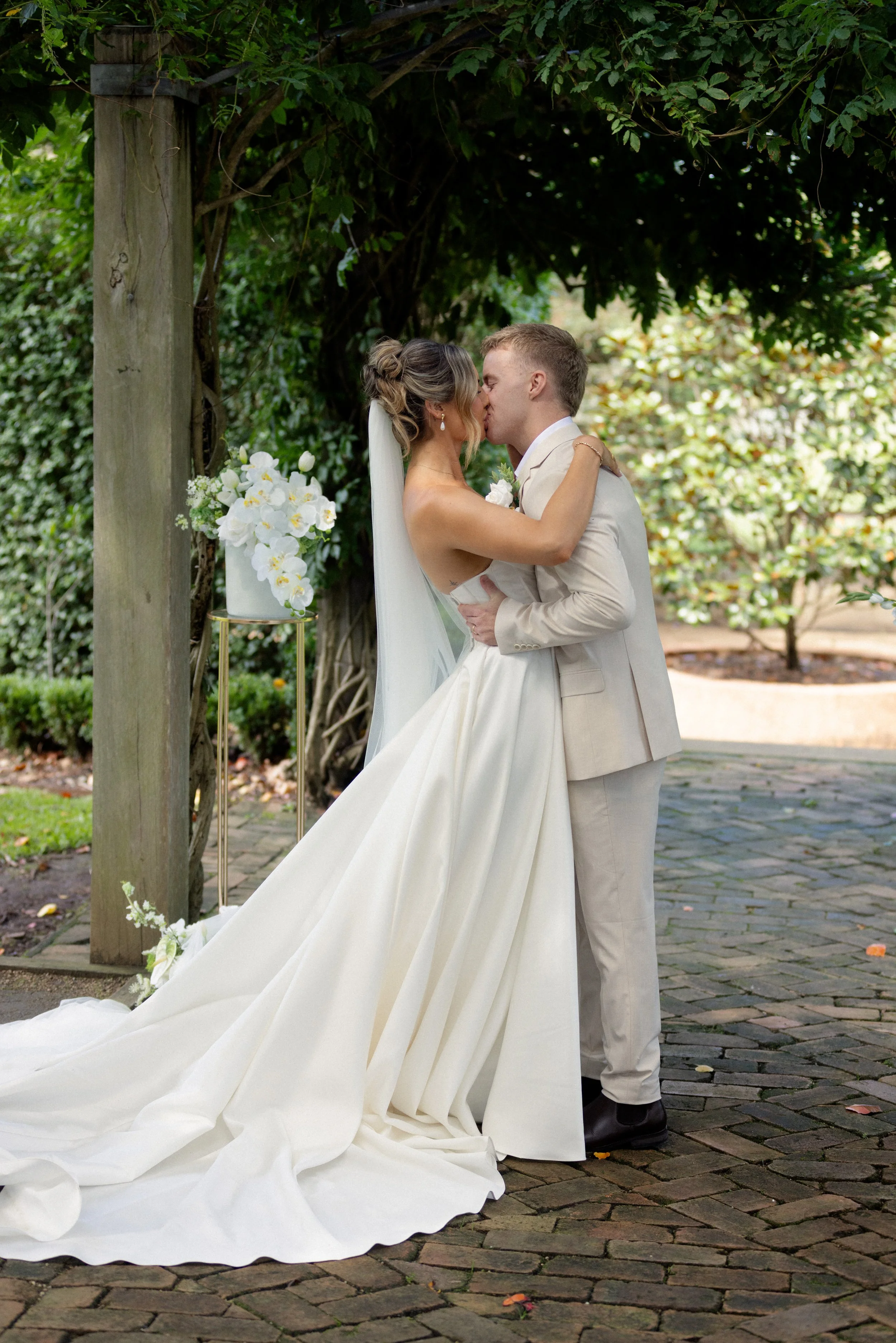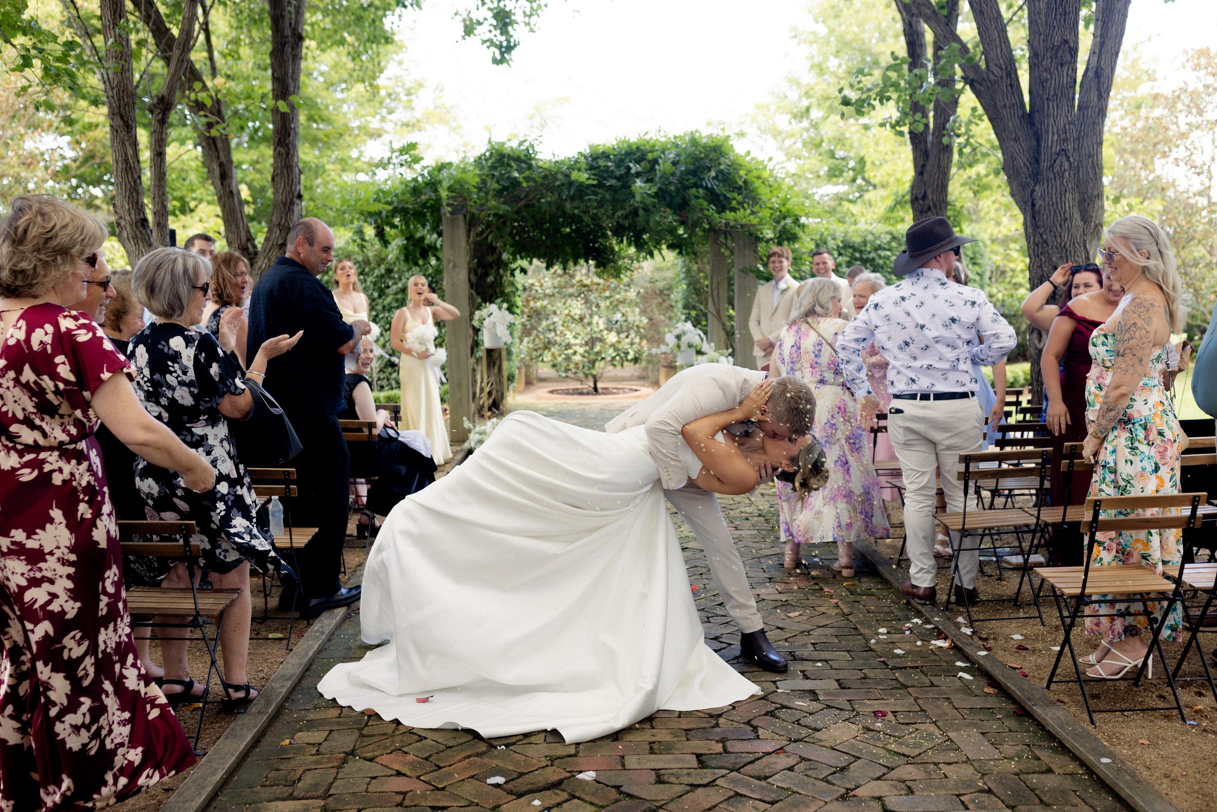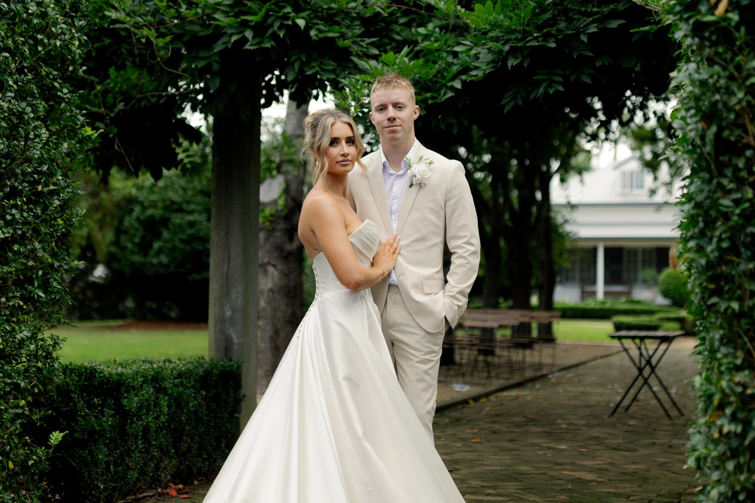 The ceremony took place in the gardens in front of the Homestead, surrounded by natural beauty and the people who matter most. It was a heartfelt moment, simple and genuine, where Jaiden and Madison exchanged vows in a setting that felt deeply personal.