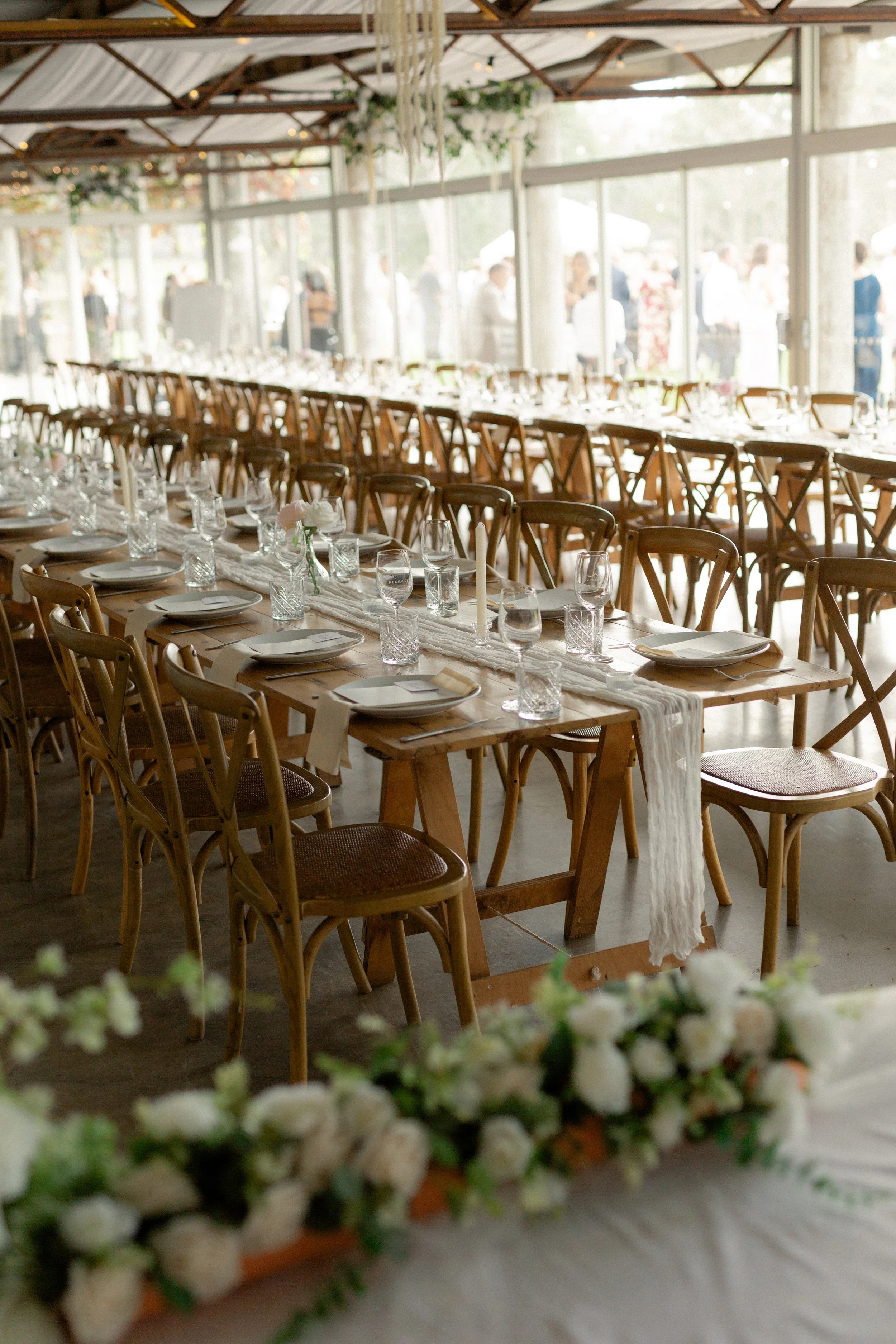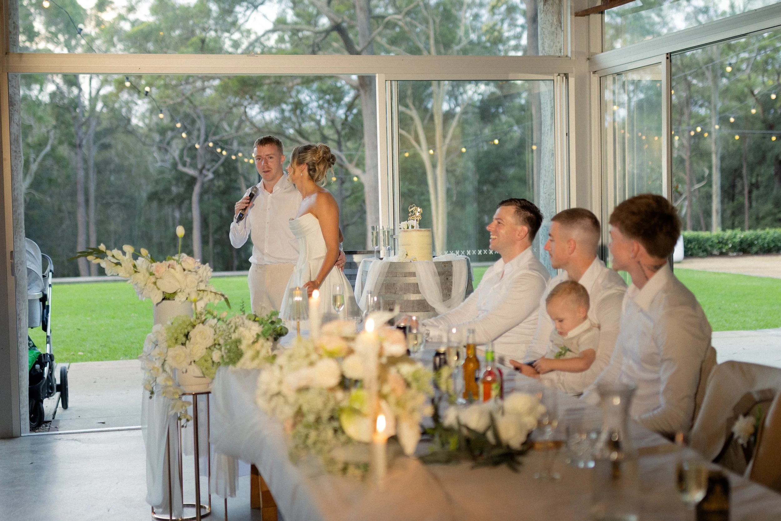 Canapés and drinks were served on the lawn, where guests gathered, mingled, and soaked in the atmosphere. As the day transitioned into evening, everyone made their way to the Hereford Shed for a sit-down reception. Warm, inviting, and full of energy, it was the perfect space to celebrate into the night.